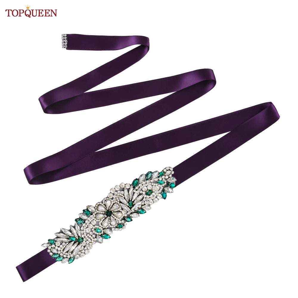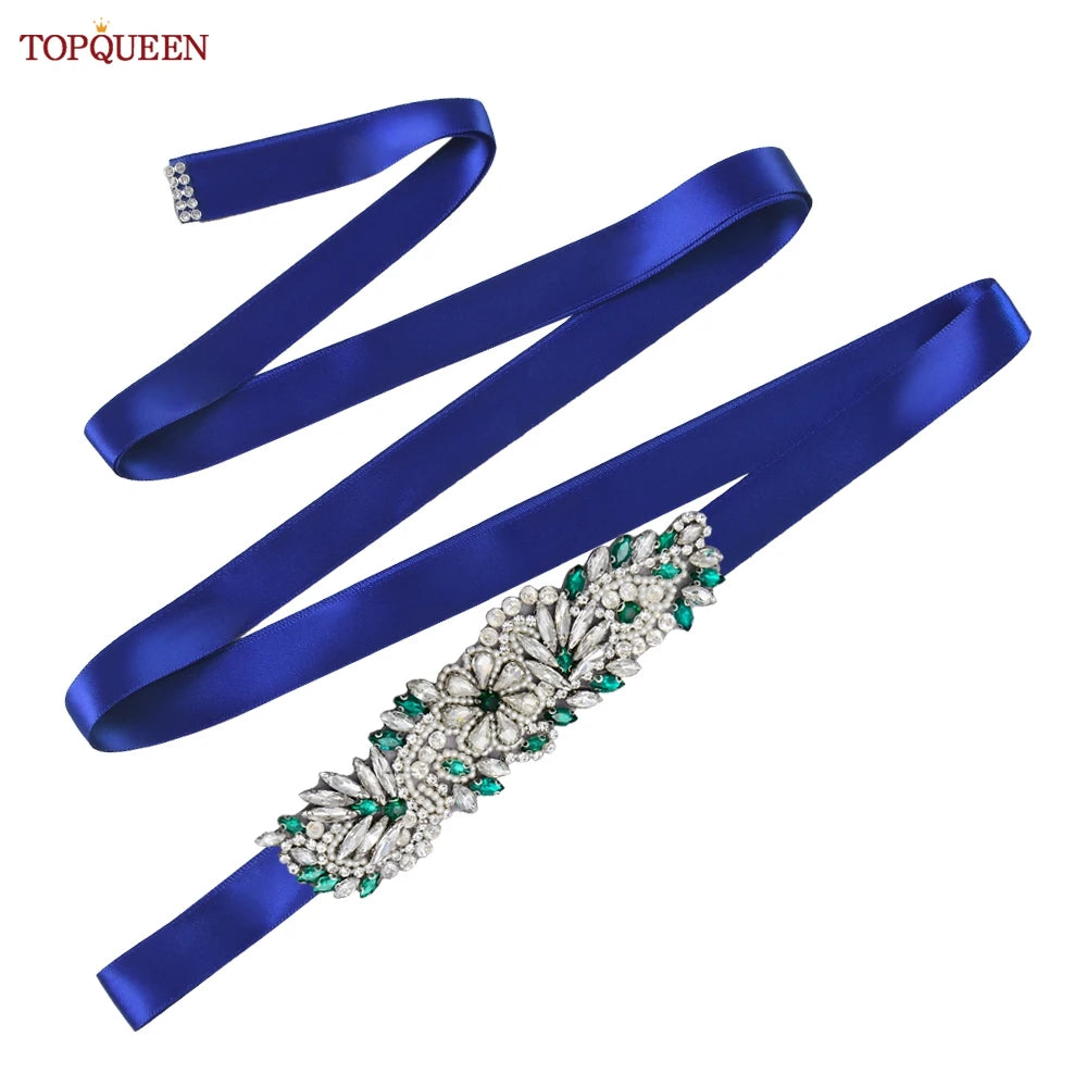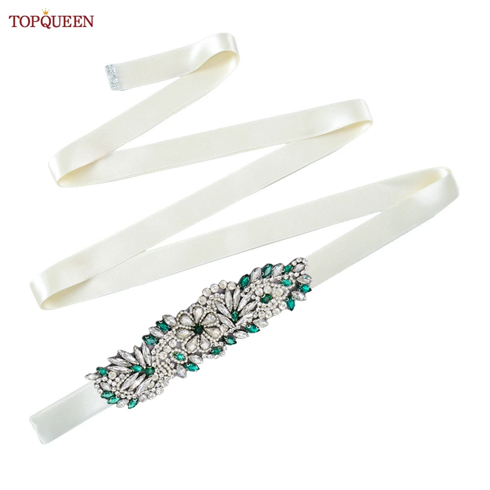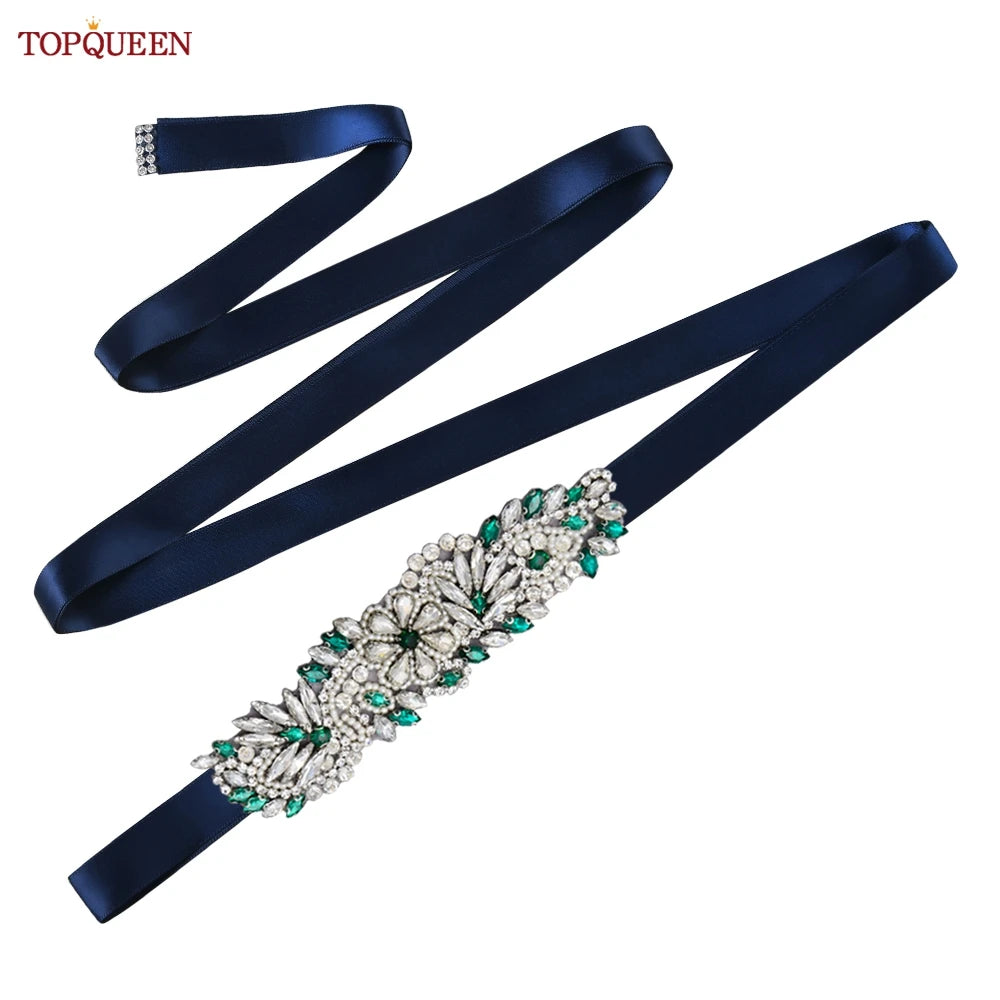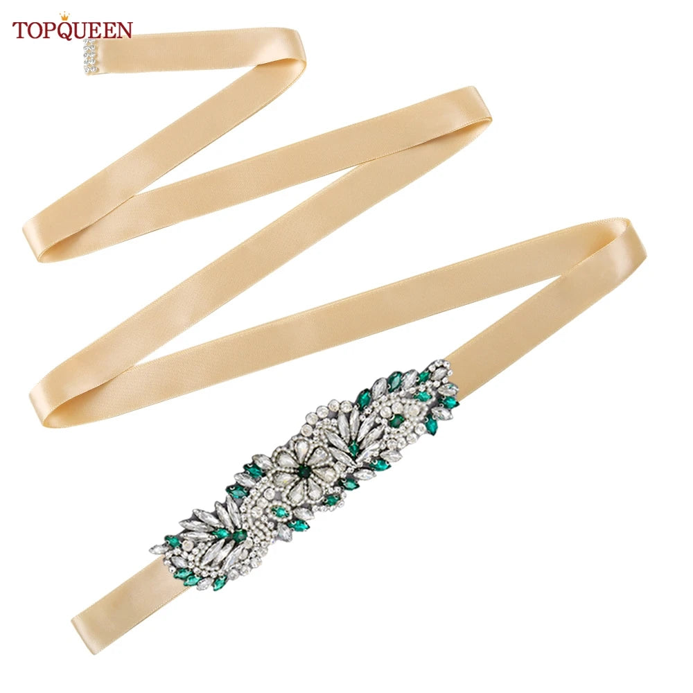 TOPQUEEN S22 Bride Rhinestone Belt Shiny Wedding Accessories Party Woman Emerald Belts Jewelry Wedding Dress Decoration Sash