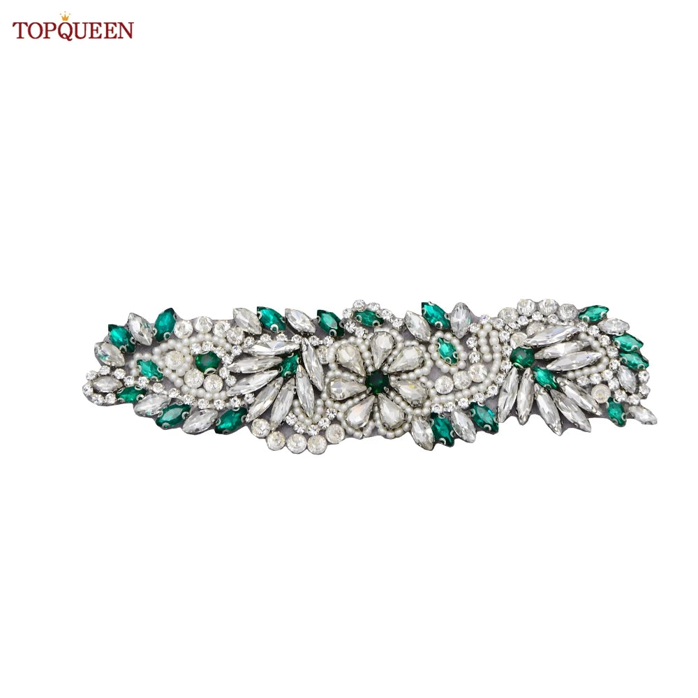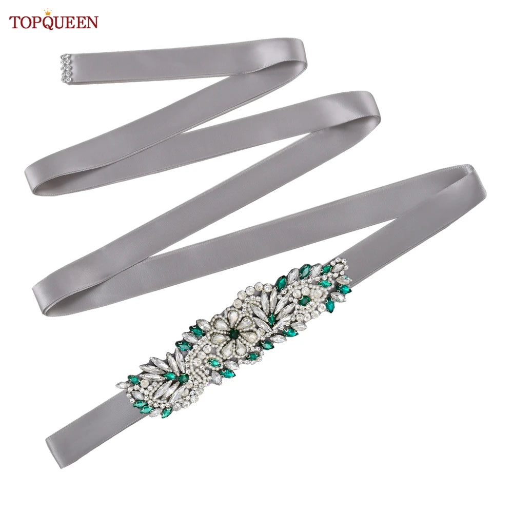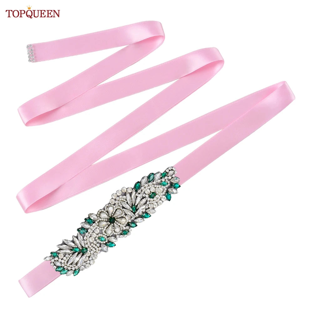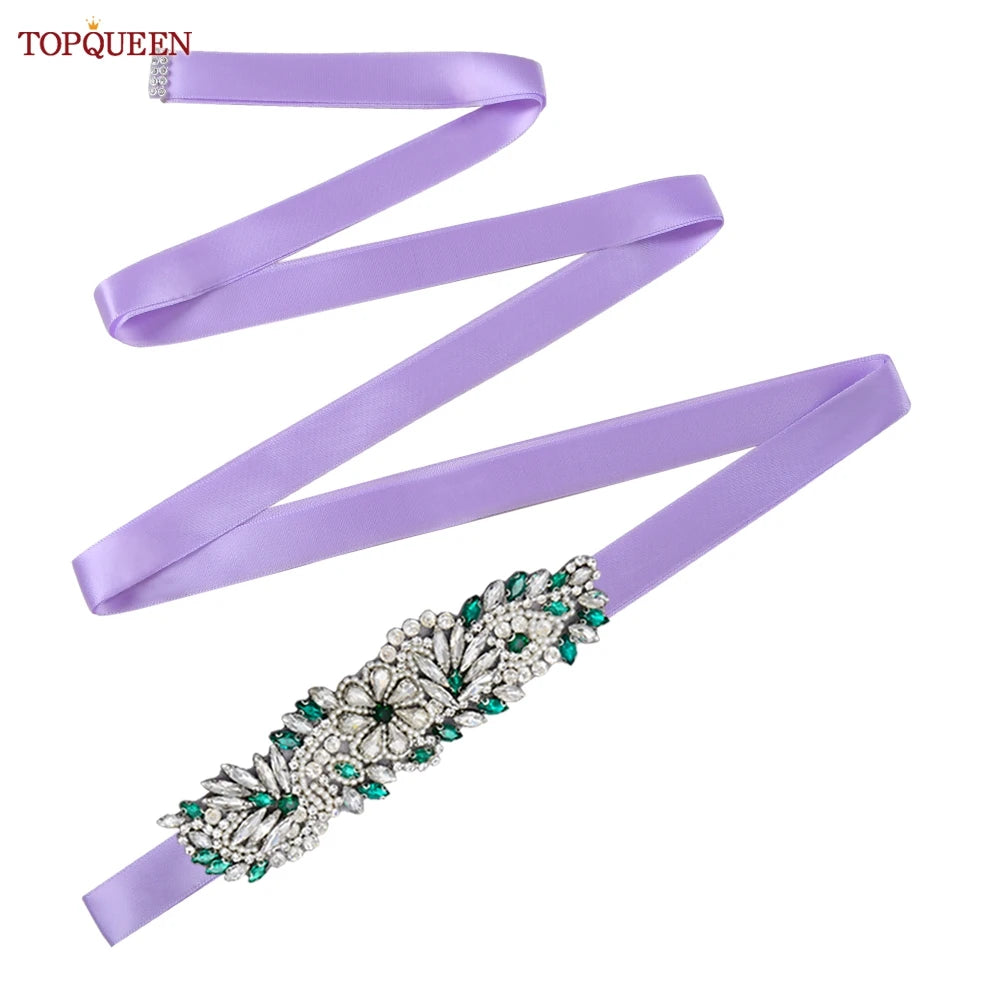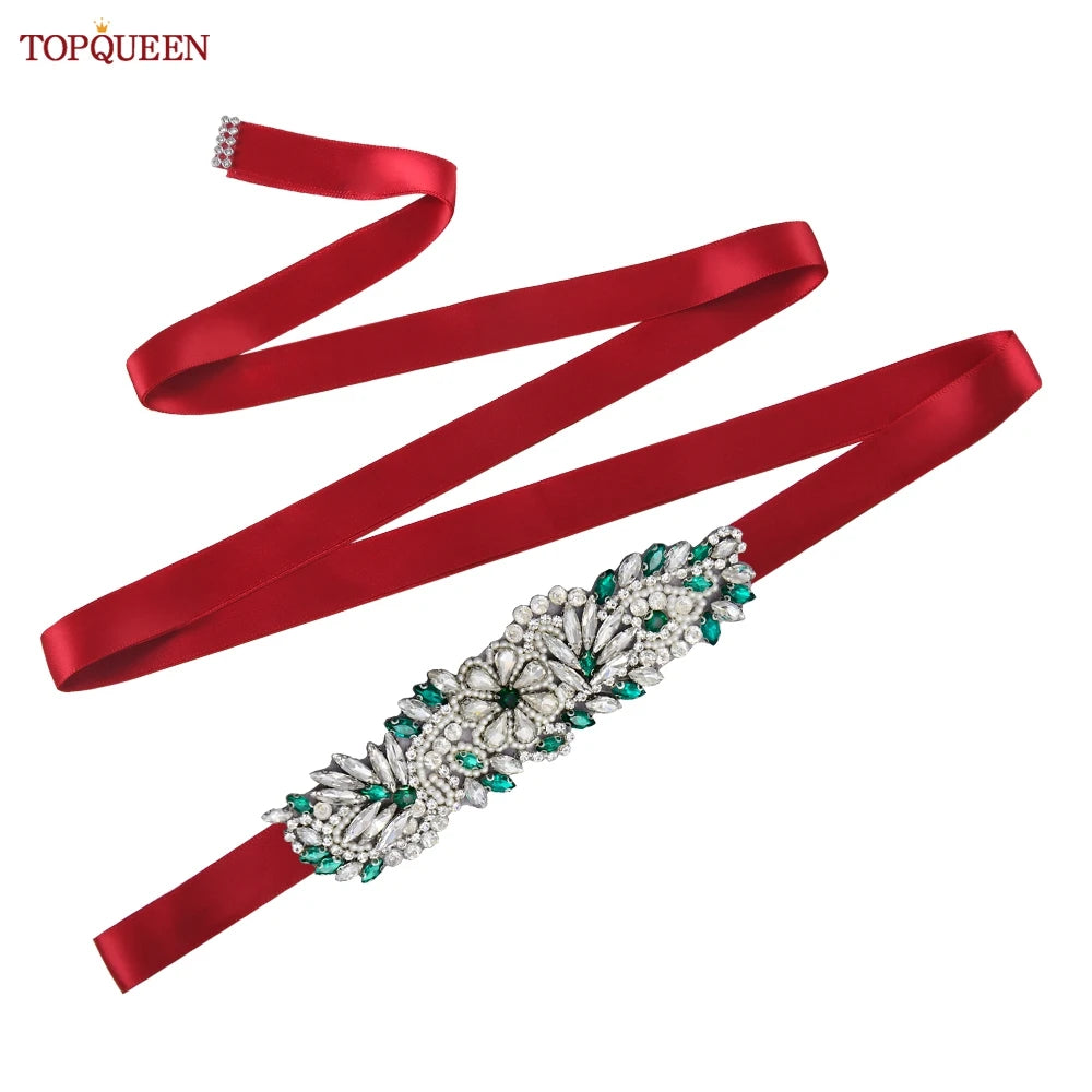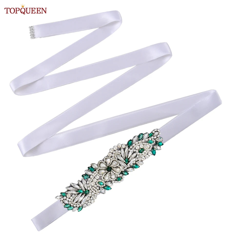 TOPQUEEN S22 Bride Rhinestone Belt Shiny Wedding Accessories Party Woman Emerald Belts Jewelry Wedding Dress Decoration Sash