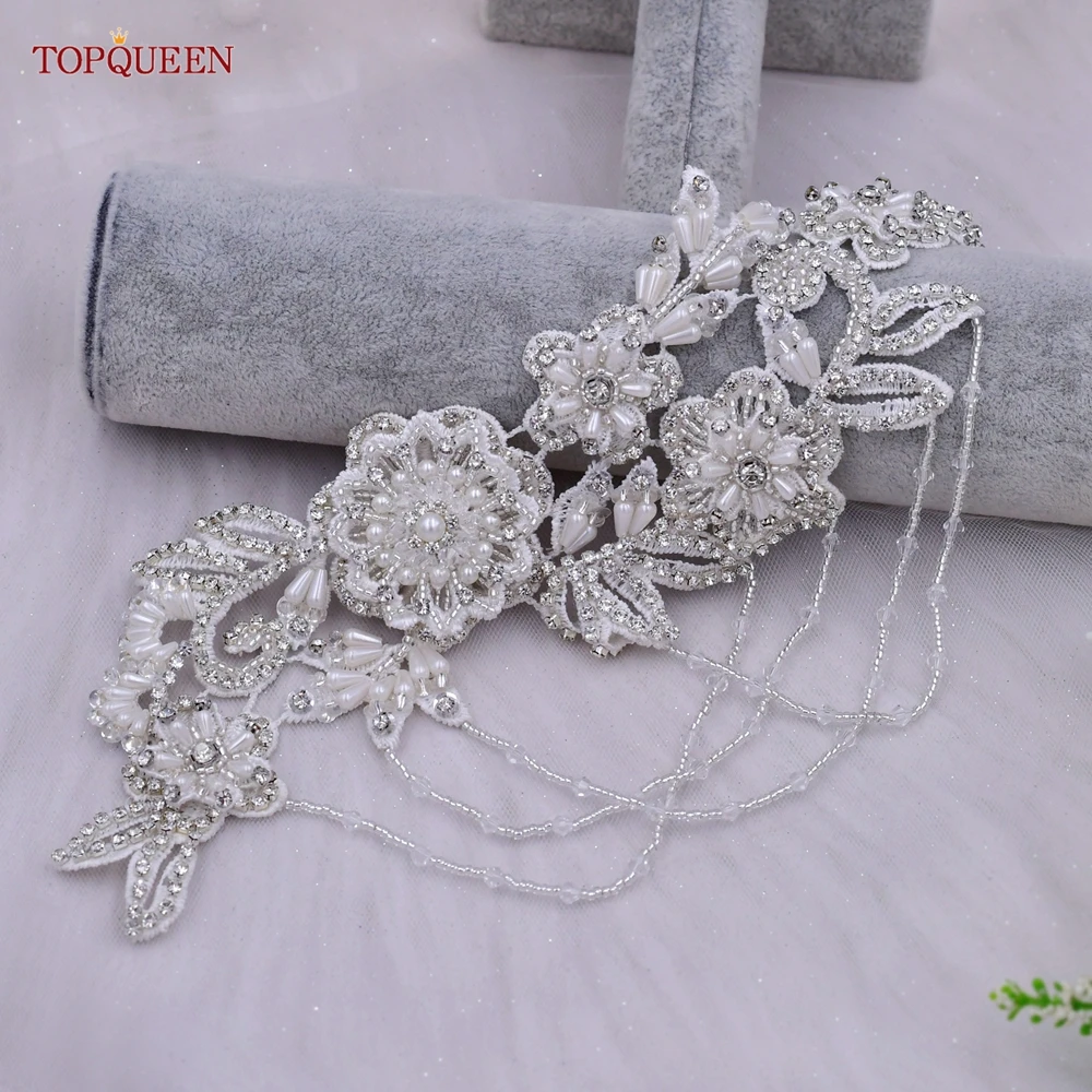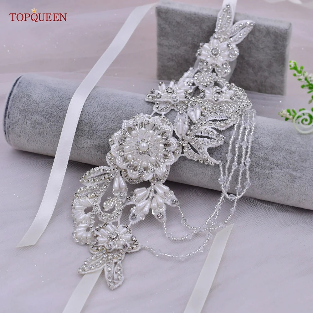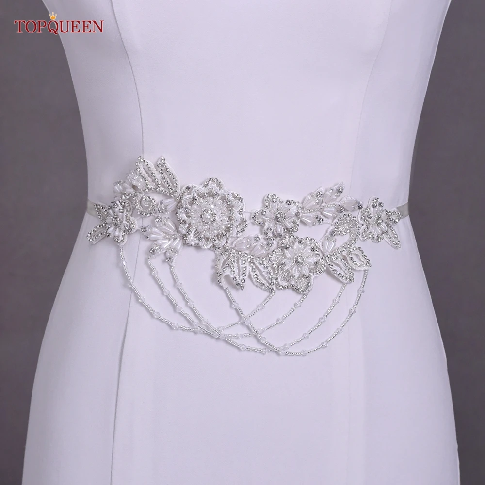 TOPQUEEN S80 Bridal Decorative Waist Belt Wedding Dress Accessories Woman Fashion Sash with Silver Rhinestones Handmade Beaded