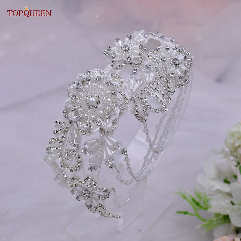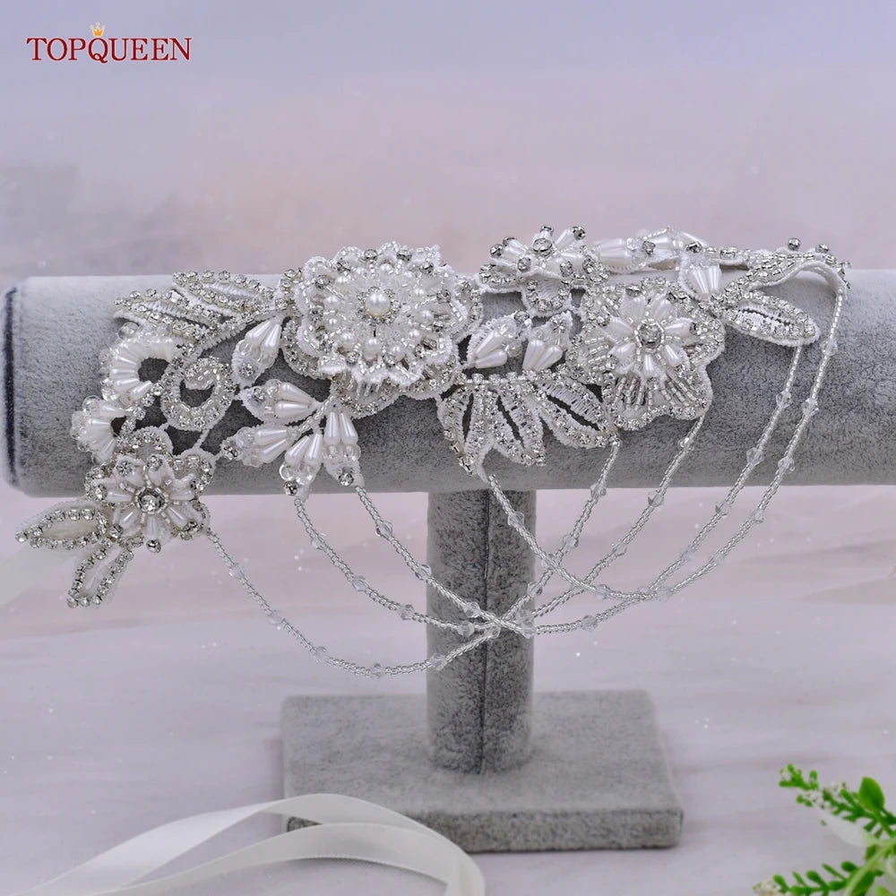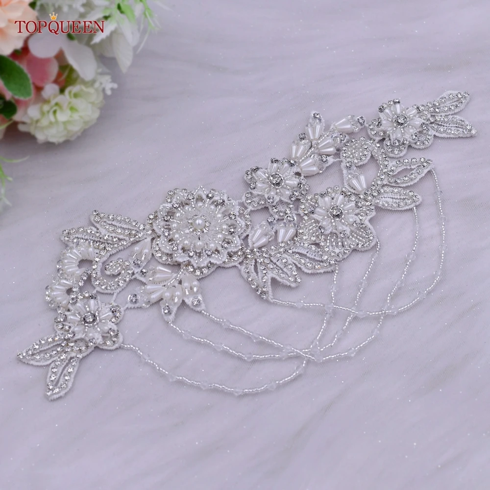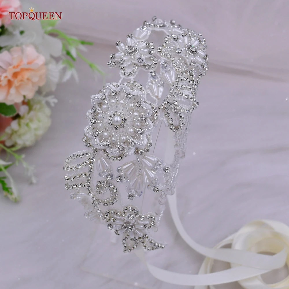 TOPQUEEN S80 Bridal Decorative Waist Belt Wedding Dress Accessories Woman Fashion Sash with Silver Rhinestones Handmade Beaded