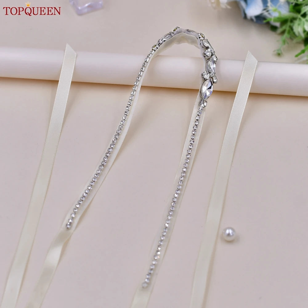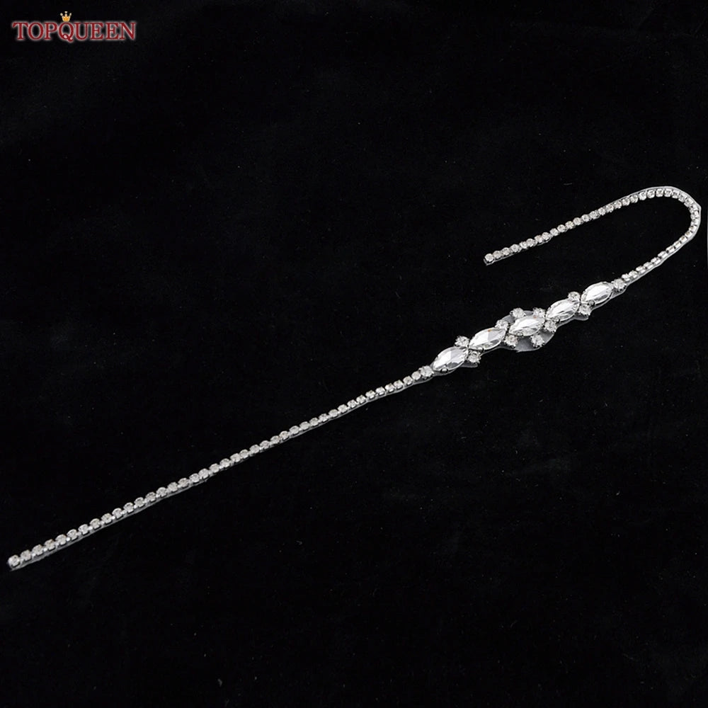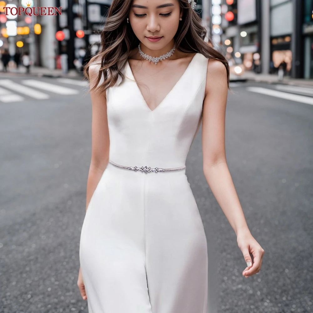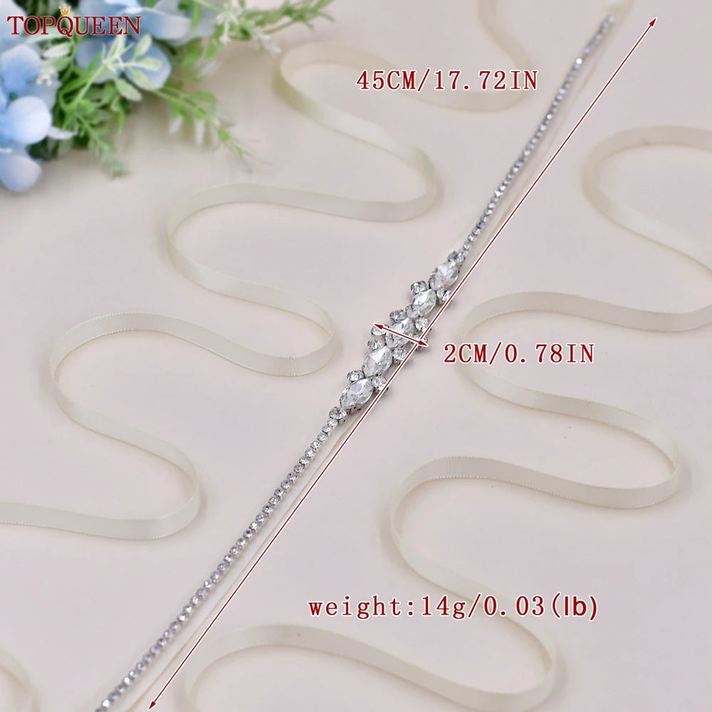 TOPQUEEN Wholesale Wedding Accessories Silver Rhinestone Bridal Thin Belt Formal Dress Waist Decoration Bridesmaid Belt S386