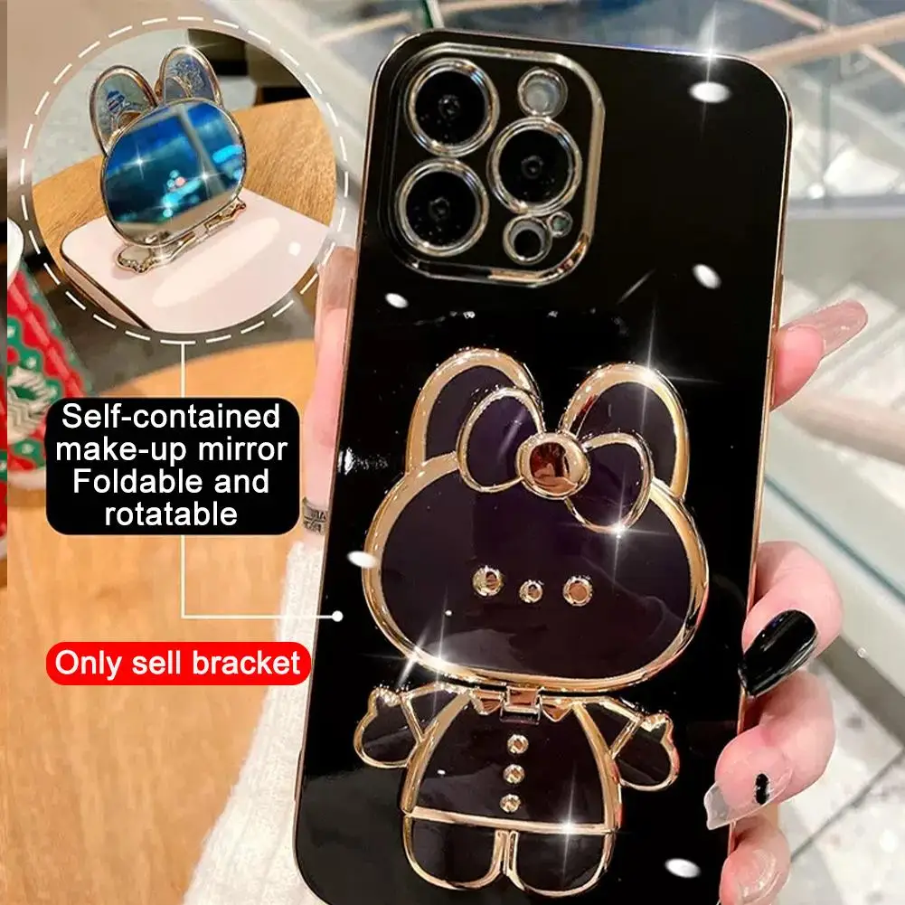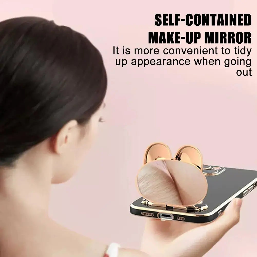 Universal Mobile Phone Holder Metal Cute Cat Phone Holder Cell Phone Stand 2 In 1 Finger Holder With Make Up Mirror