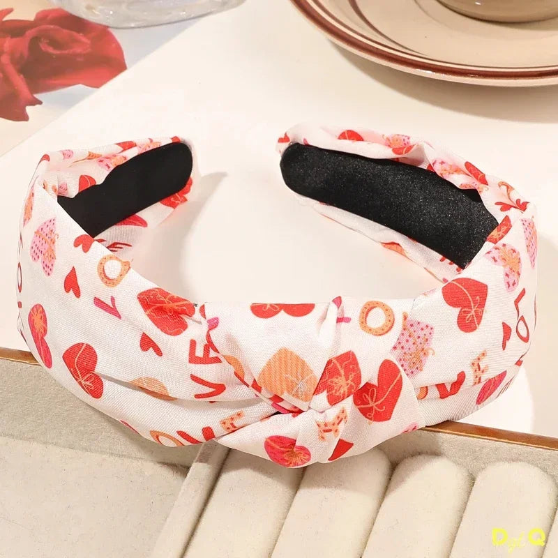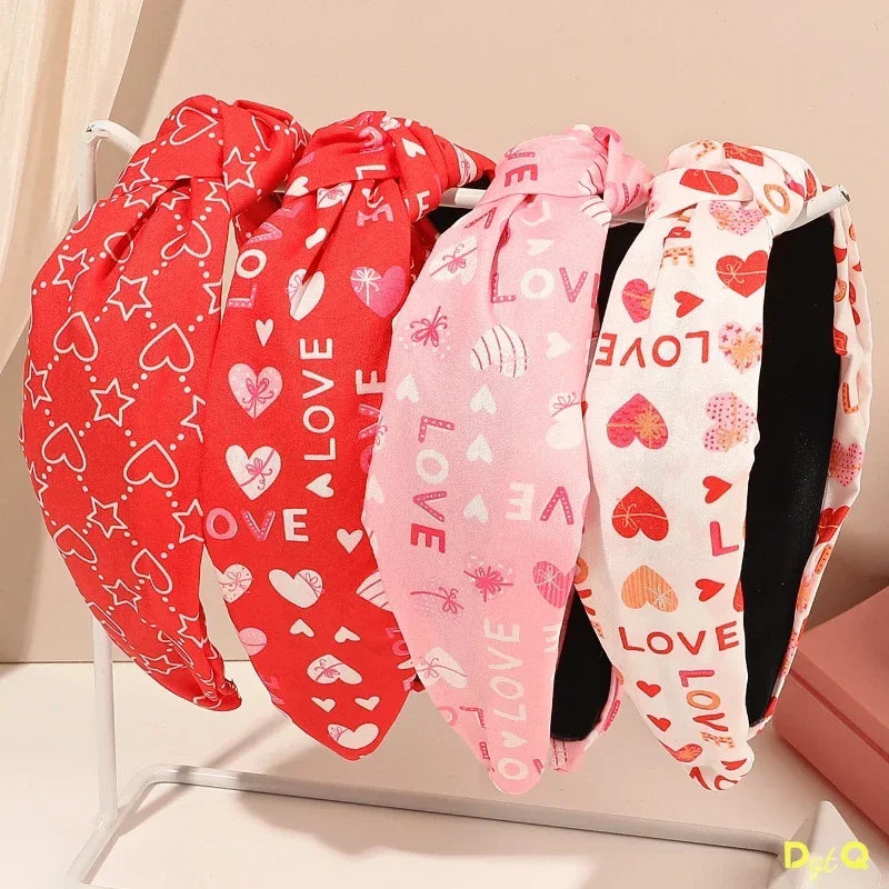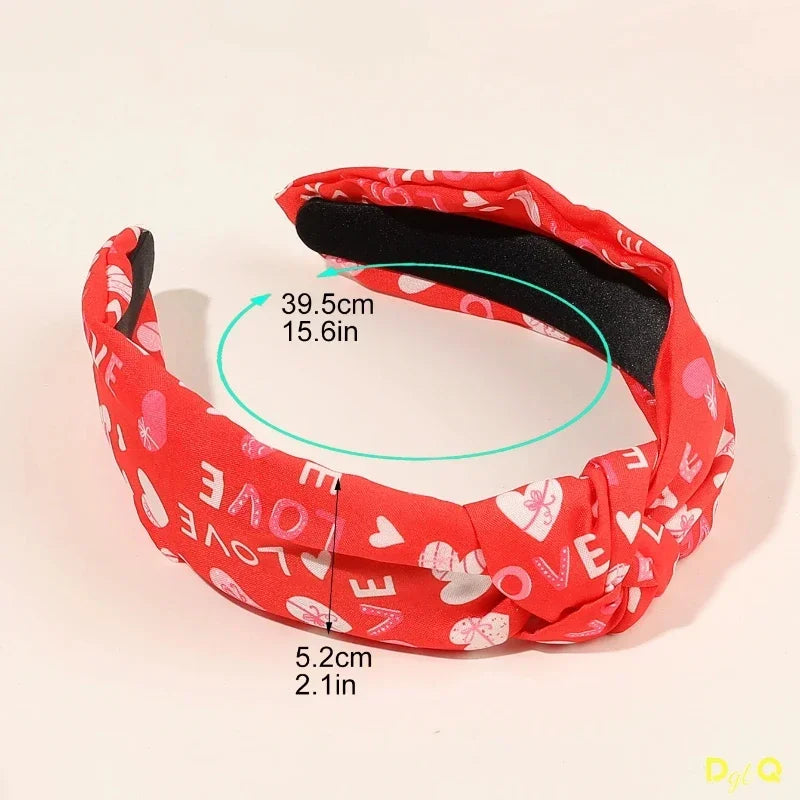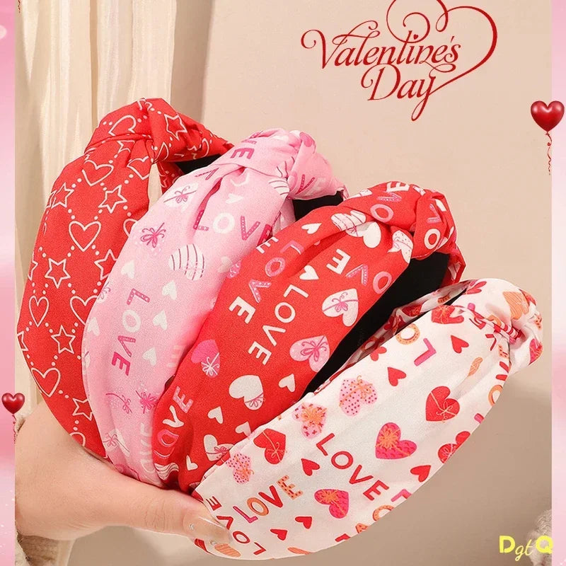 Valentines Knotted Headbands for Women Red Heart Hot Pink Headband for Women Girls Non-Slip Valentines Day Hair Accessory
