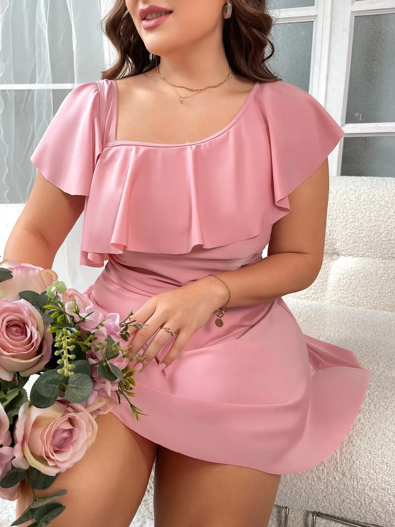 VigoBreviya 2025 Pink 2 Piece Plus Size Tankini Women Ruffle Short SLeeve Curvy Swimsuit Brazilian High Waist Lady Bathing Suit