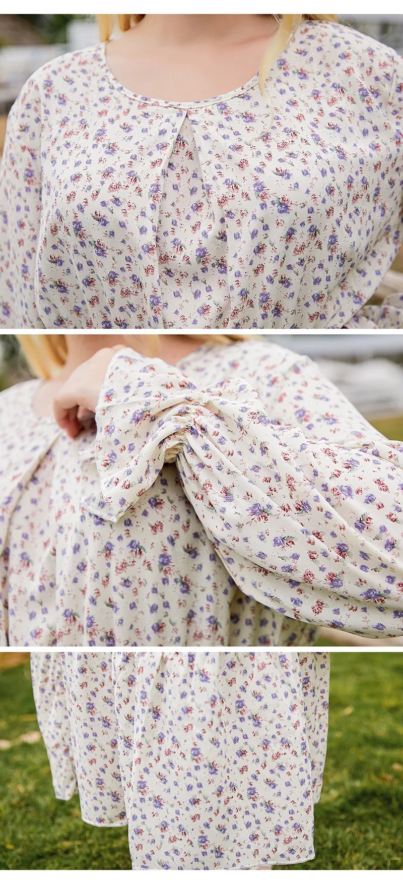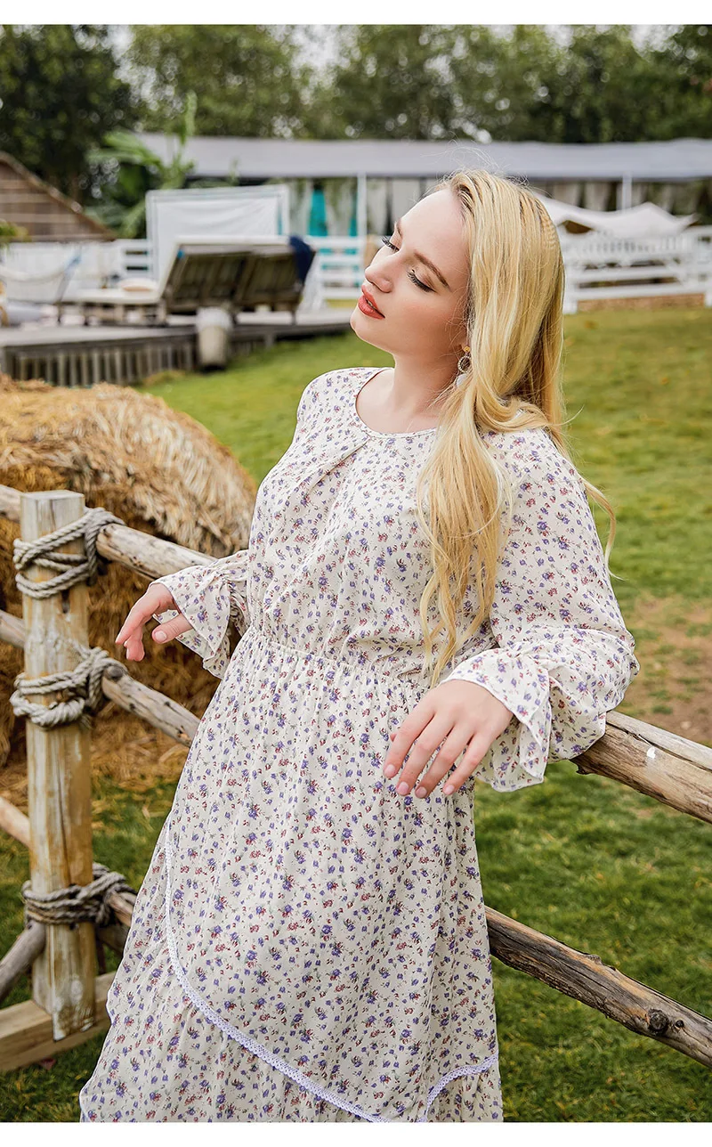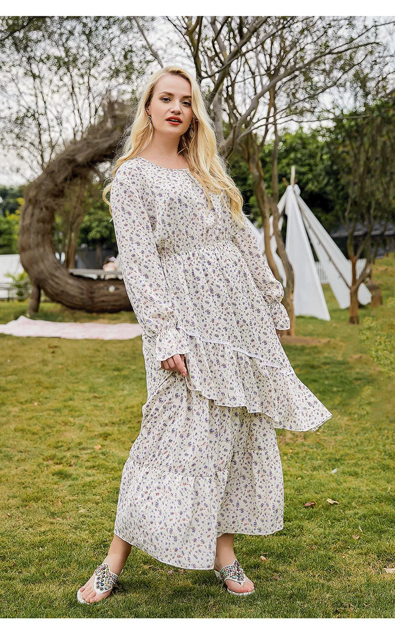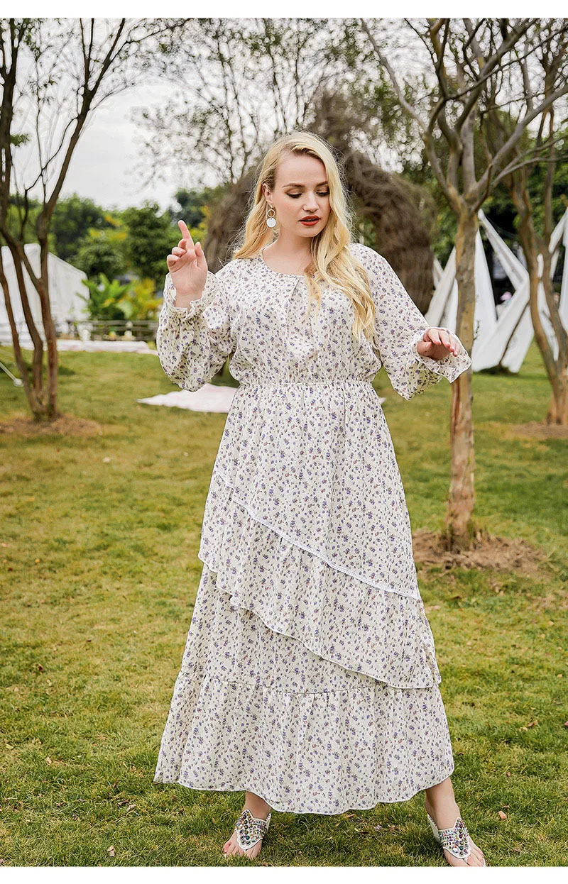 Vigojany 2025 Spring Autumn Ruffle Plus Size Dress Print Lantern Long Sleeve Loose Large Big Dress Lady Chubby Curvy Dresses