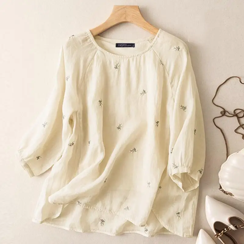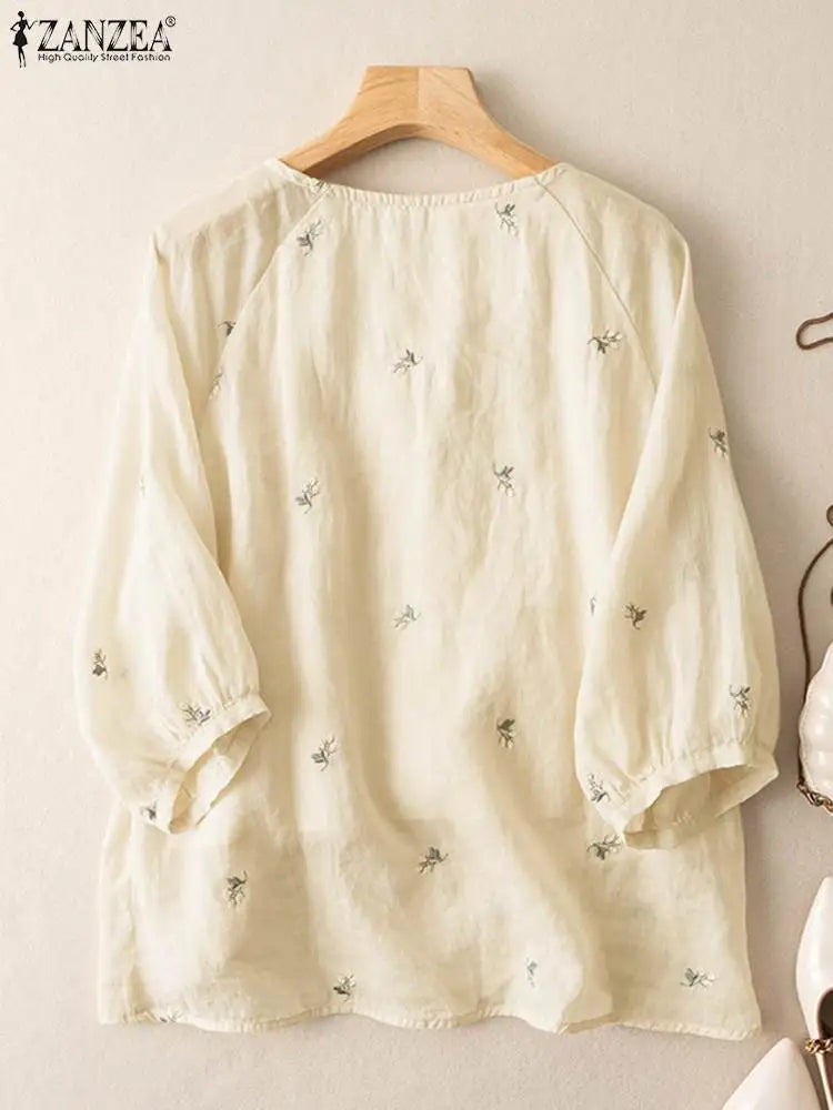 Vintage Floral Embroidery Tops ZANZEA Spring Women Holiday Blouse Party Work Cotton Blusas Autumn Casual 3/4 Sleeve Loose Shirt