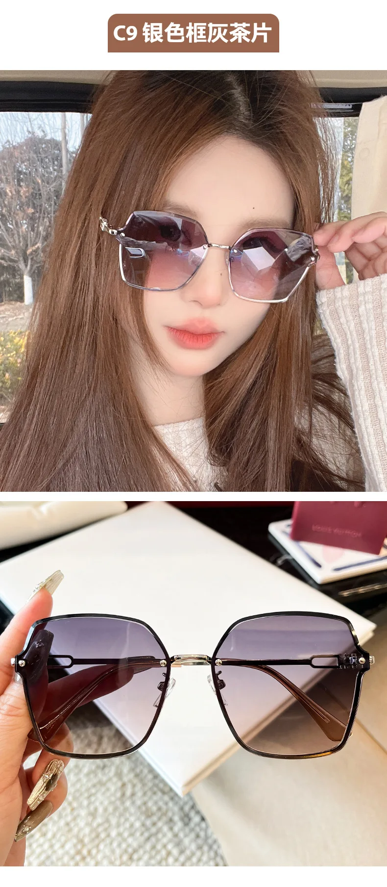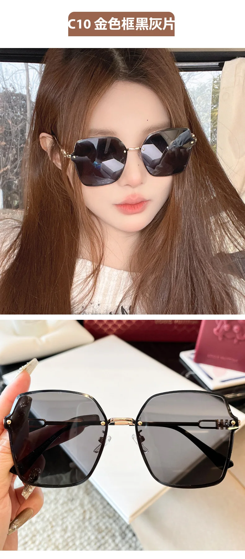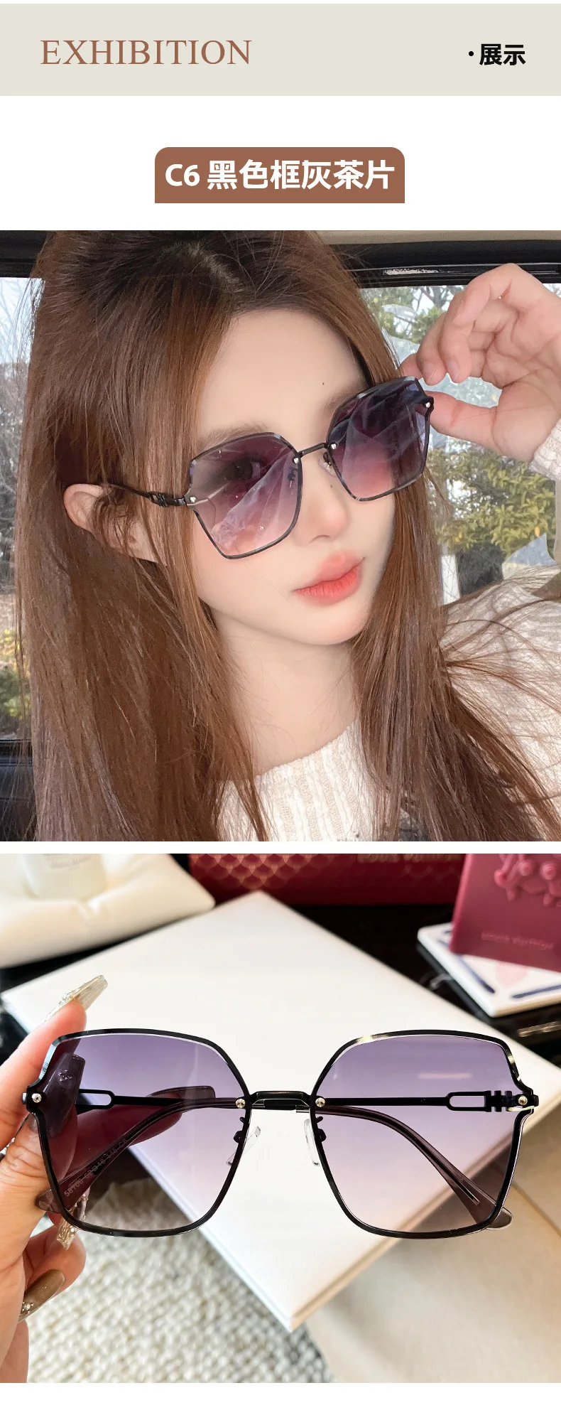Vintage with Large Rims Sunglasses Women's to Make Big Face Thin-Looked Trendy Personalized Street Shot Online Influencer Fashio