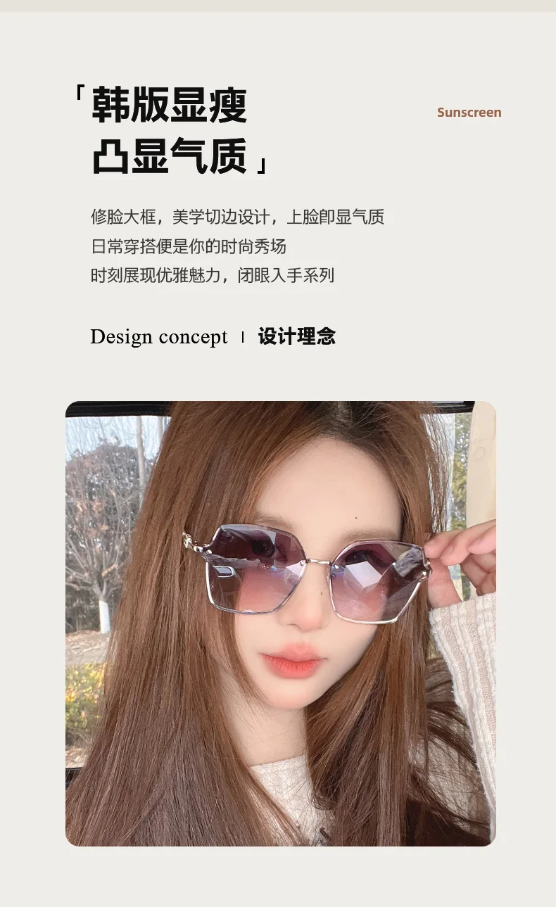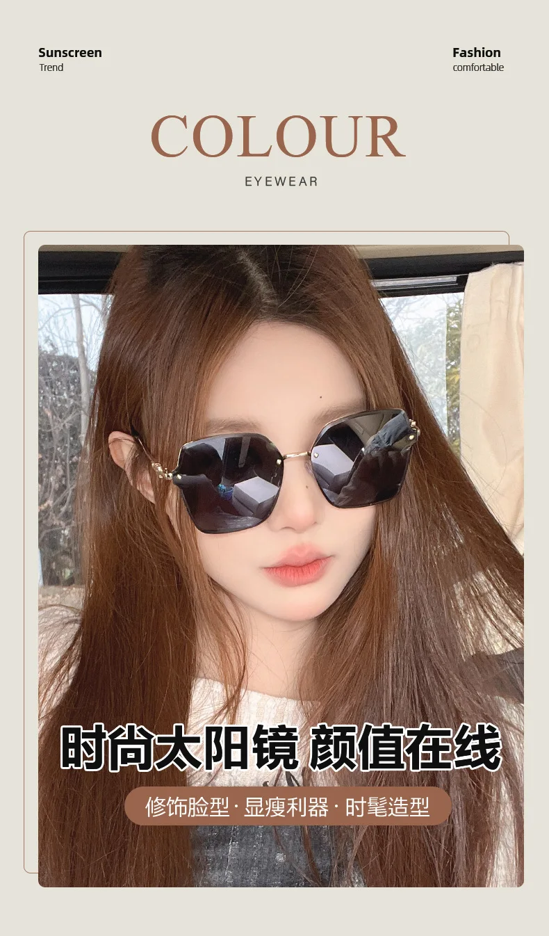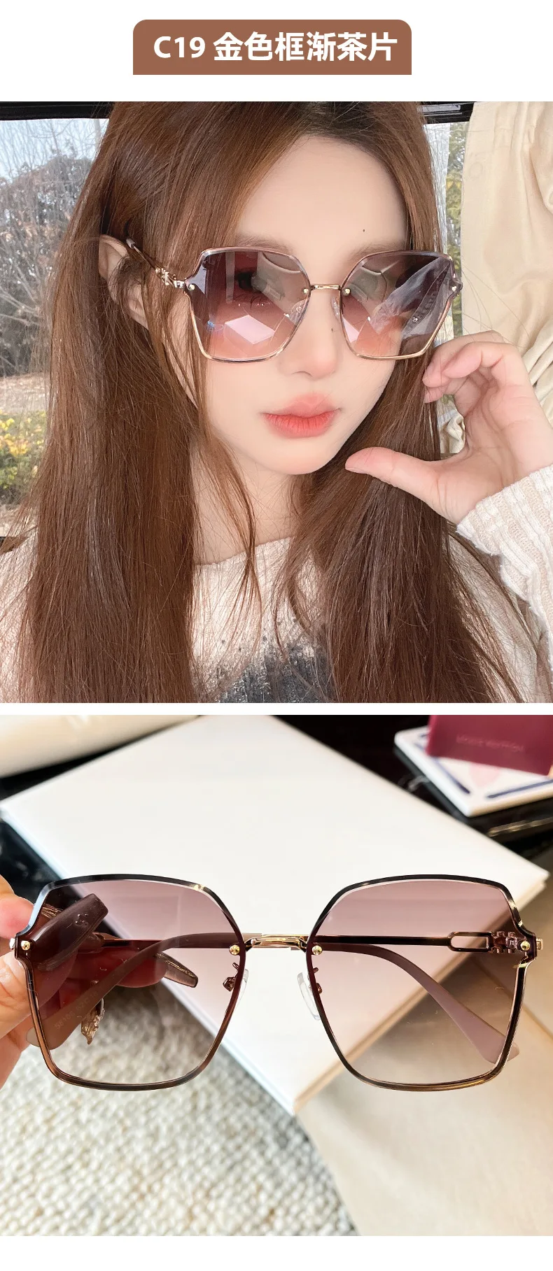Vintage with Large Rims Sunglasses Women's to Make Big Face Thin-Looked Trendy Personalized Street Shot Online Influencer Fashio