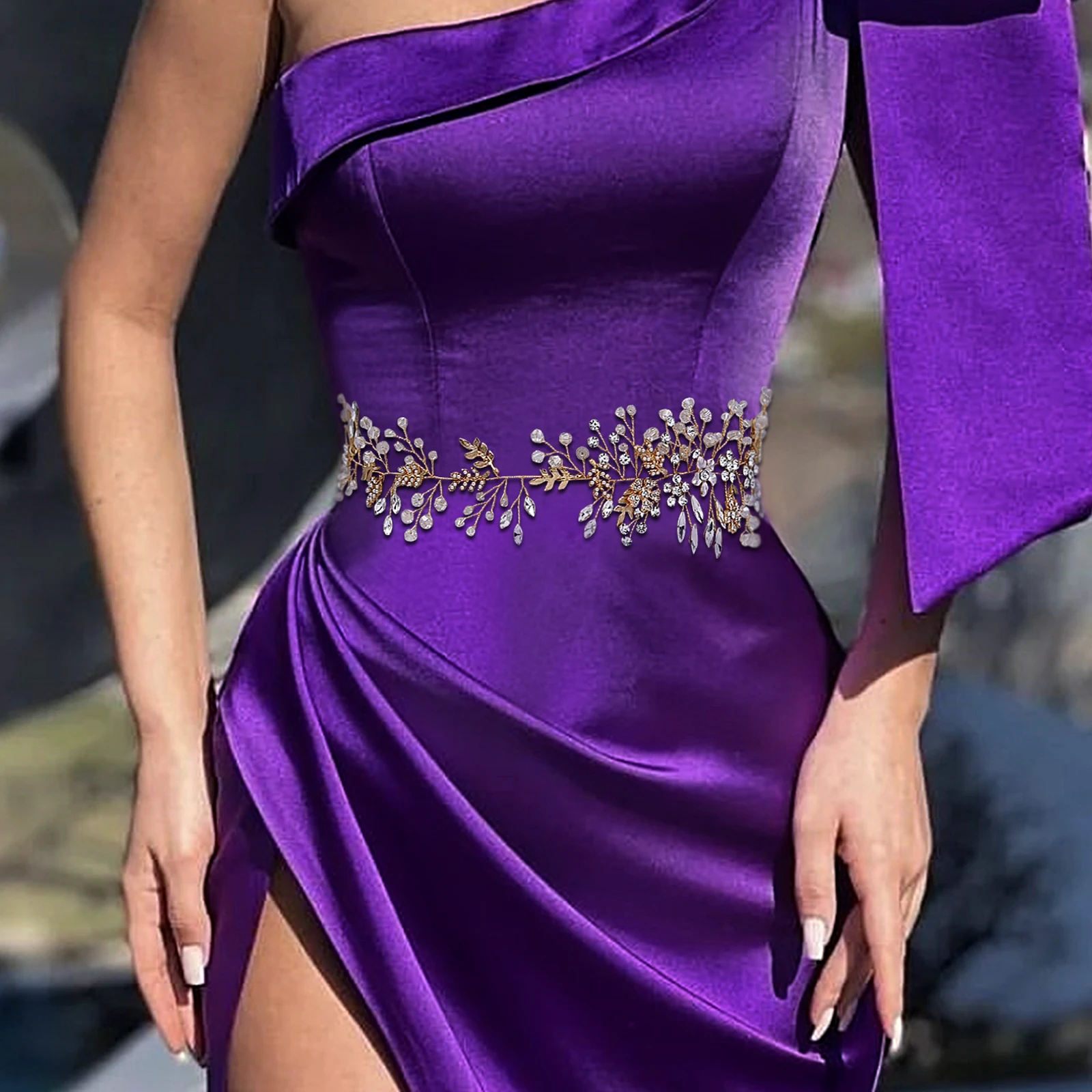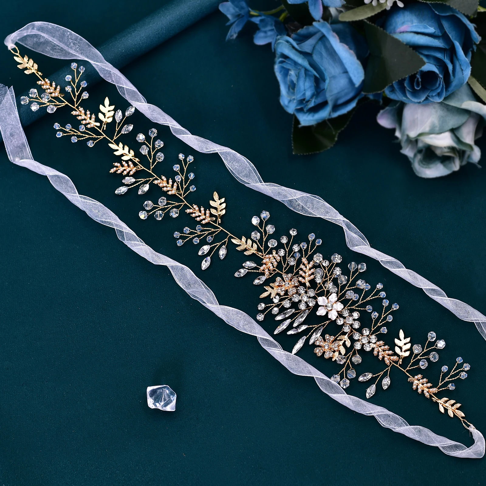 ZMSH235 Golden Rhinestones Sash Bridal Belts Ribbons Wedding Flower Female Belt Bridal Bridesmaids Dresses Bride's Accessories