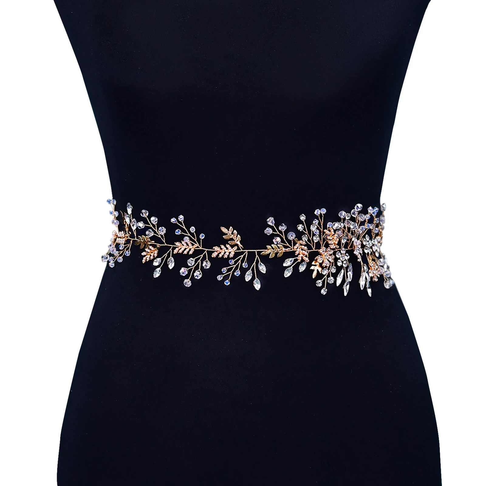 Wedding Accessories Golden Rhinestones Bridal Belts Female Belt Sash Ribbons Wedding Flower Bride's Dresses Bridesmaids SH235