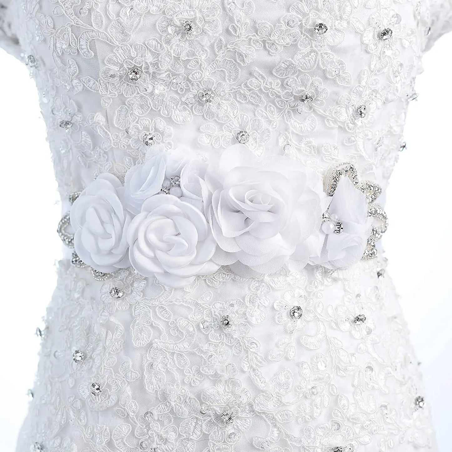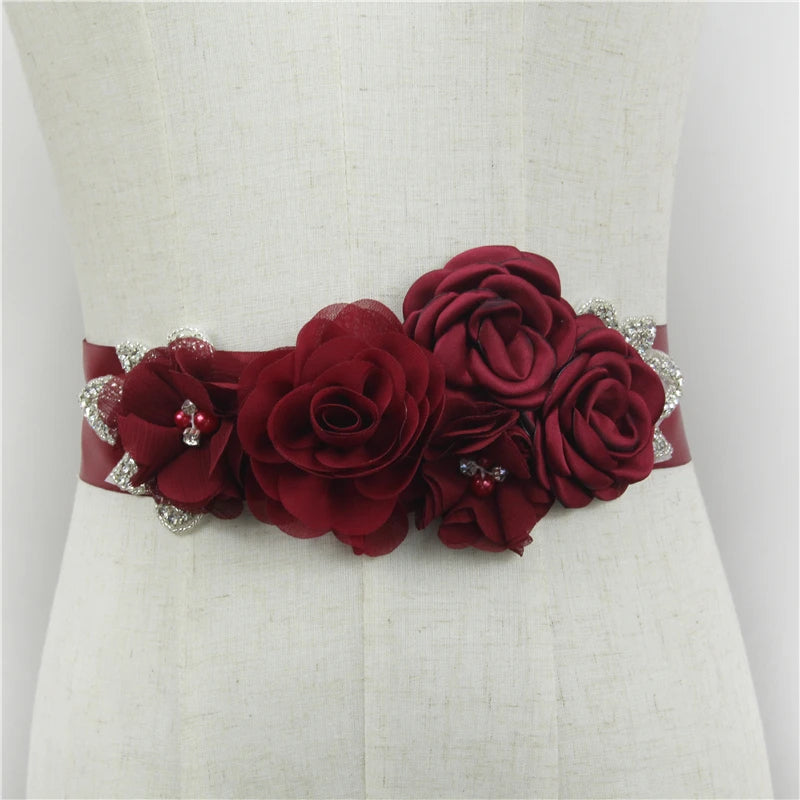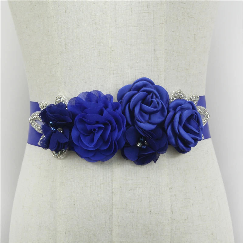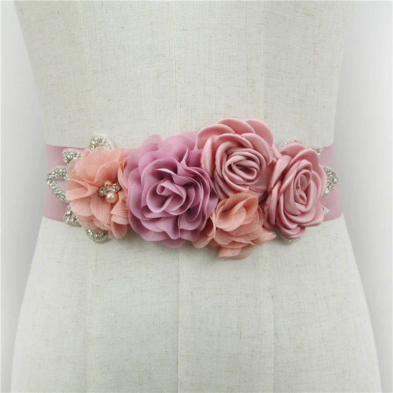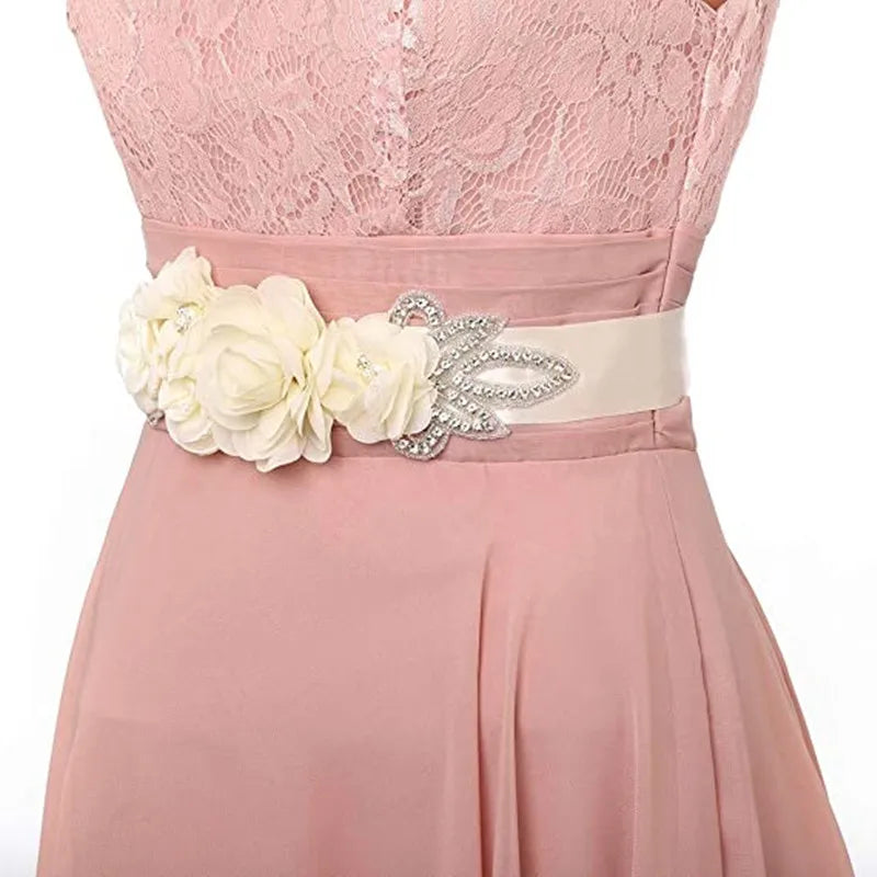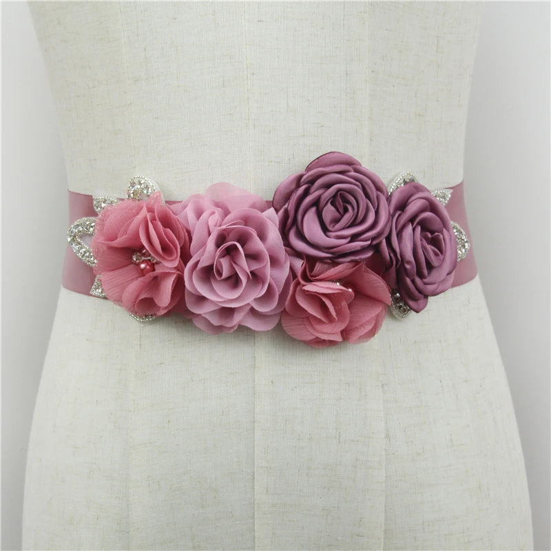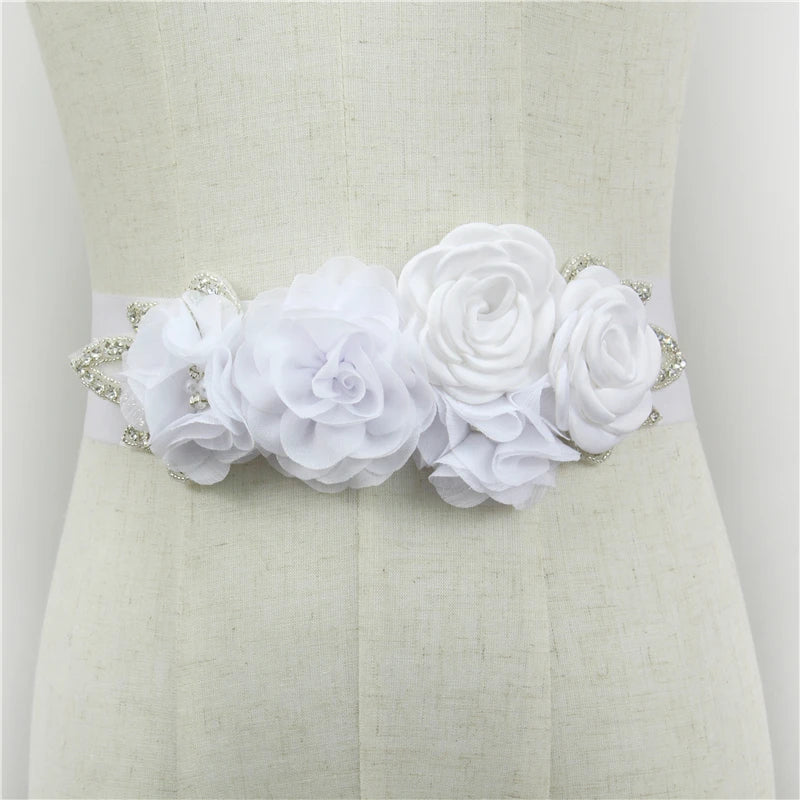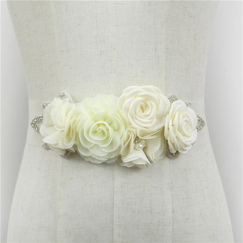 Wedding Belts White Ivory Flowers Pearls Satin Flower Rhinestone Decoration Accessories Elegant Bridesmaids Women Dresses Sash