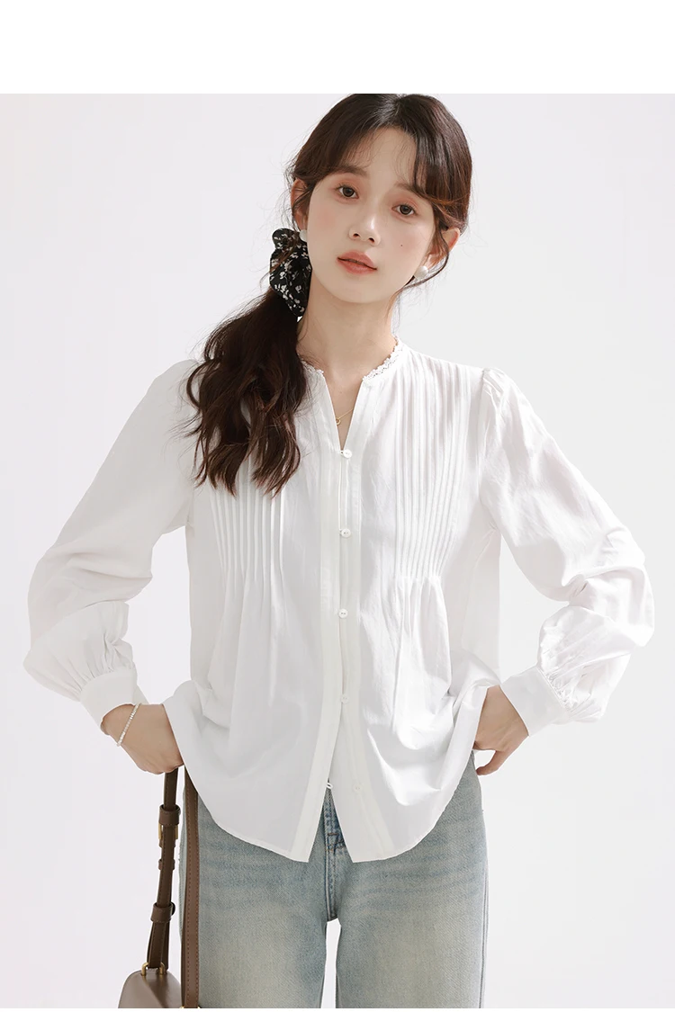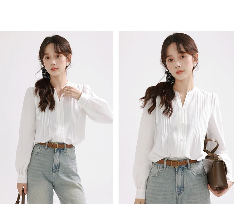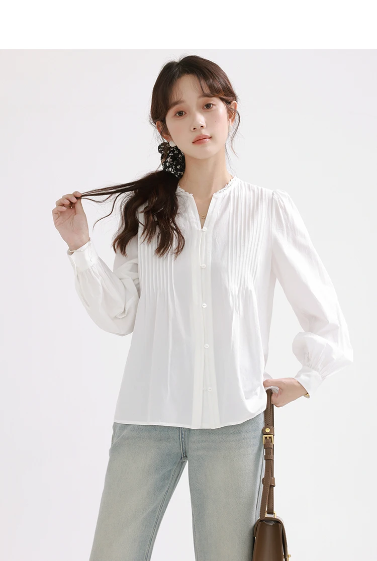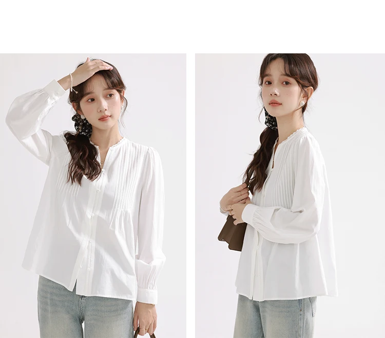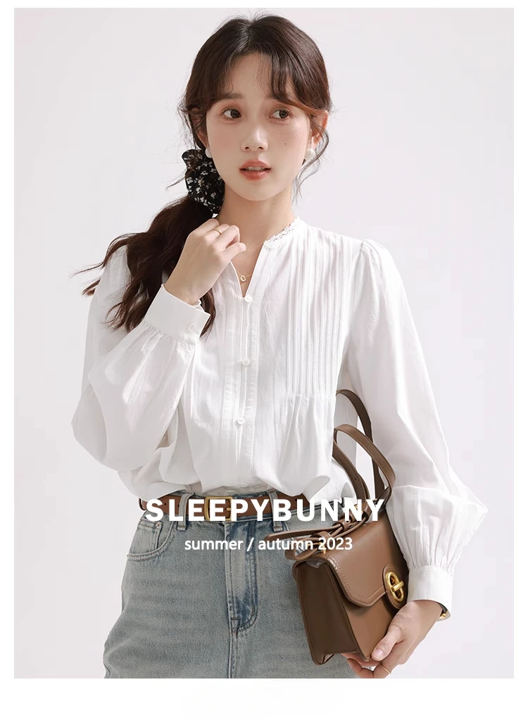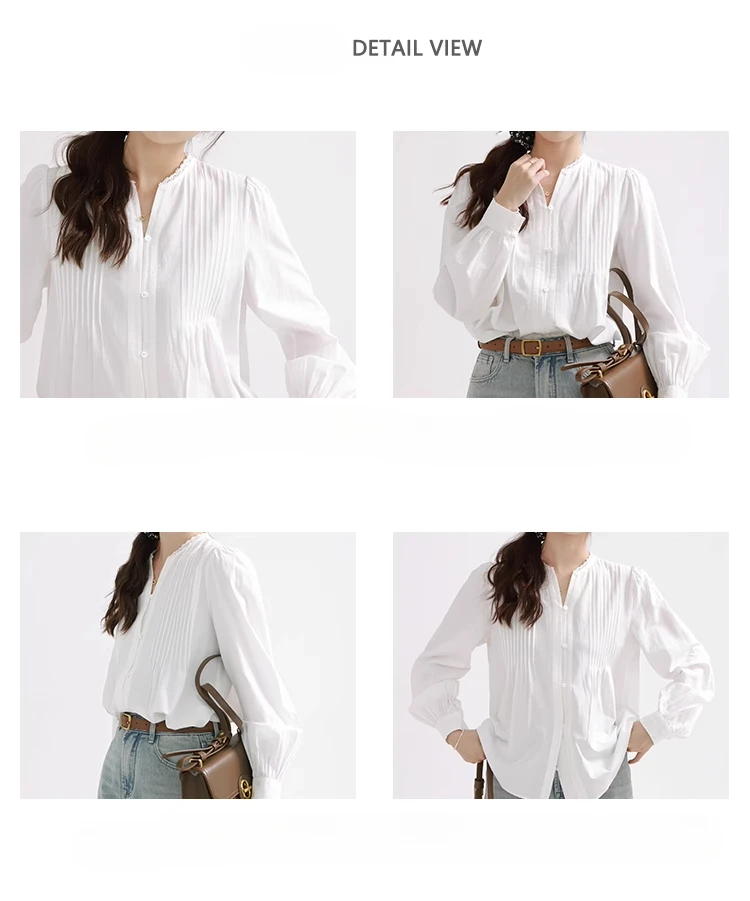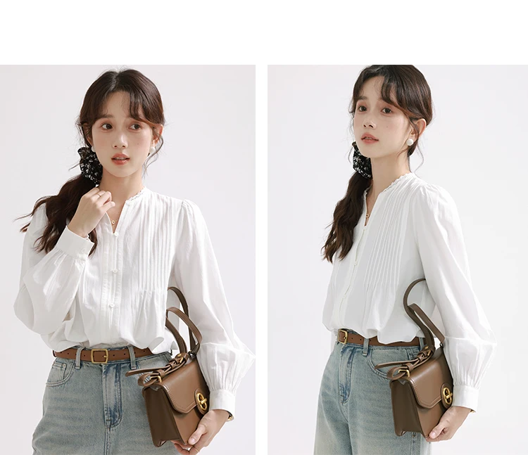 Add timeless elegance to your wardrobe with this white lantern sleeve blouse, perfect for petite women seeking a chic and versatile look. Designed with a flattering V-neckline and soft, flowy lantern sleeves, this blouse offers a sophisticated French-inspired style. The tailored fit and breathable fabric make it ideal for both spring and autumn seasons, ensuring comfort throughout your busy day. Whether you're heading to the office, a casual outing, or a special event, this blouse pairs effortlessly with skirts, trousers, or jeans for a polished yet relaxed vibe. A must-have staple for any modern wardrobe!