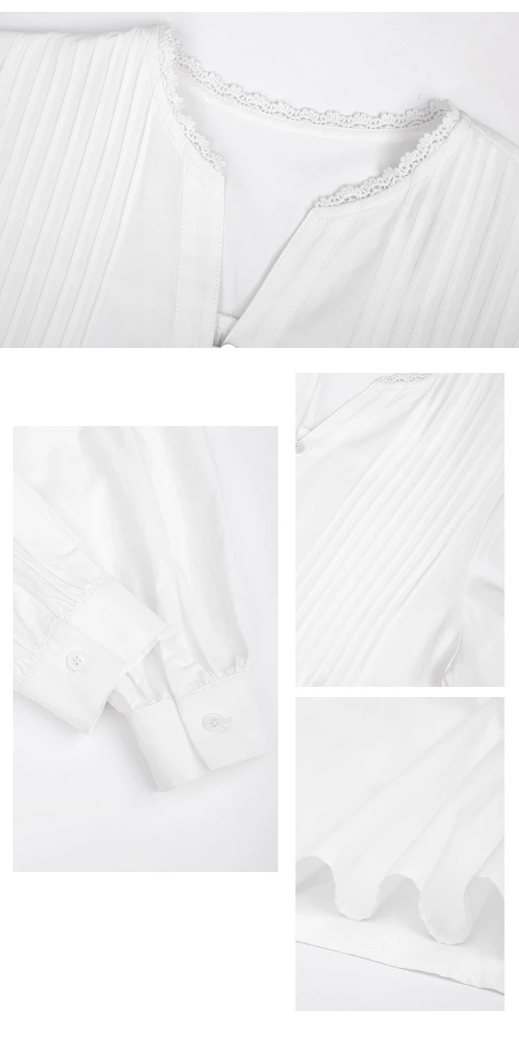 White Lantern Sleeve Blouse Women Spring Fall French V-Neck Long Sleeve Elegant Petite Office Shirt Stylish Casual Chic Top clothes