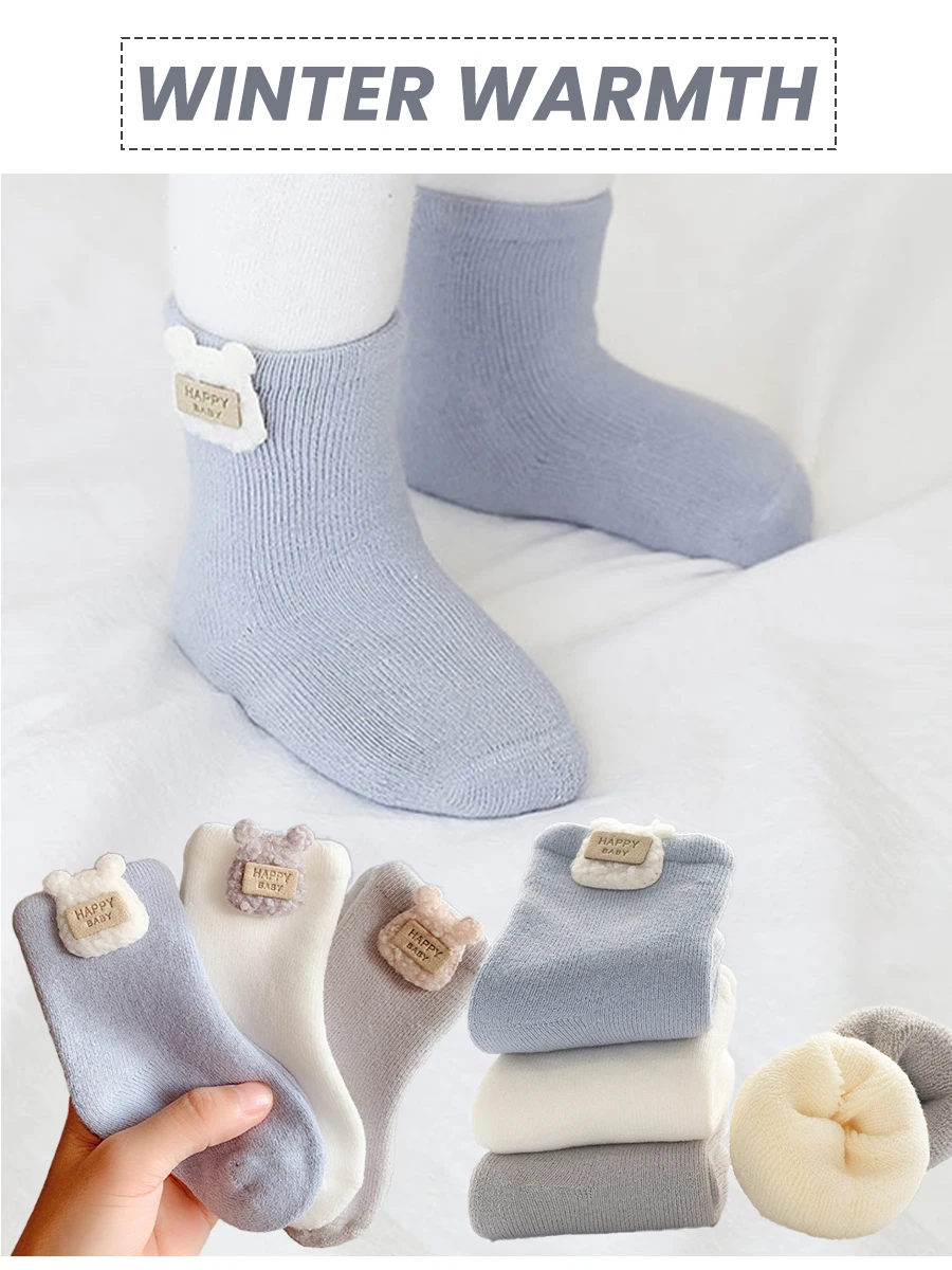 Winter Baby Socks Thick Warm Long Socks for Toddler White Autumn Winter PlushKnee Newborn Anti Slip Floor Socks Baby Accessories