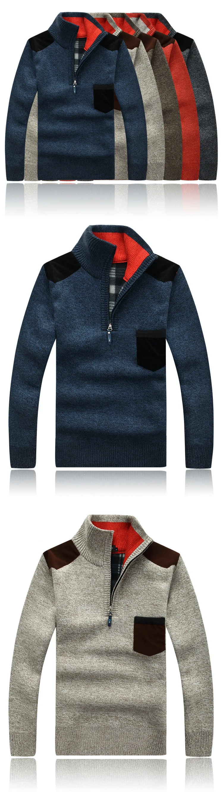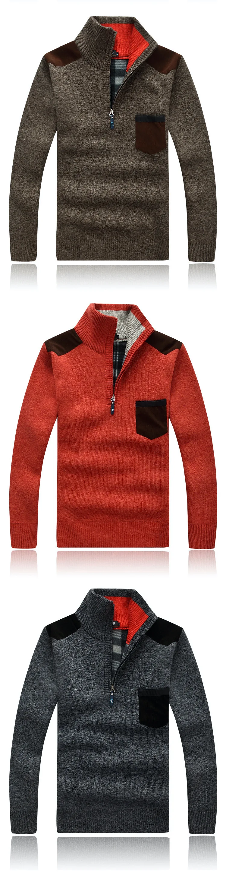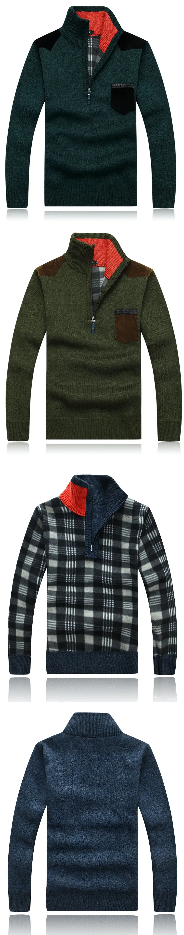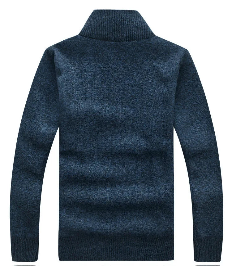 Winter Men's Turtleneck Sweater Half Zip Fleece Knitted Wool Pullover Long Sleeve Pocket Casual Male Thick Clothing for Autumn