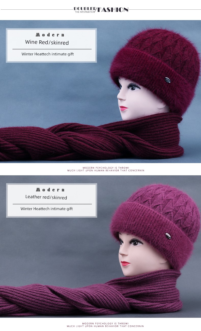 Winter Middle-Aged and Elderly People's Hats Female Ladieswear Rabbit Fur Knitted Warm Hat Women Woolen Cap Grandma Fleece-lined Cotton-Padded Cap