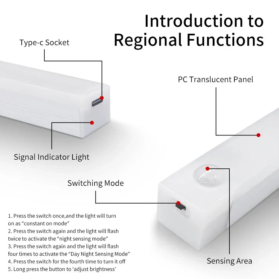 Wireless Led Bar Lights Rechargeable Strip Night Light with Motion Sensor Induction USB DC 5V Bedroom Kitchen Under Cabinet Lamp