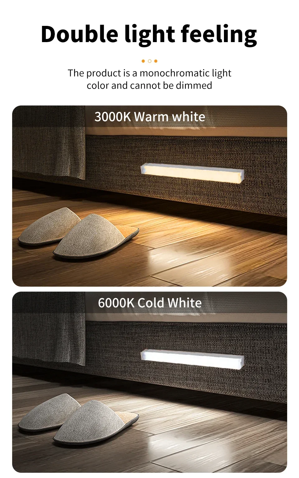 2. The fixing method is magnetic suction type. Peel off the adhesive on the back of the magnet in the package and stick it on the wall or cabinet. The induction lamp can be sucked on the magnet. Easy to install or remove.