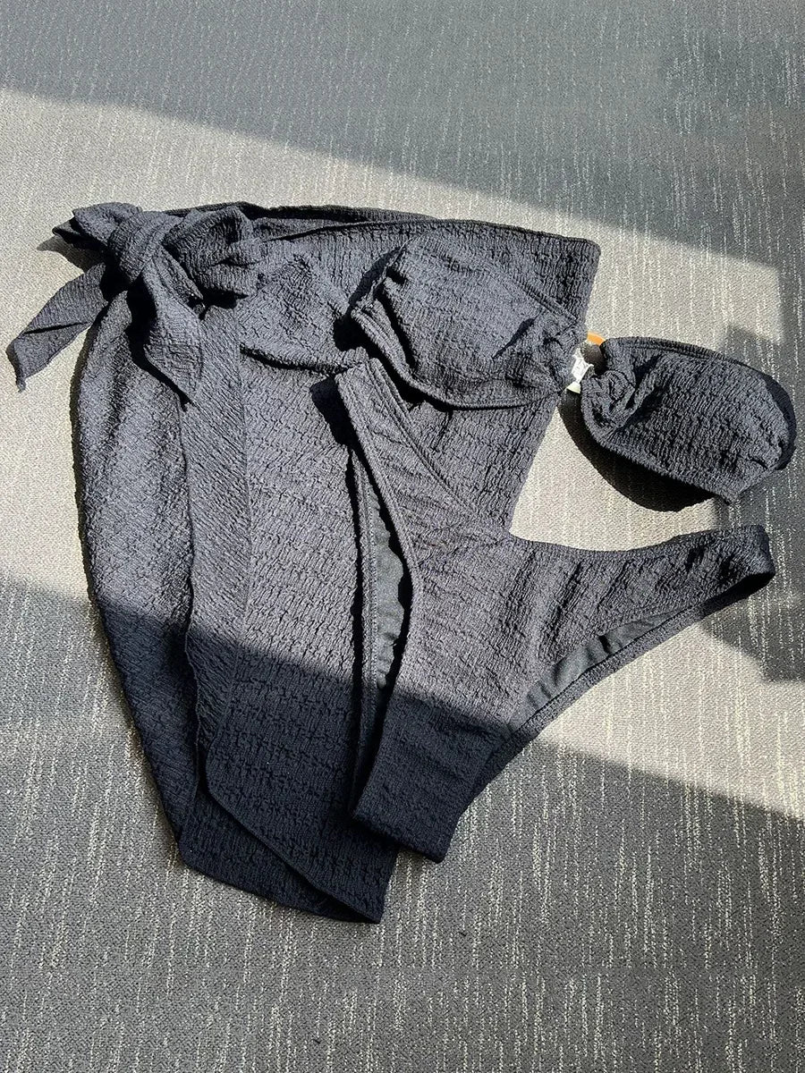 With Sarong Bandeau Strapless Wrinkled Bikini Women Swimwear Female Swimsuit Three-pieces Bikini set Bather Bathing Suit Swim