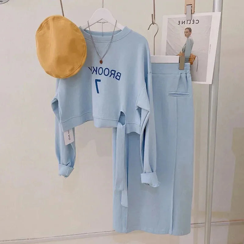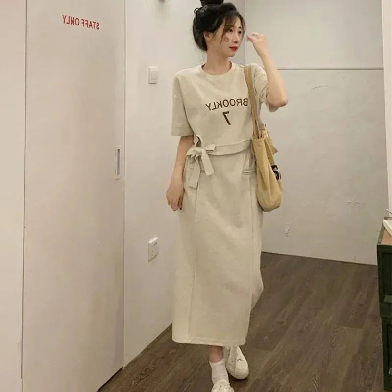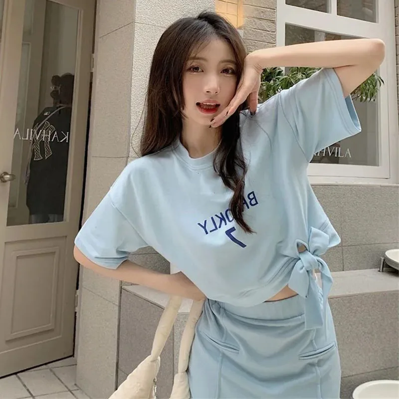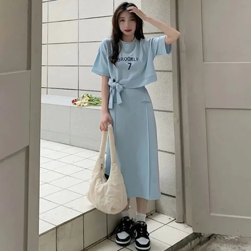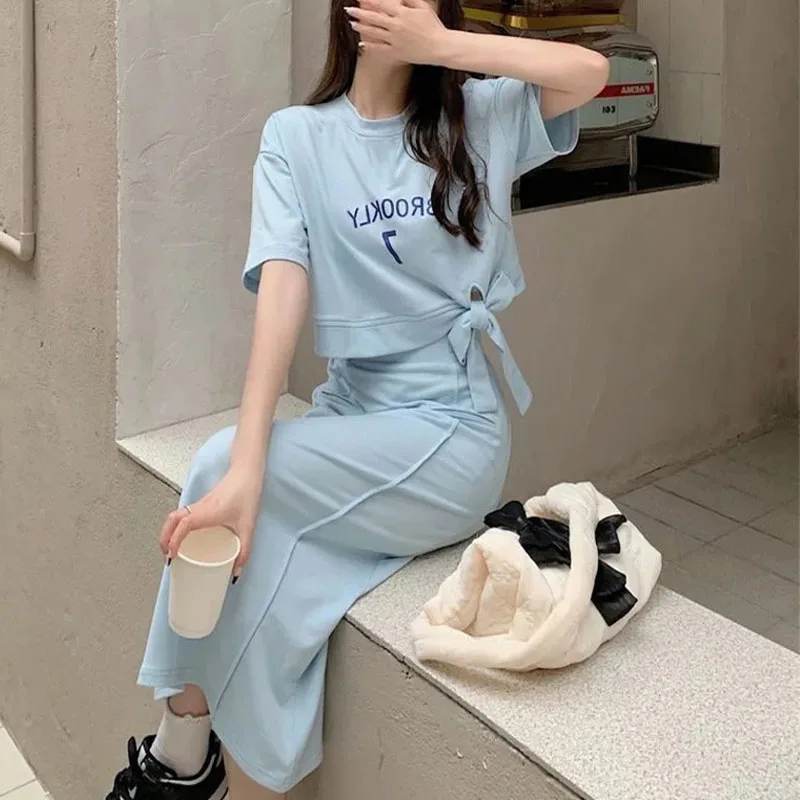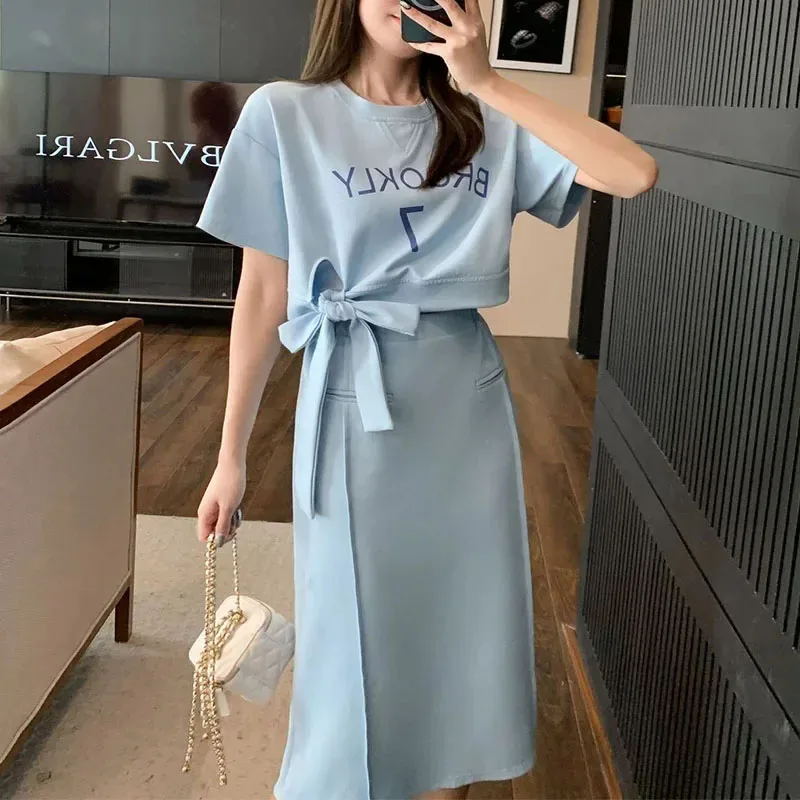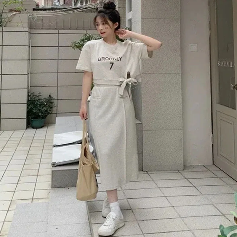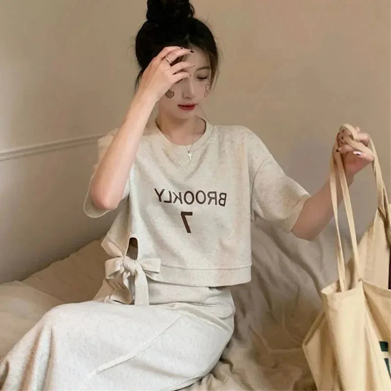 Women Dress Sets Short Sleeve T-shirt+Skirt 2Pcs Suit Letter Print 2024 Summer Fashion Streetwear Female Casual Loose Outfits