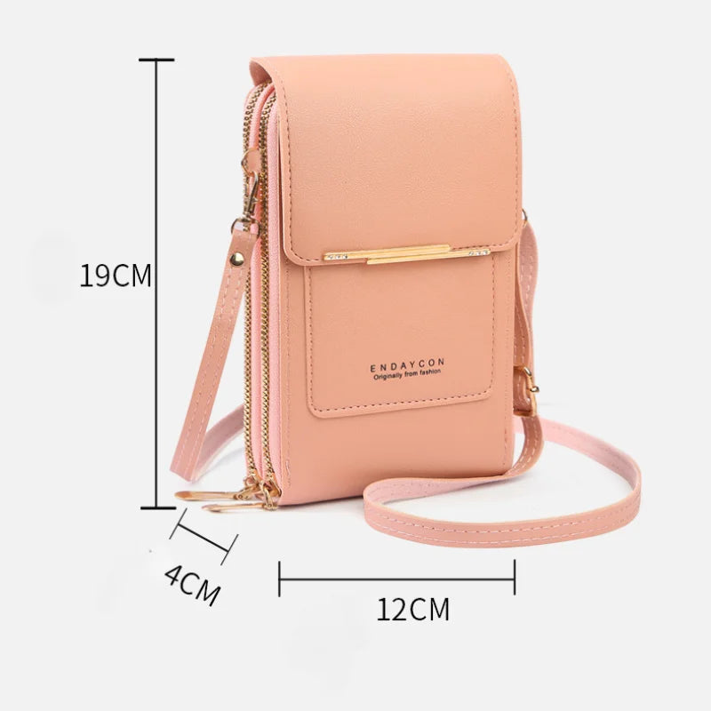 Women Fashion Touch Screen Lock Cell Phone Bag Women's Mobile Phone Card Holder Crossbody Shoulder Bag Money Pockets Small Bags