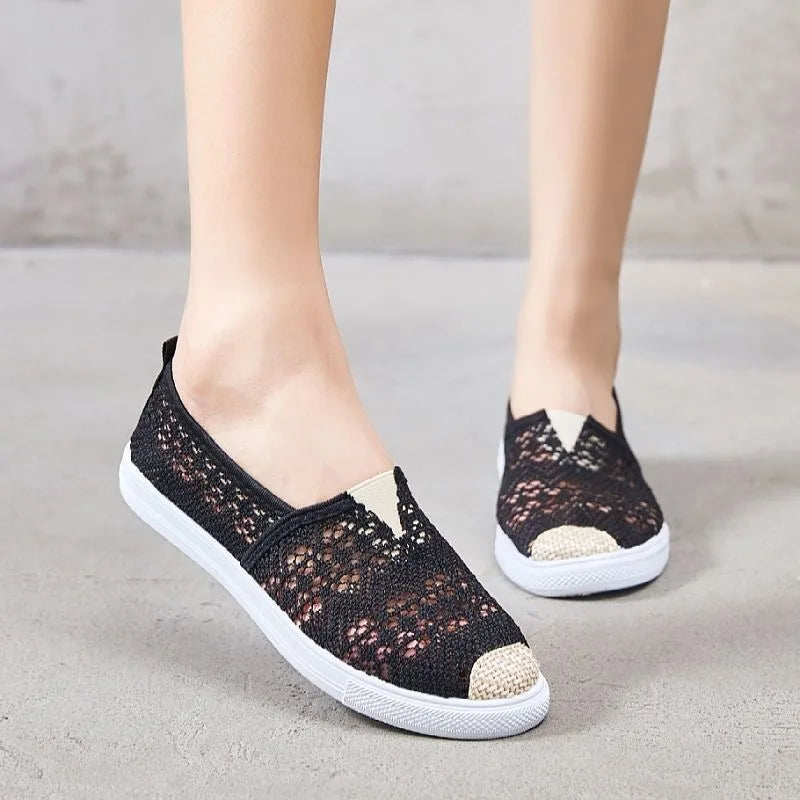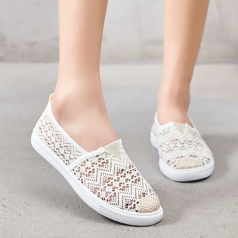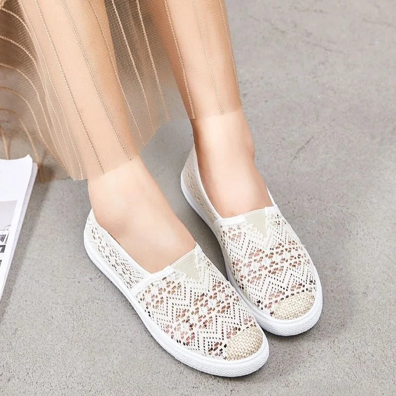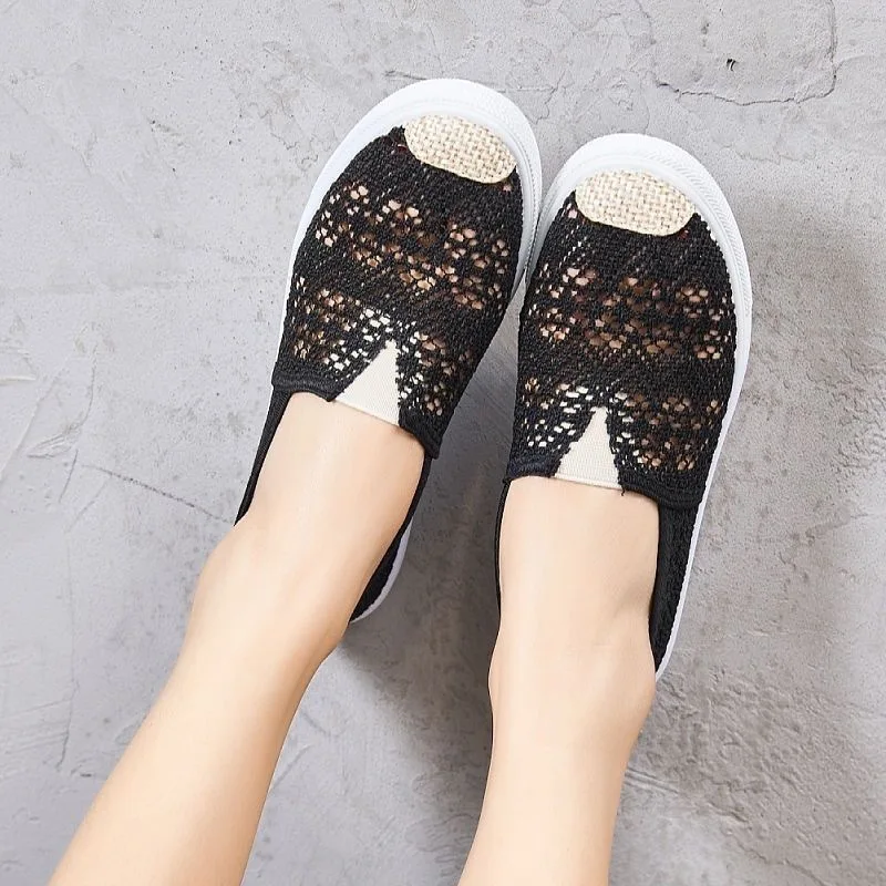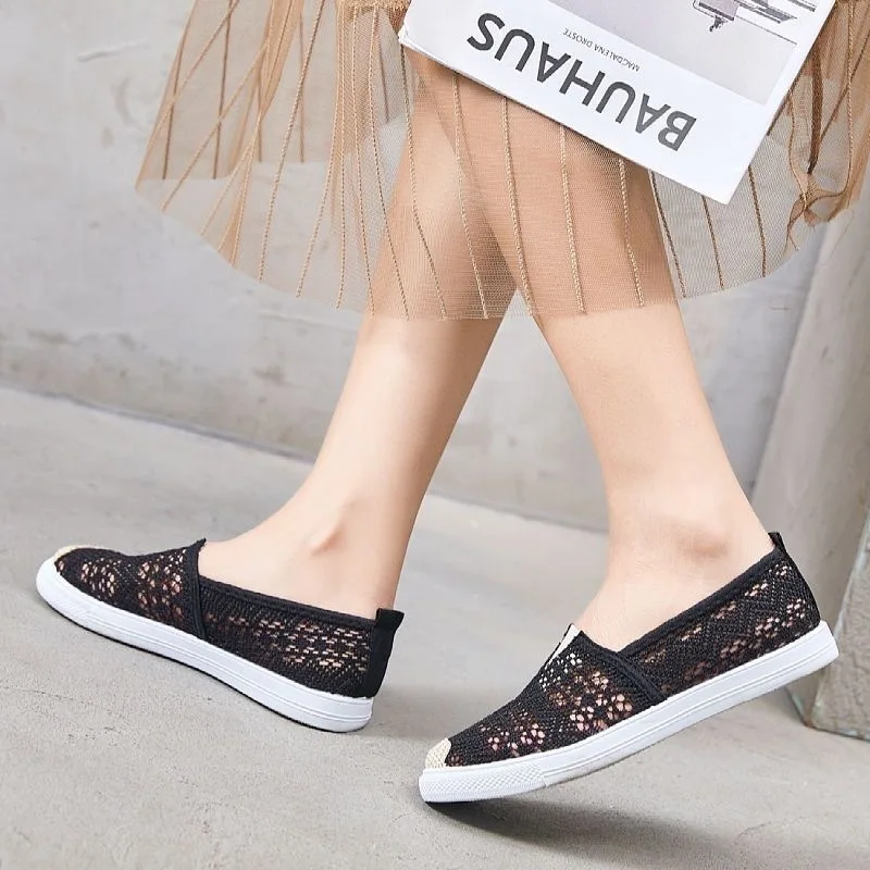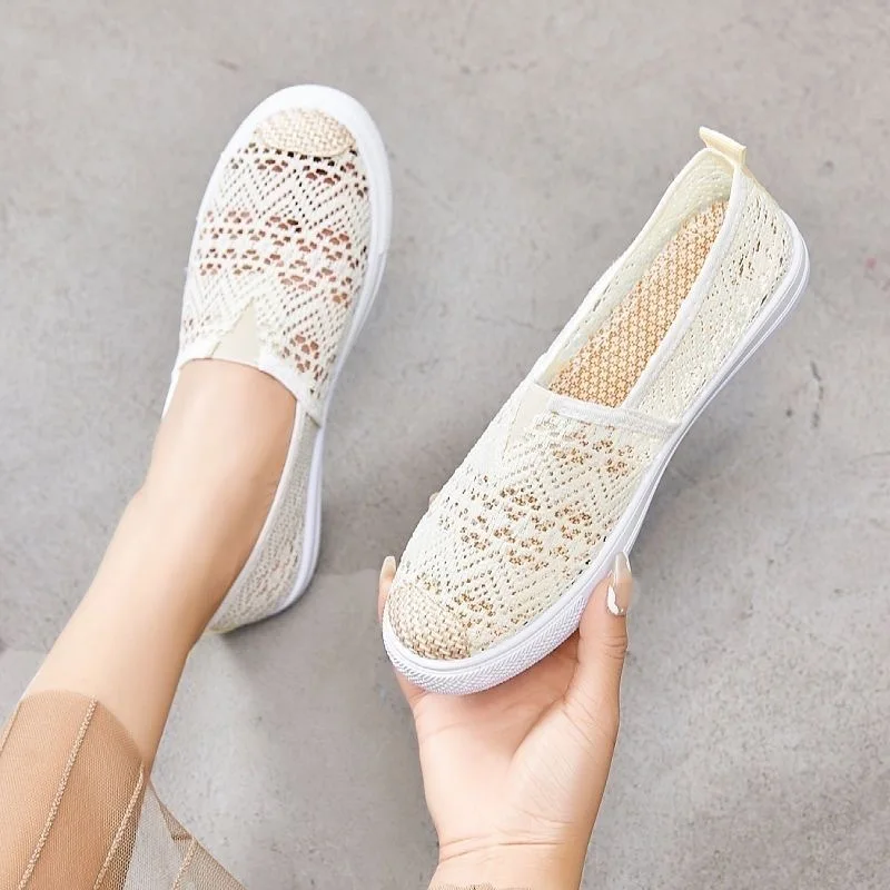 Women Flat Shoes 2025 New Summer Fashionable Breathable Hollow Mesh Soft Sole Casual Women Comfortable Sliding Shoes