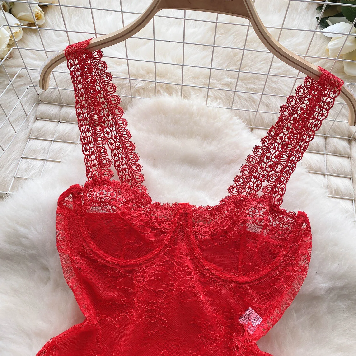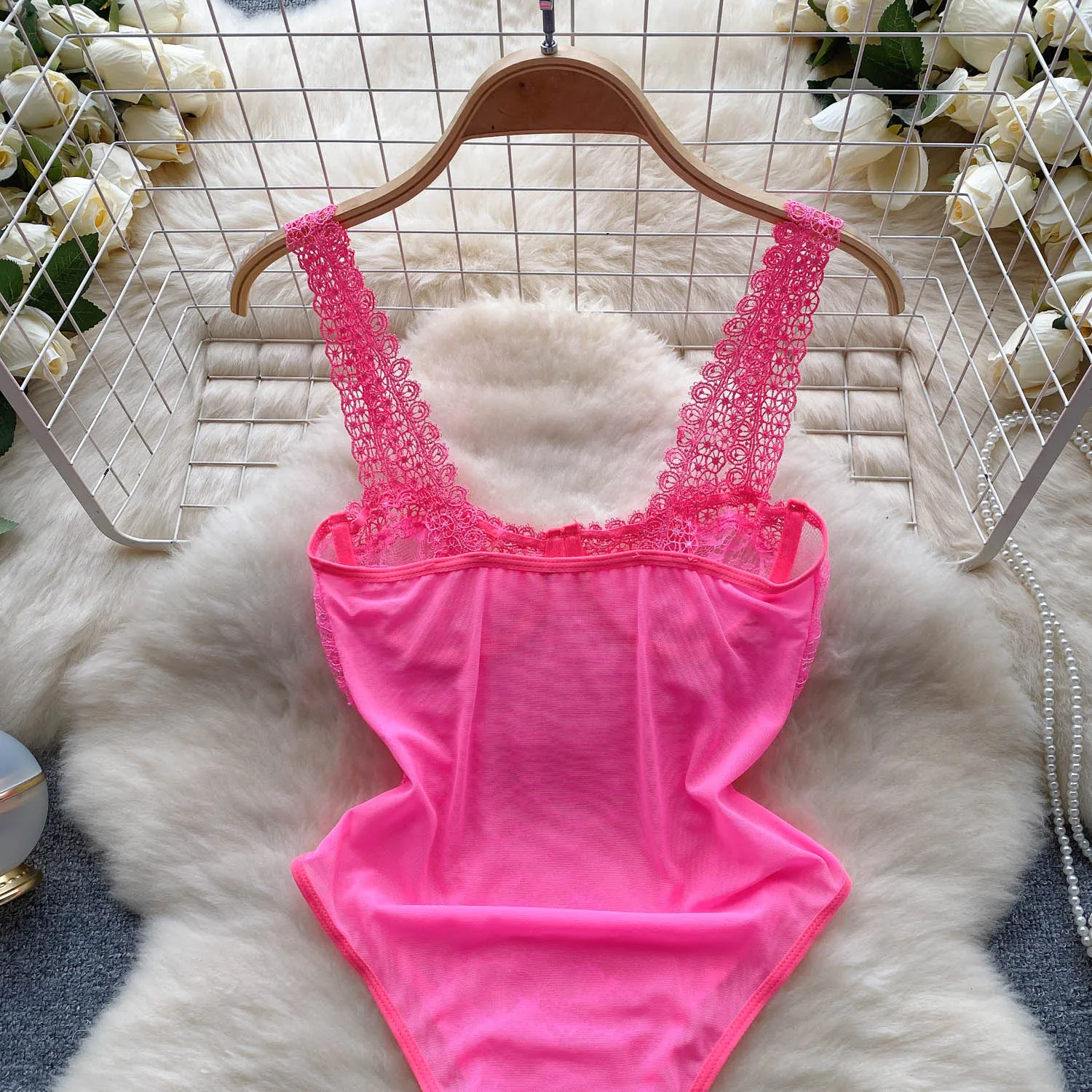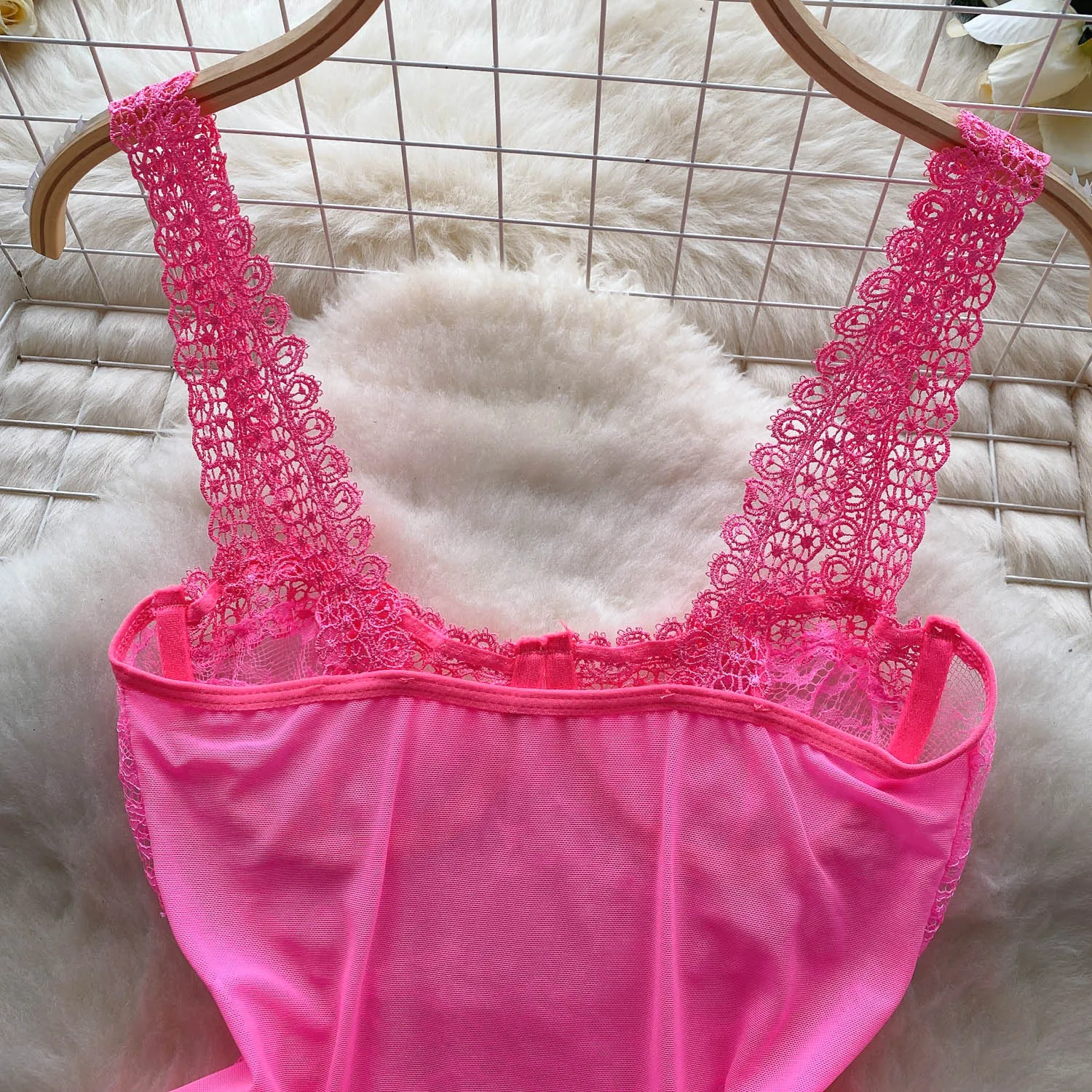 Women Hotsweet Hollow Out Vintage Lace Spliced Mesh Bodysuits Chic Sleeveless Jumpsuits Slim Top Rompers Summer Beach Clothing