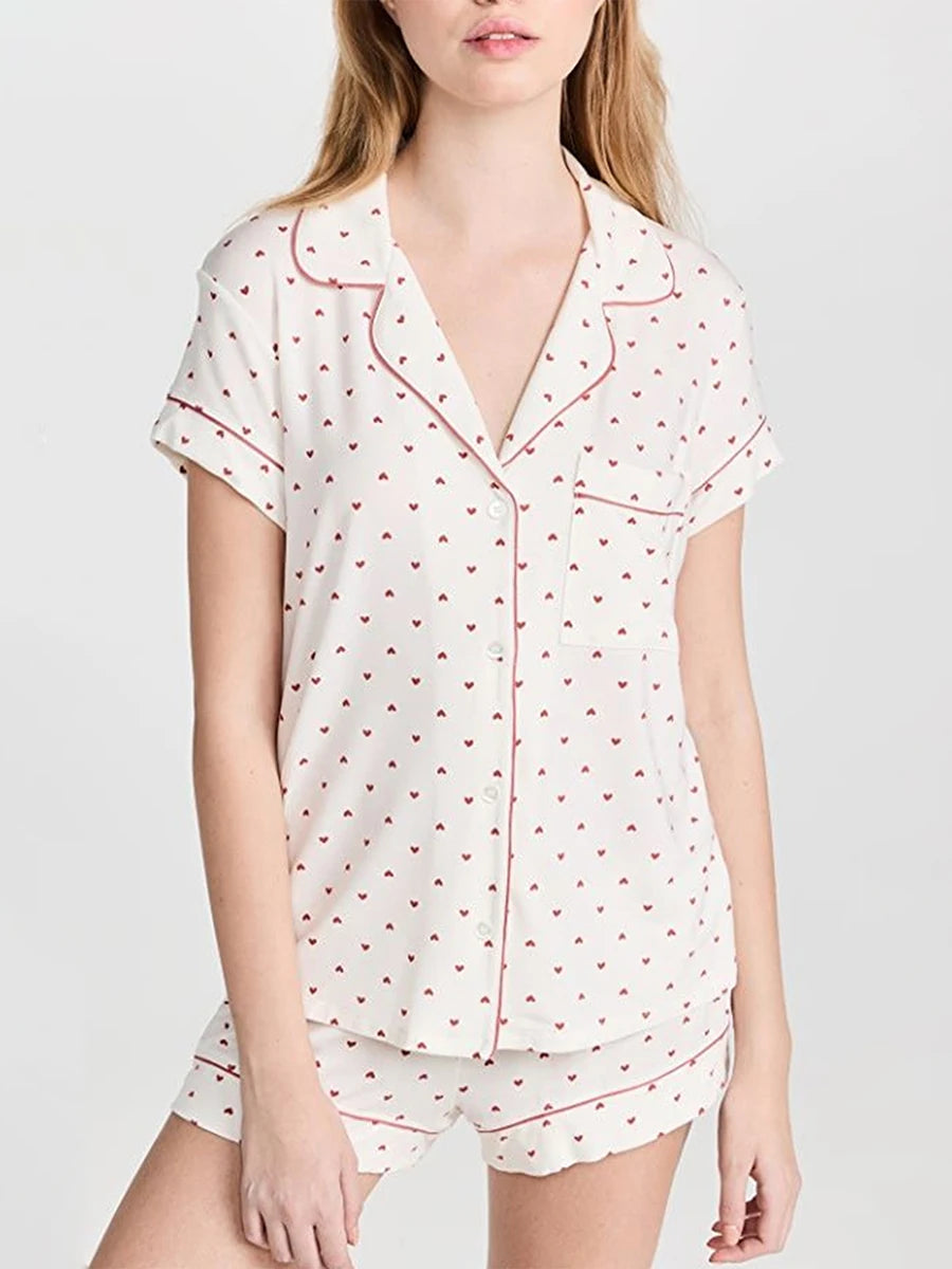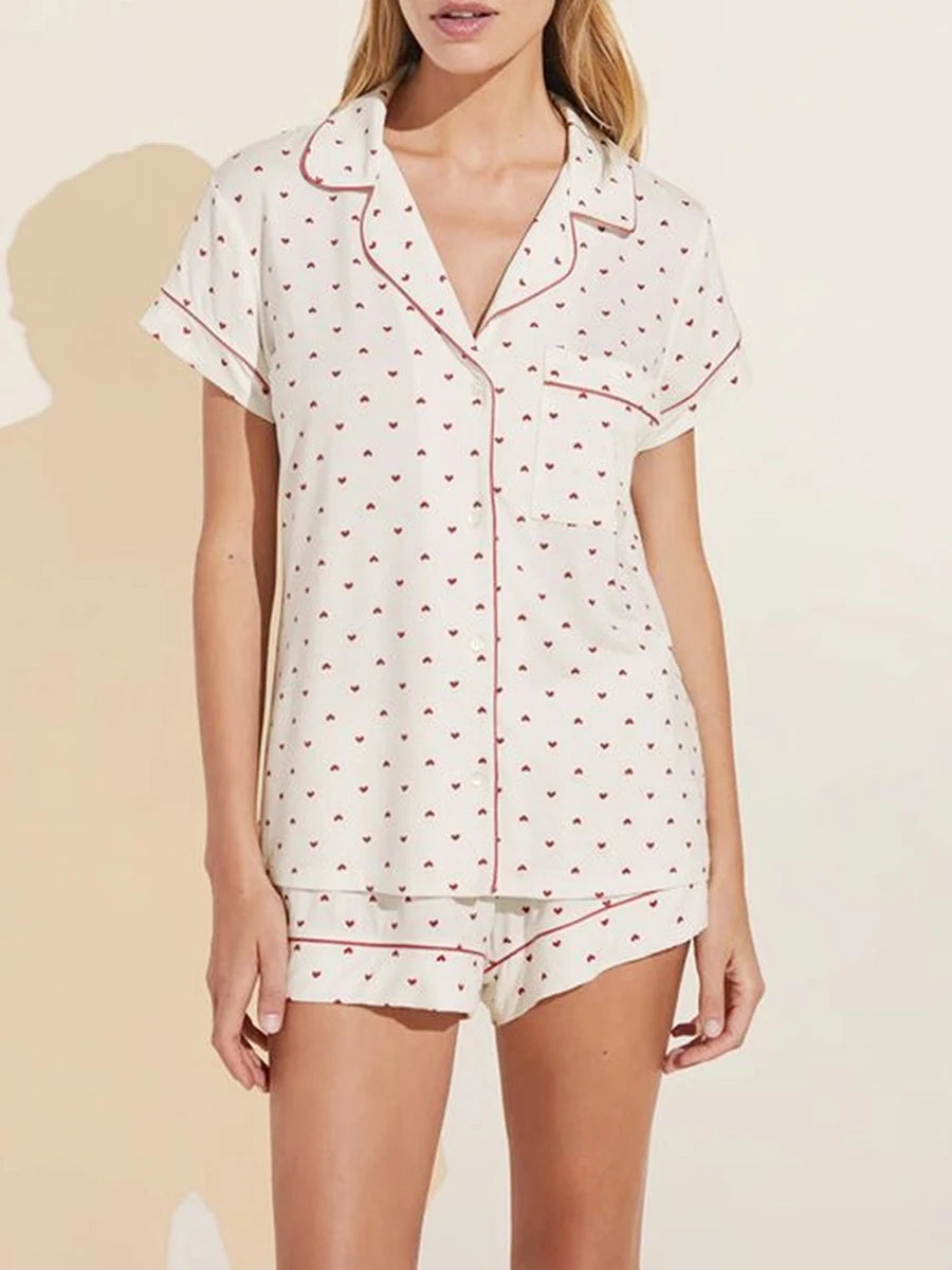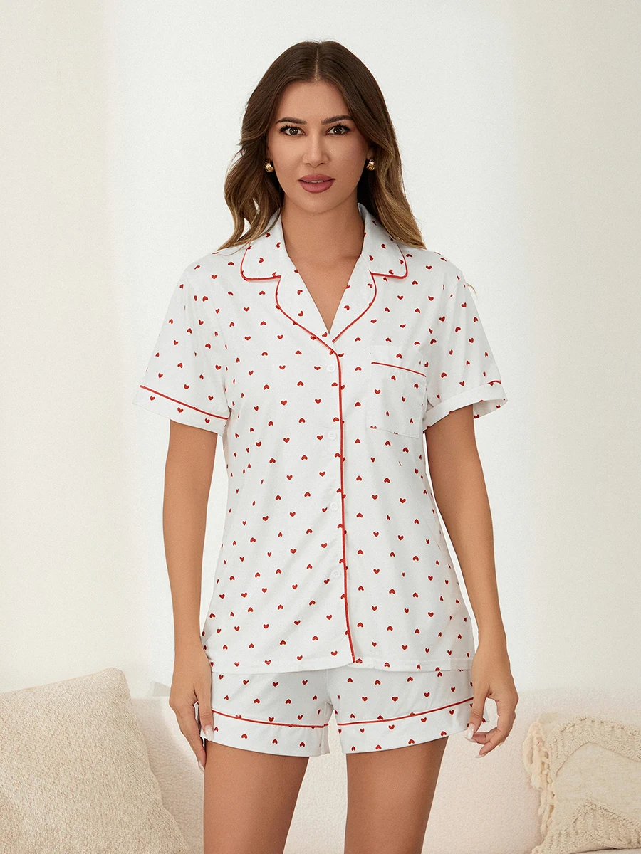 Women Pajamas Set 2 Pieces Loungewear Suits Heart Print Short Sleeve Loose Shirts Tops and Shorts Sleepwear Outfits