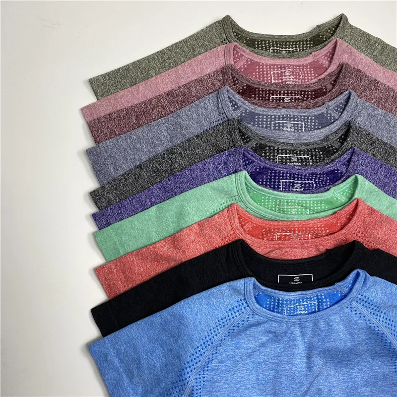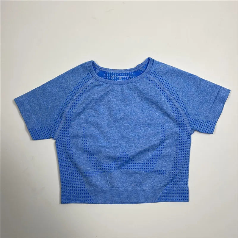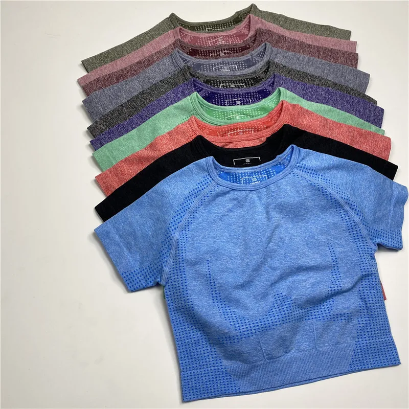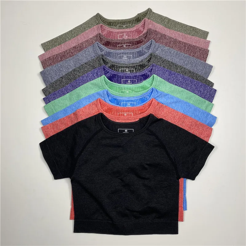 Women Seamless Yoga T-Shirt Female Fitness Crop Top Workout Gym Training Shirts Athletic Short Sleeve Yoga T-shirts Sportswear