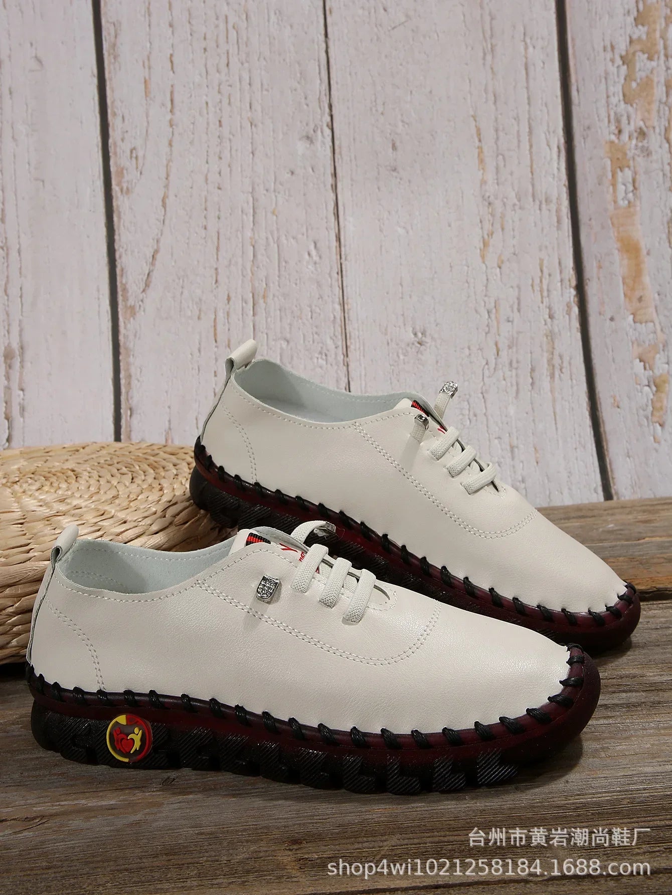 Women Shoes 2024Autumn Fashion Pu Leather Casual Shoes Handmade Sewing Soft Comfortable Mom Shoes Women Sneakers Chaussure Femme