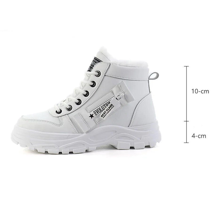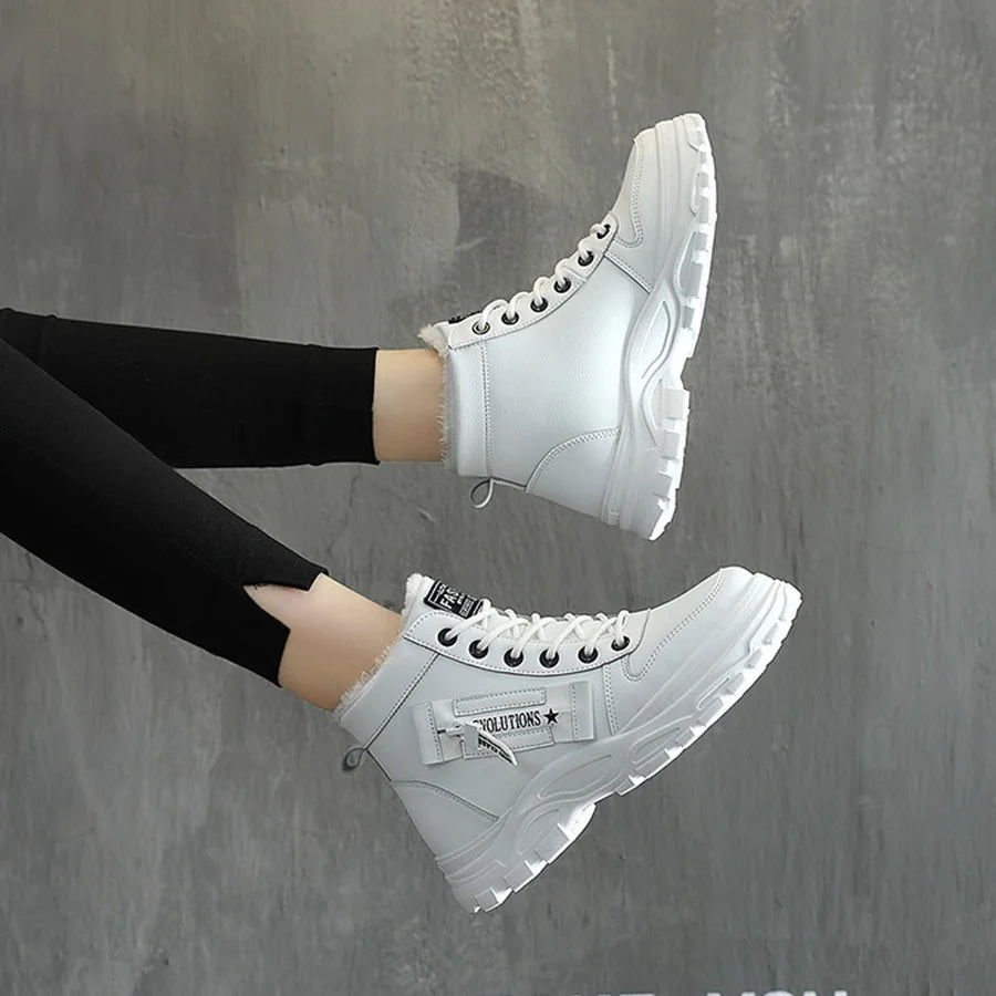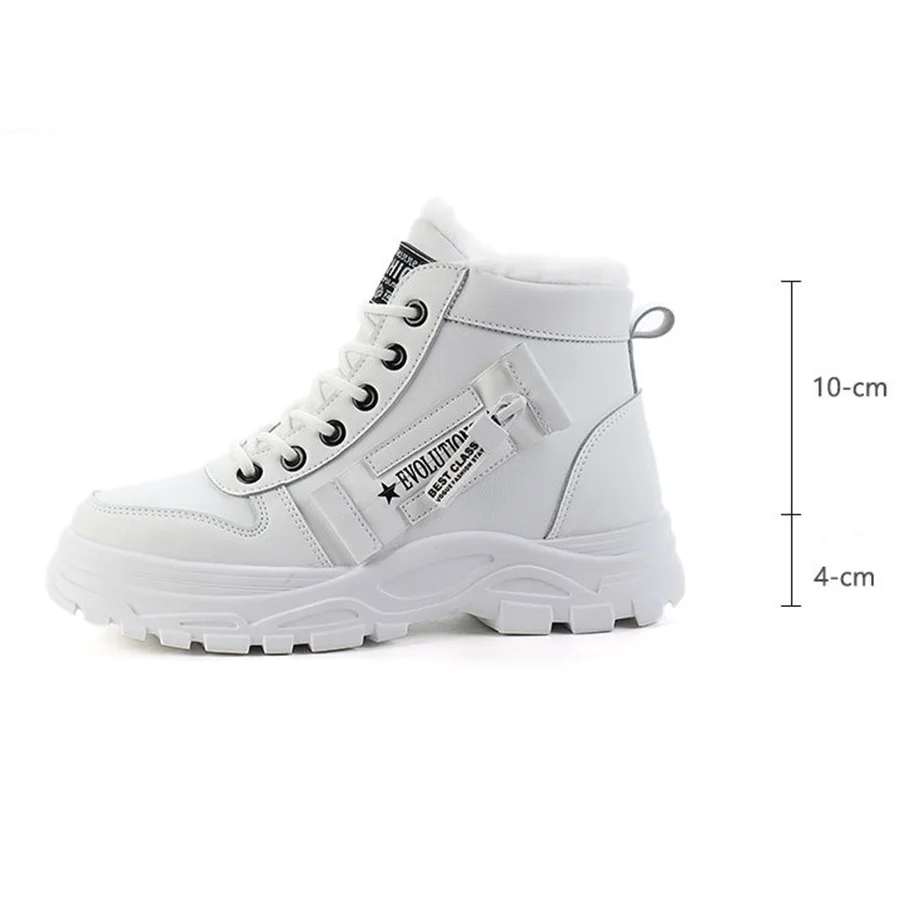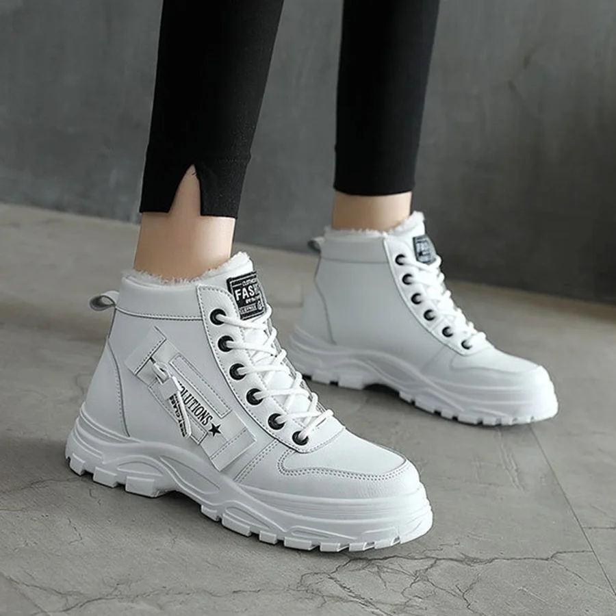 Women Sneakers winter shoes PU Leather trainers Woman Warm plush High Top sport shoes 2001