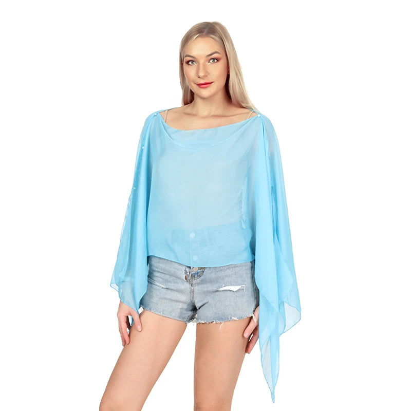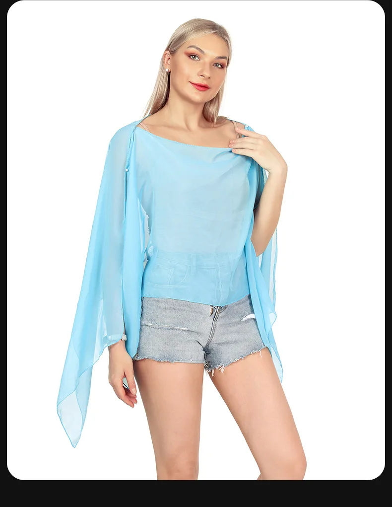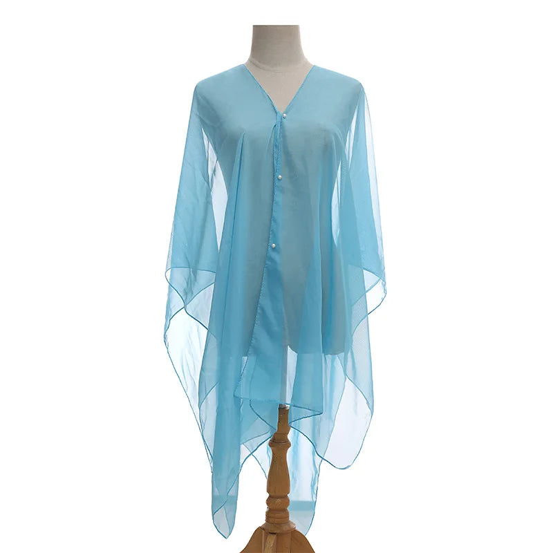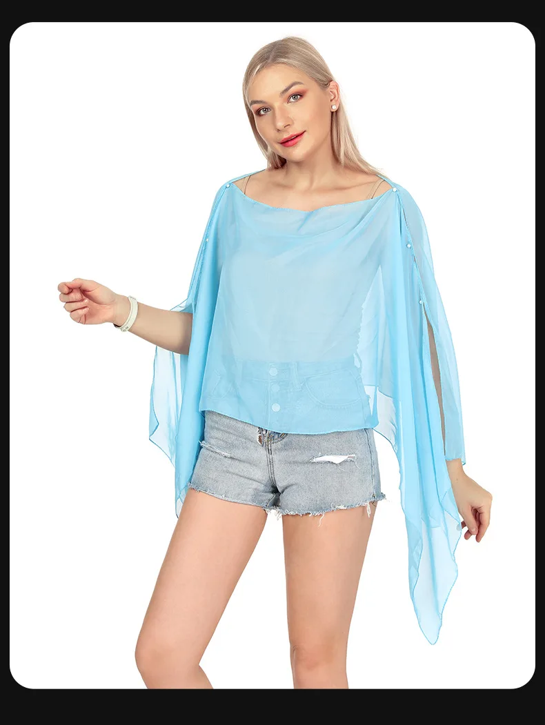 Women Sun Protection Shawl for Cycling Lady Summer Chiffon T-shirt Holiday Solid Color Scarf Bikini Blouse Breathable Beach Wrap