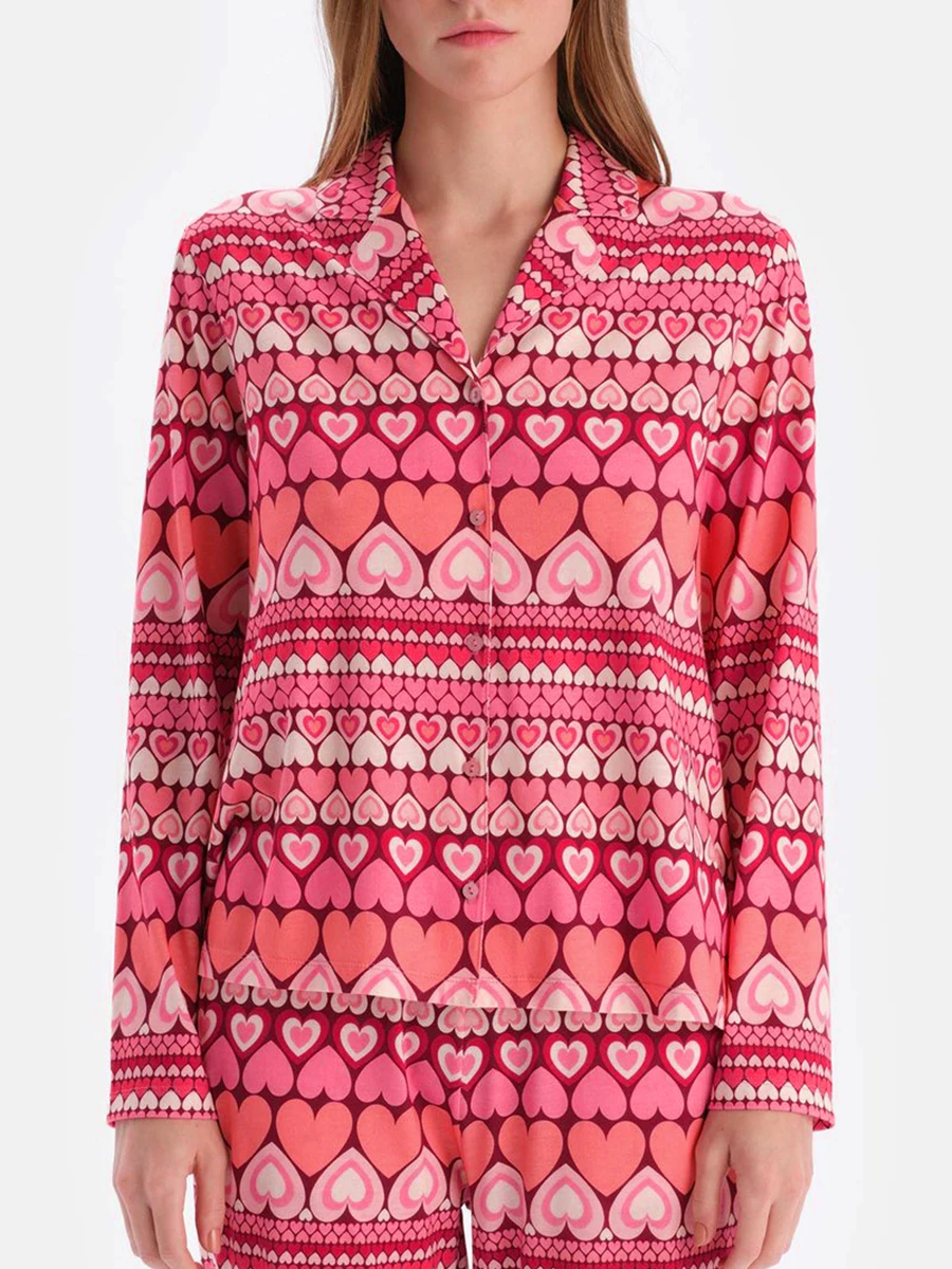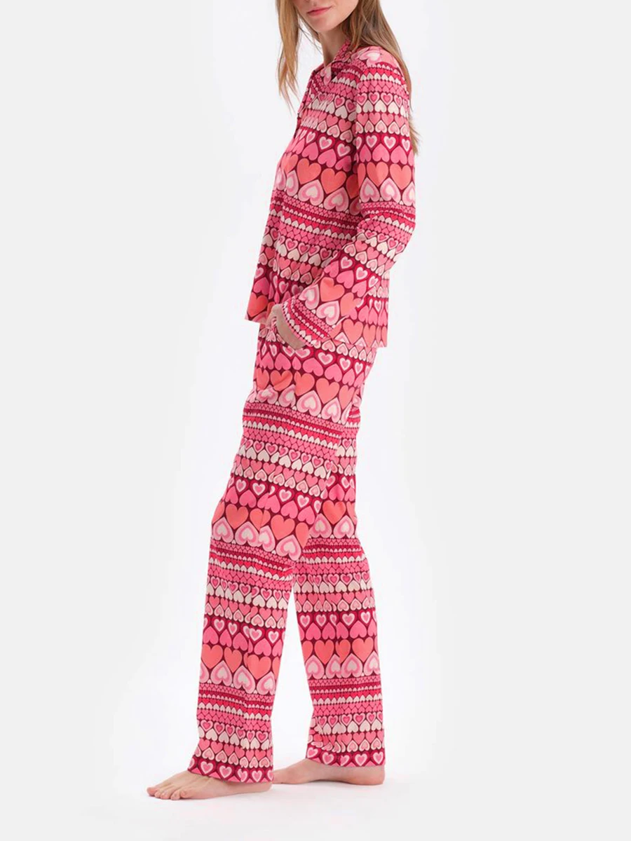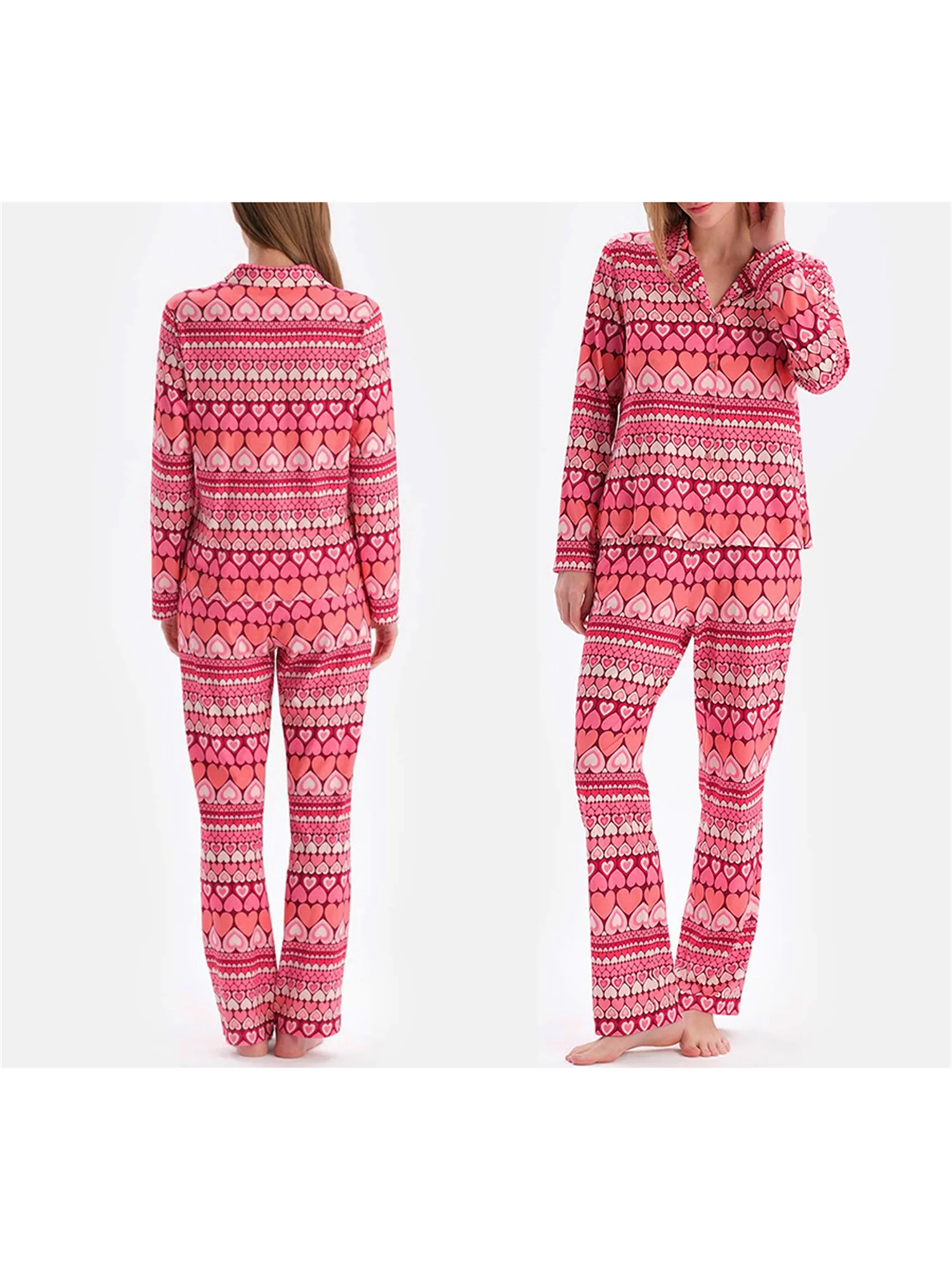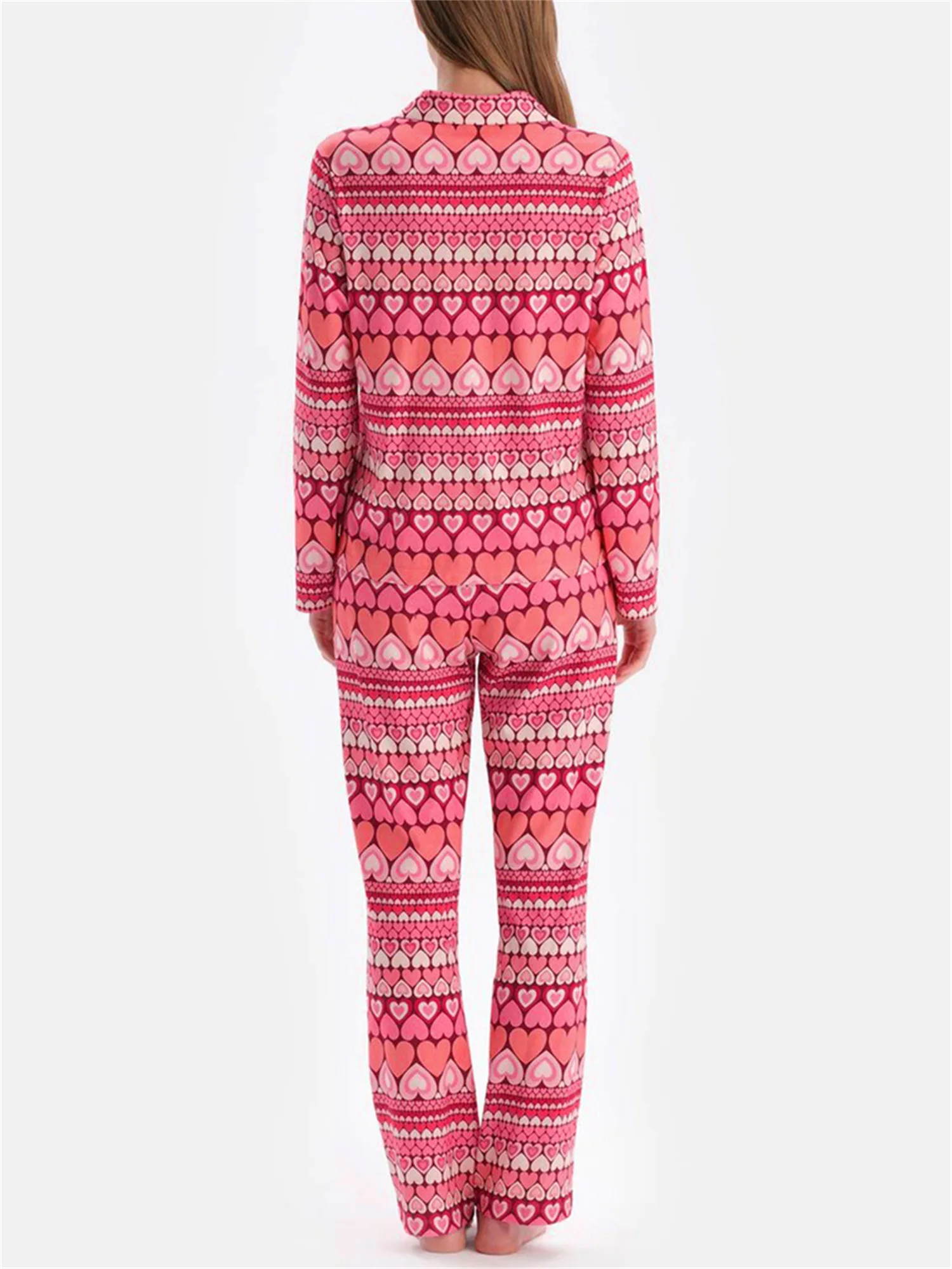 Women Valentine s Day Pajamas Lounge Set Heart Print Long Sleeve Tops and Pants 2 Piece Loungewear Outfits