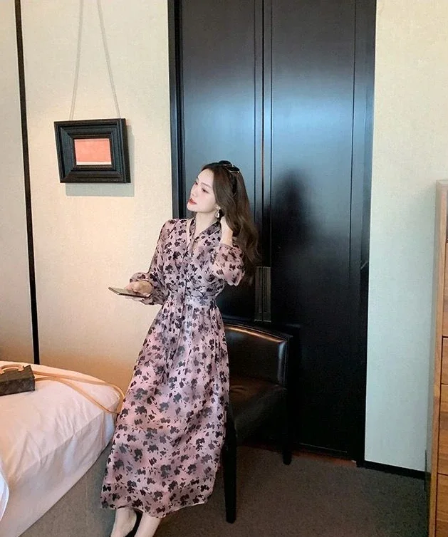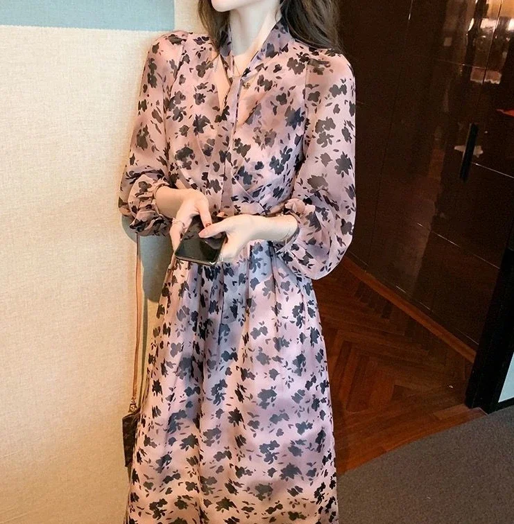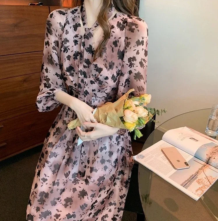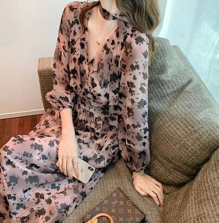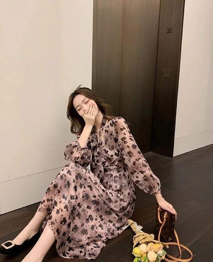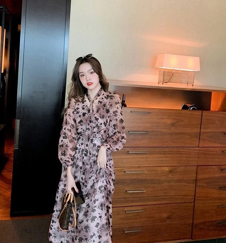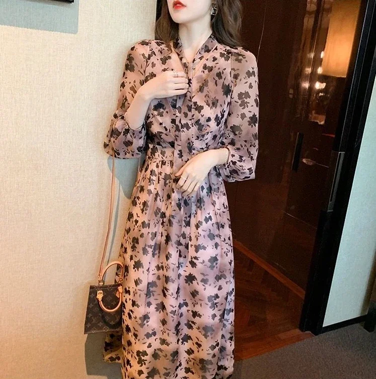 Women's Dress Chiffon Female Dresses Beach Flower Loose Silk Floral Satin 2024 Fashion Summer Curvy Clothes Harajuku Outfits Hot