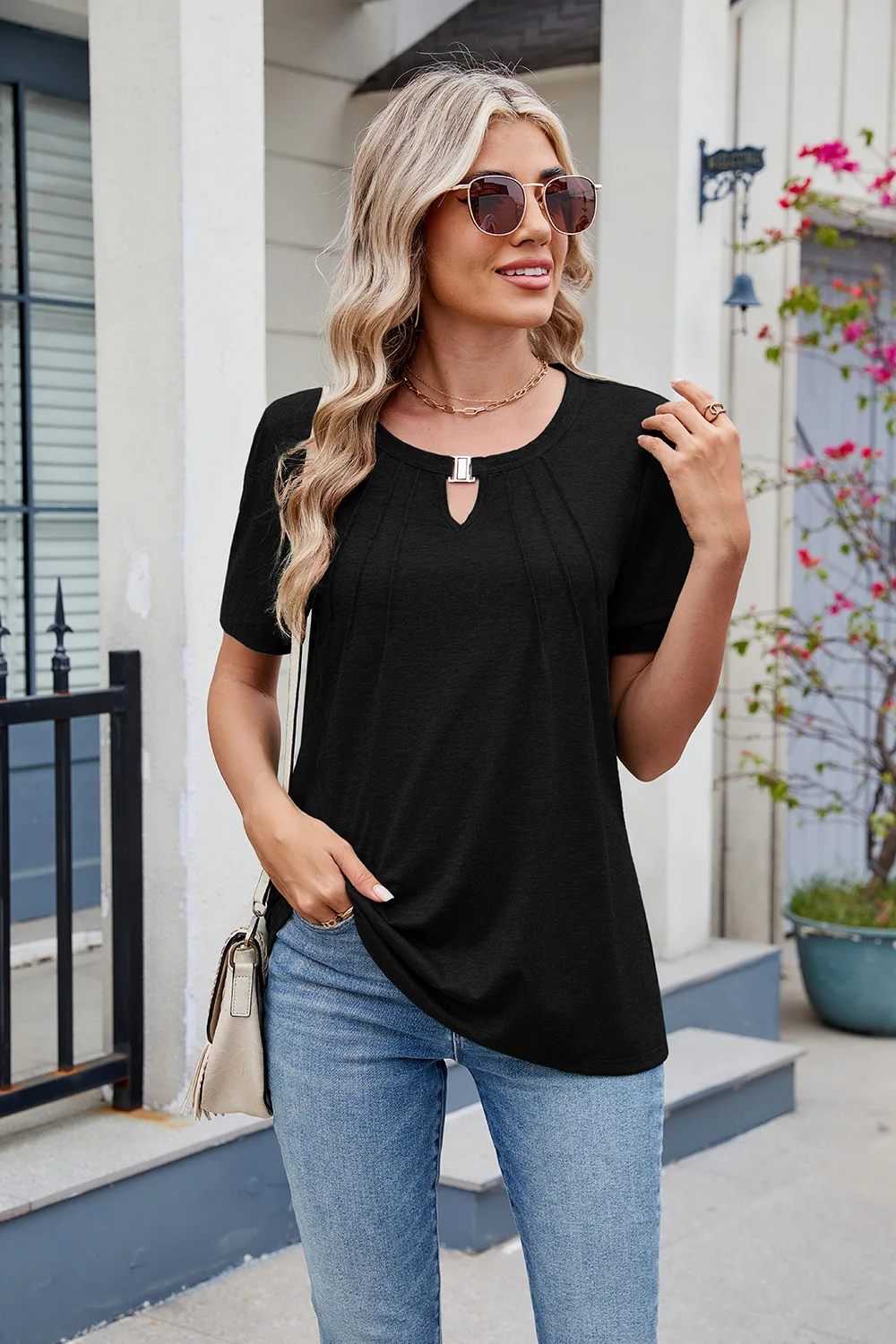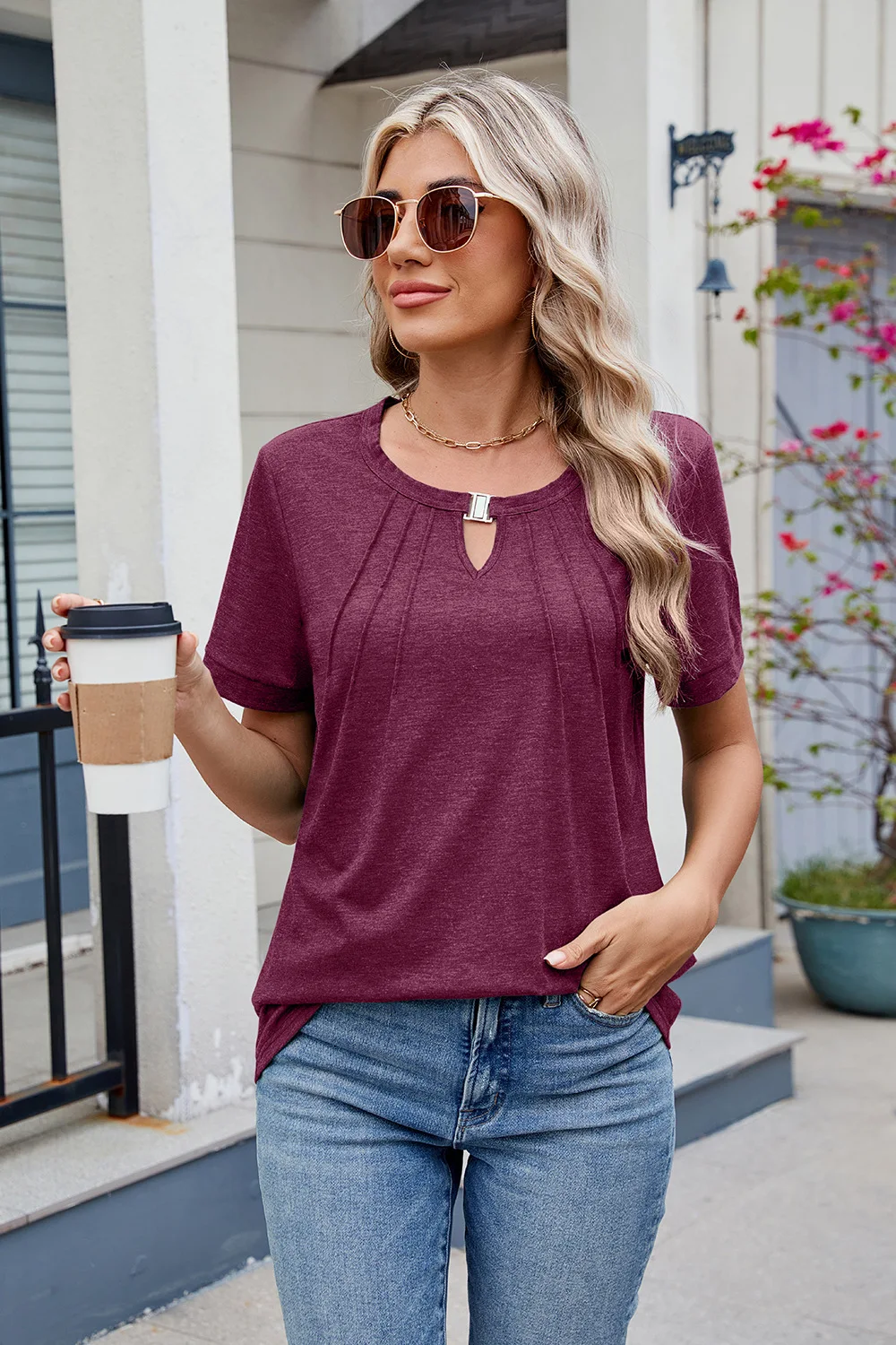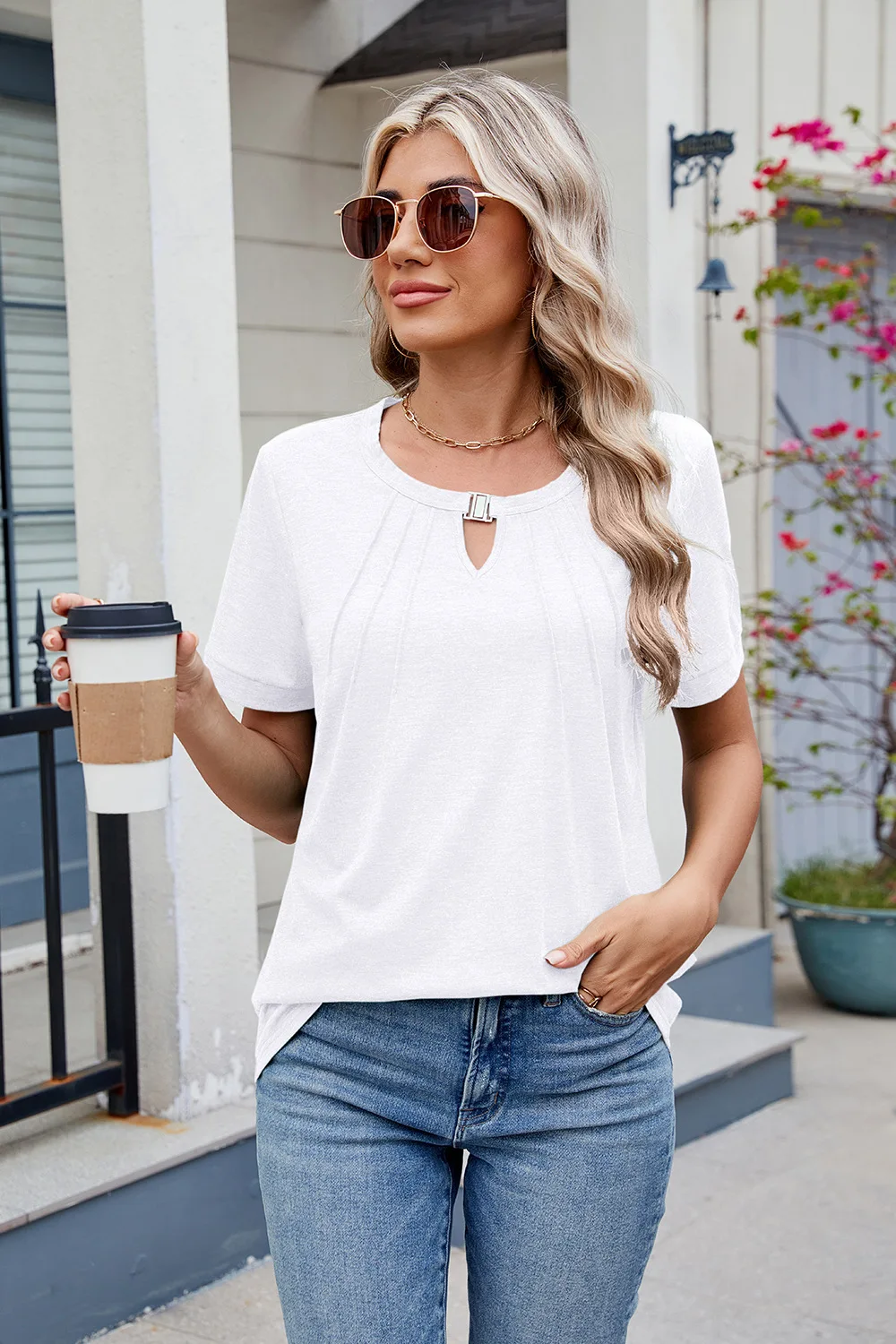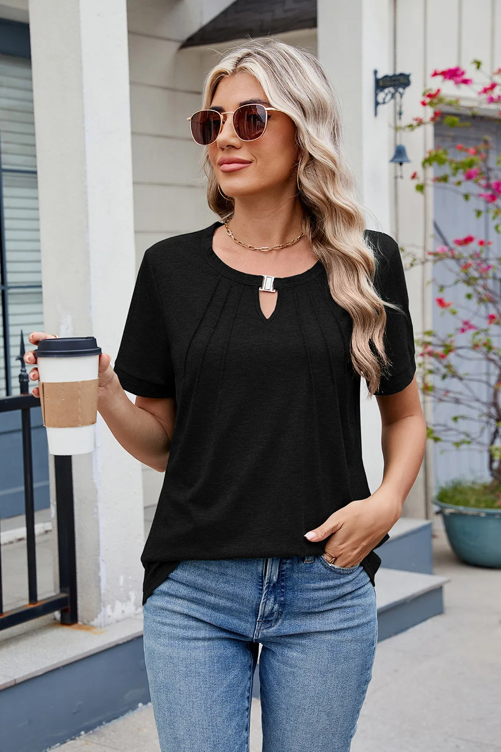 Women's Elegant Hollow Out O-Neck Tops Solid Casual Work Shirt Short Sleeve T Shirt Fashion Women Clothes 2025 Summer New