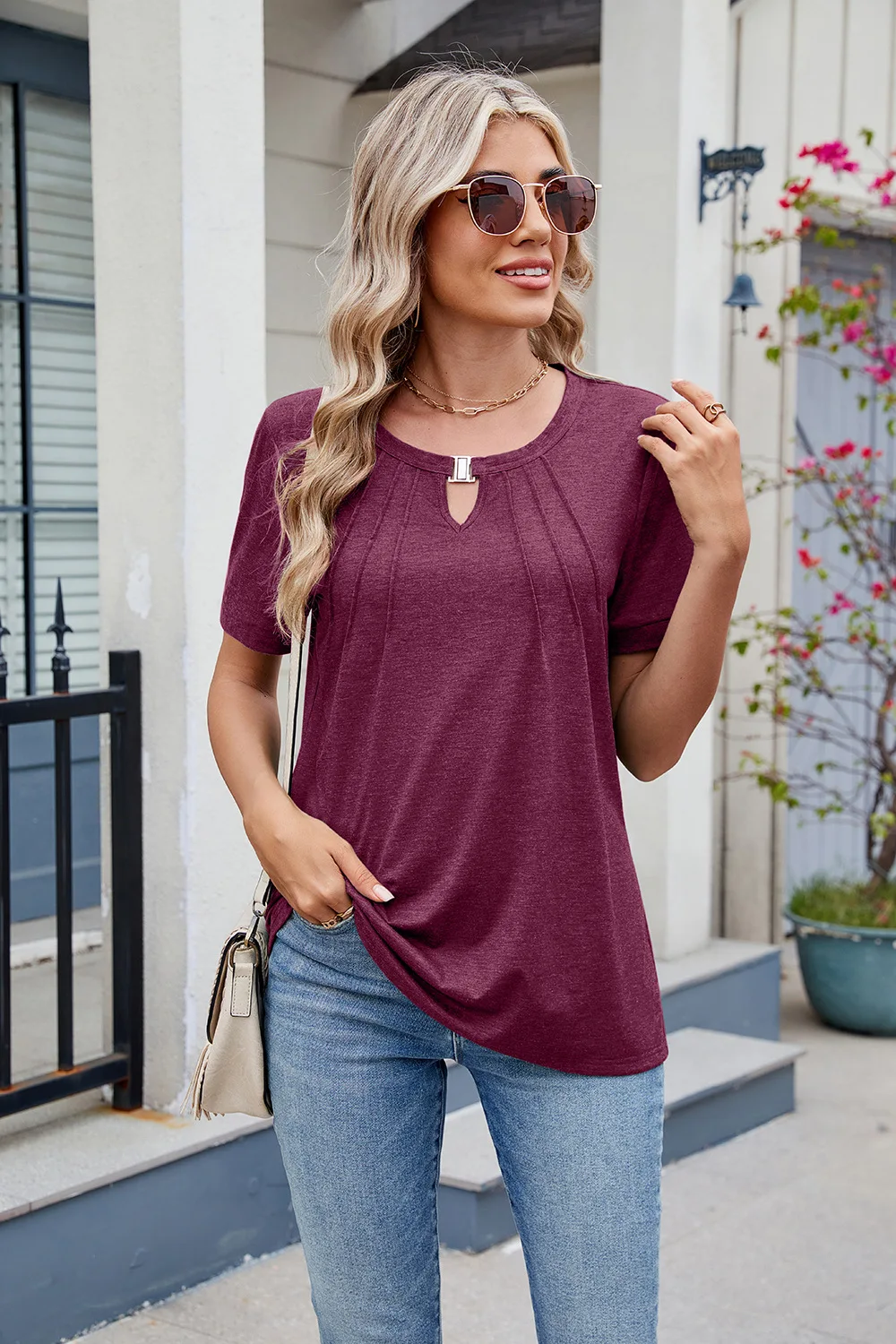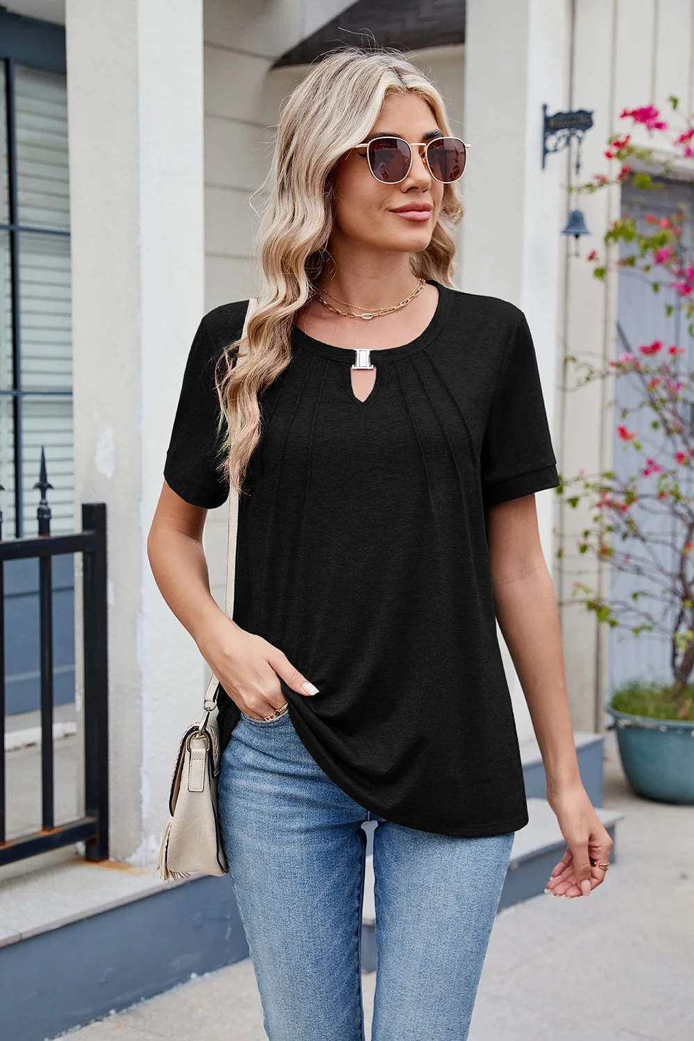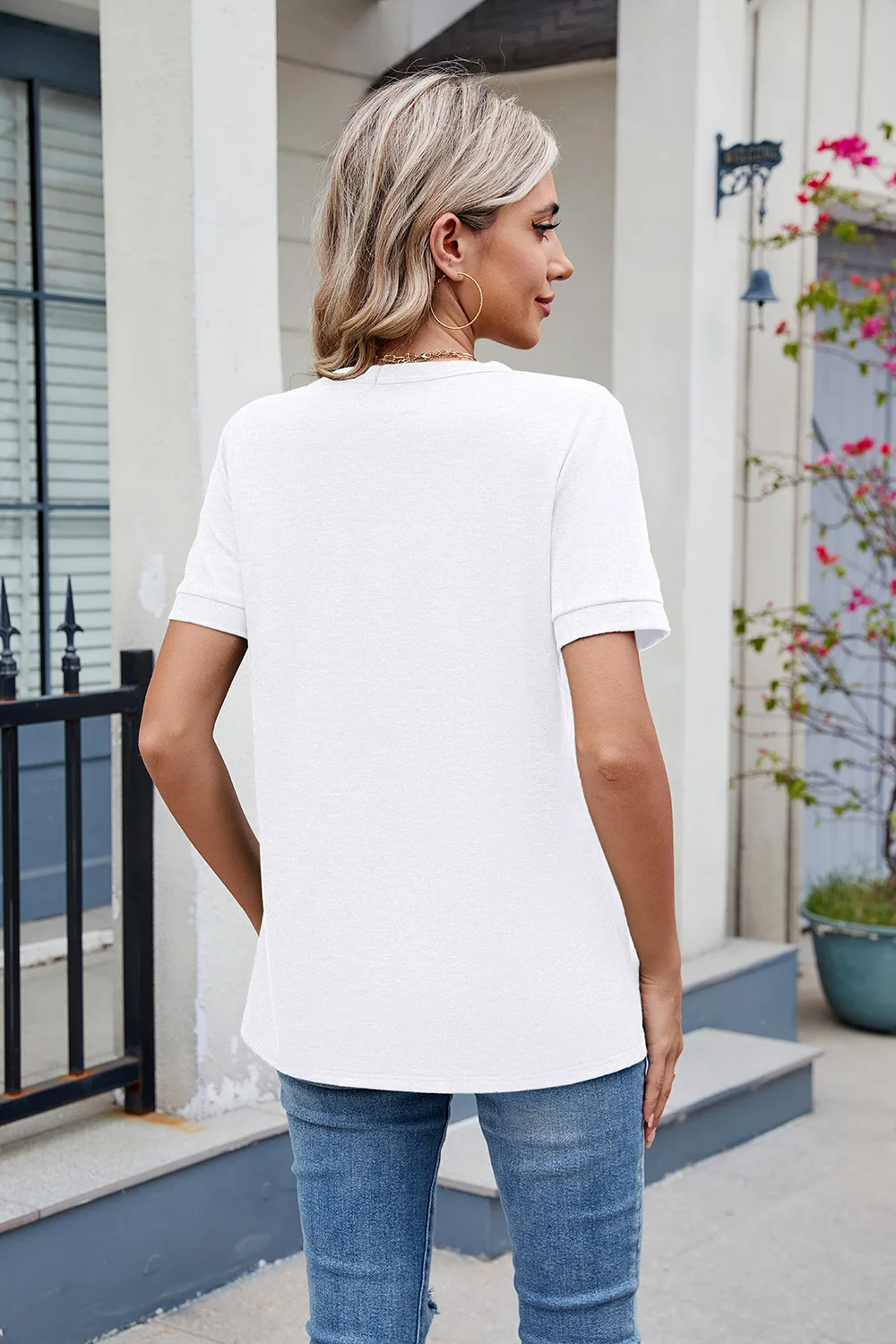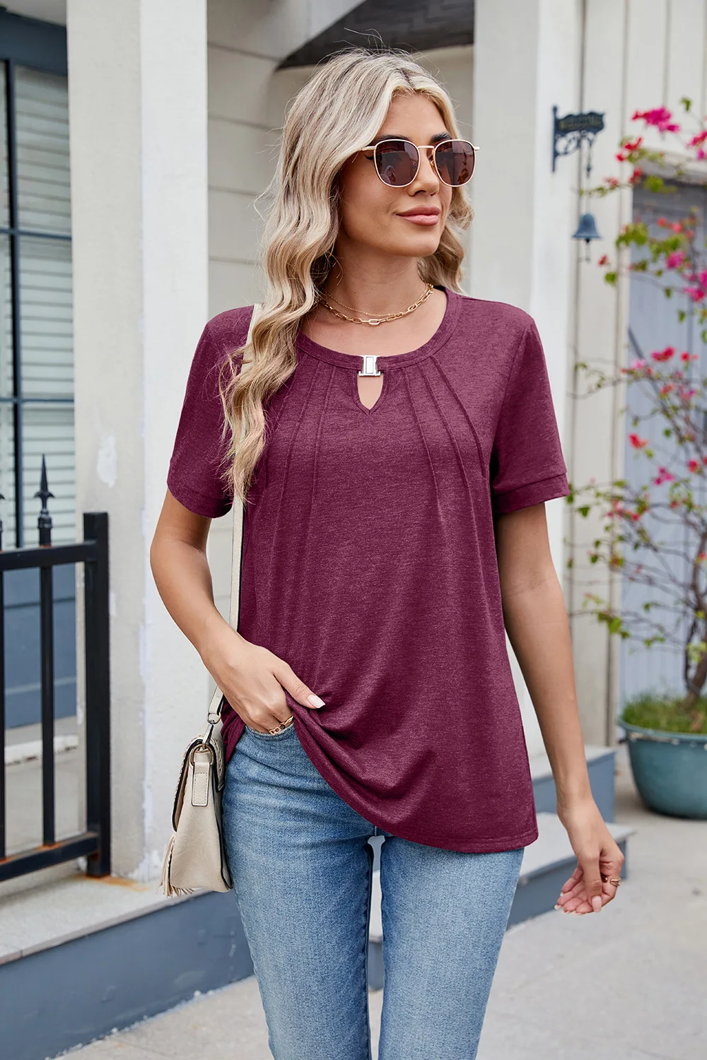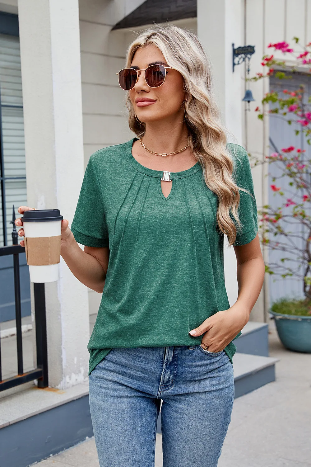 Women's Elegant Hollow Out O-Neck Tops Solid Casual Work Shirt Short Sleeve T Shirt Fashion Women Clothes 2025 Summer New