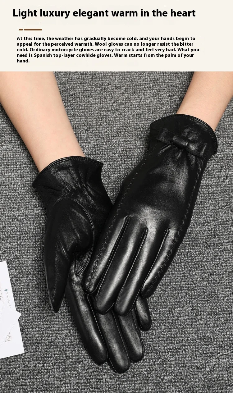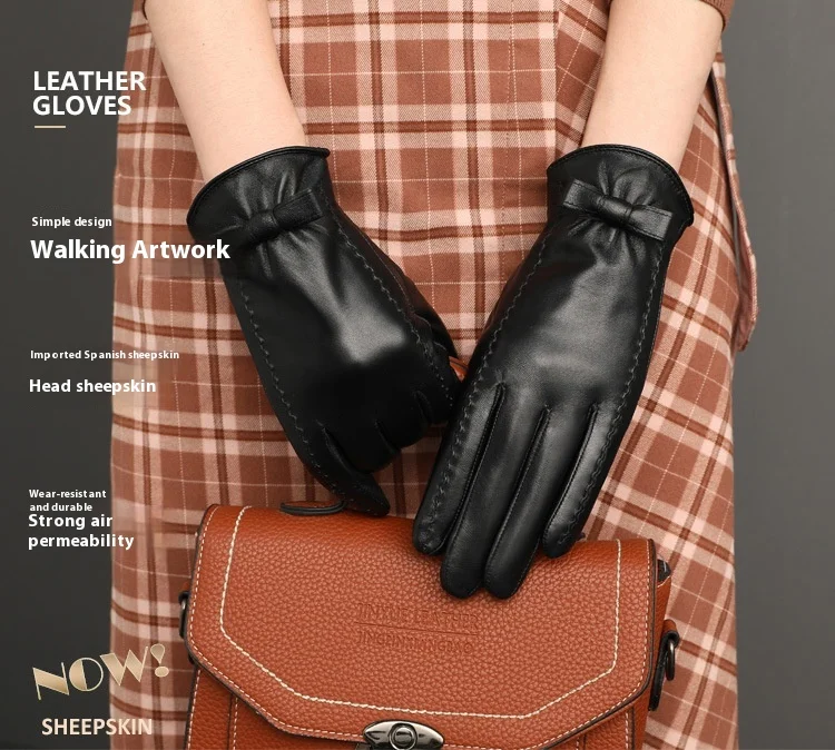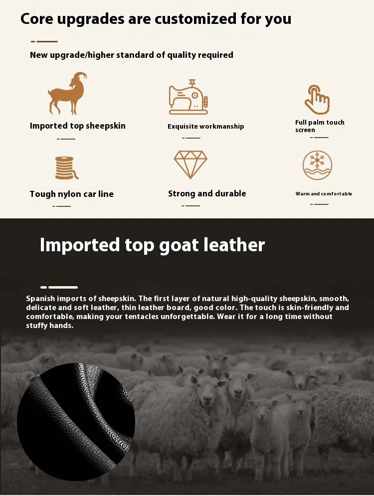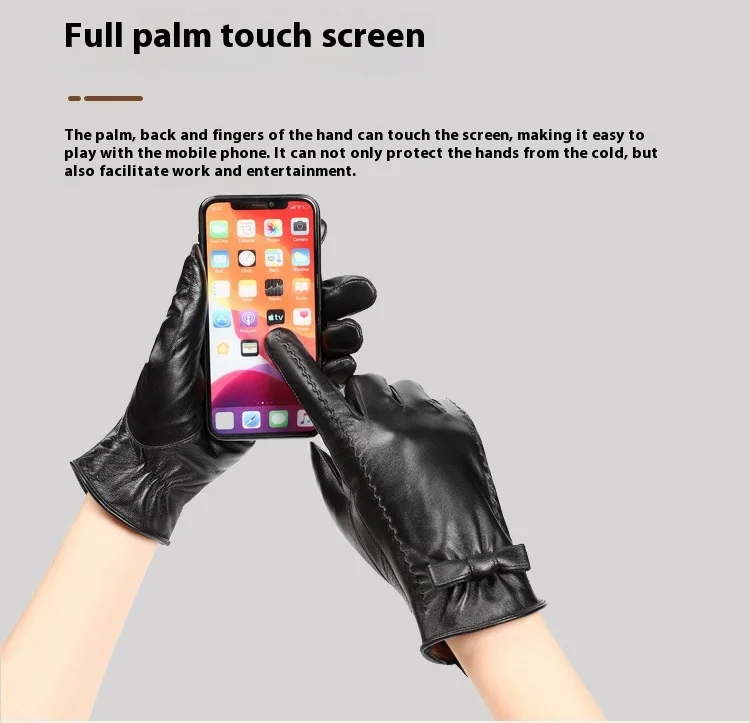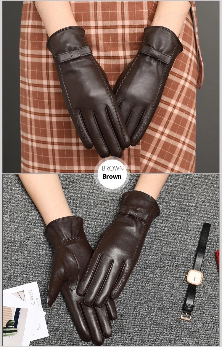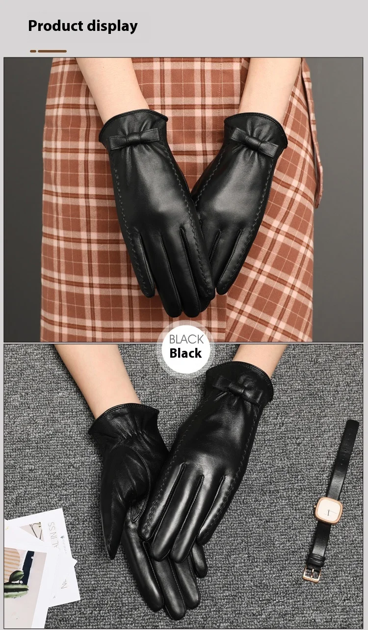 Women's Genuine Leather Gloves Sheepskin Gloves Fashion Autumn and Winter Thick Fleece Warm Touch Screen Motorcycle Biker Gloves