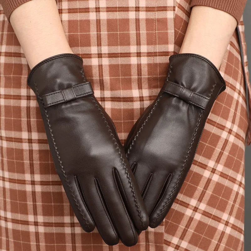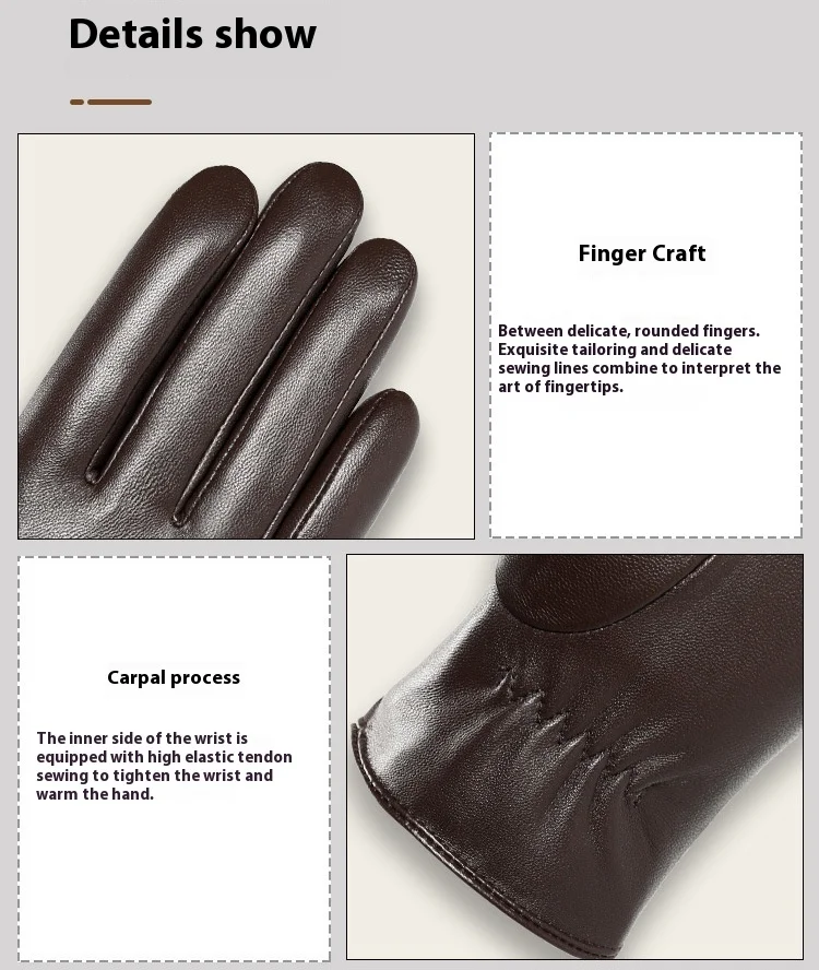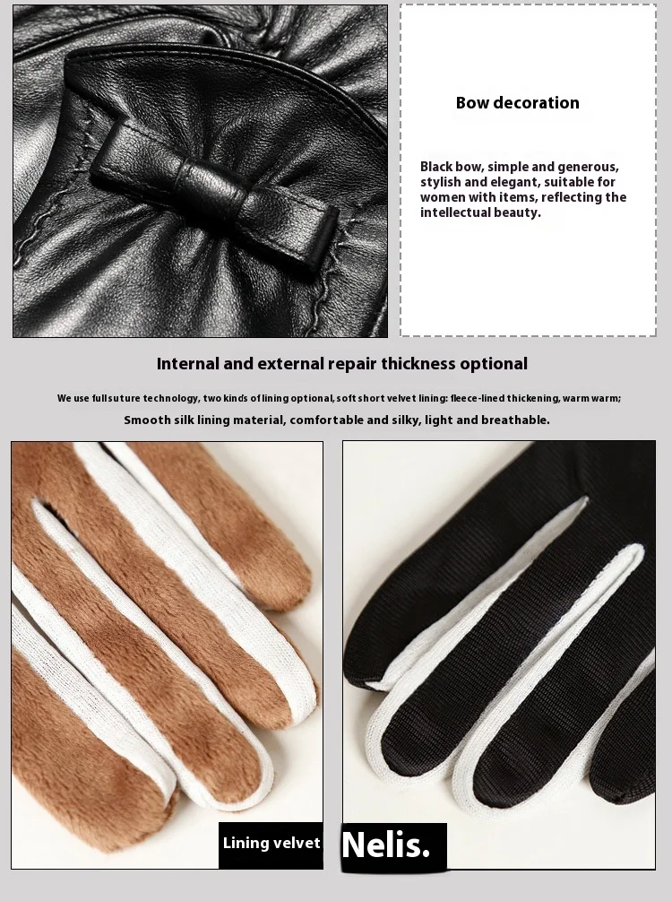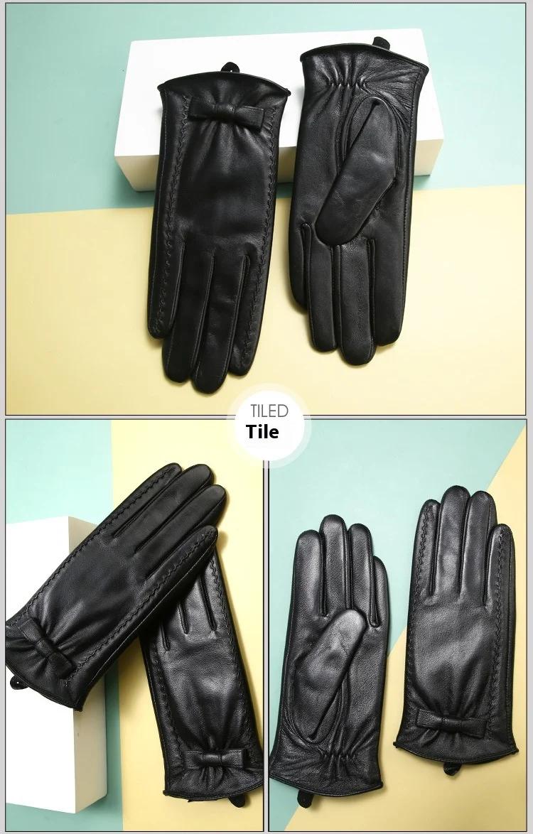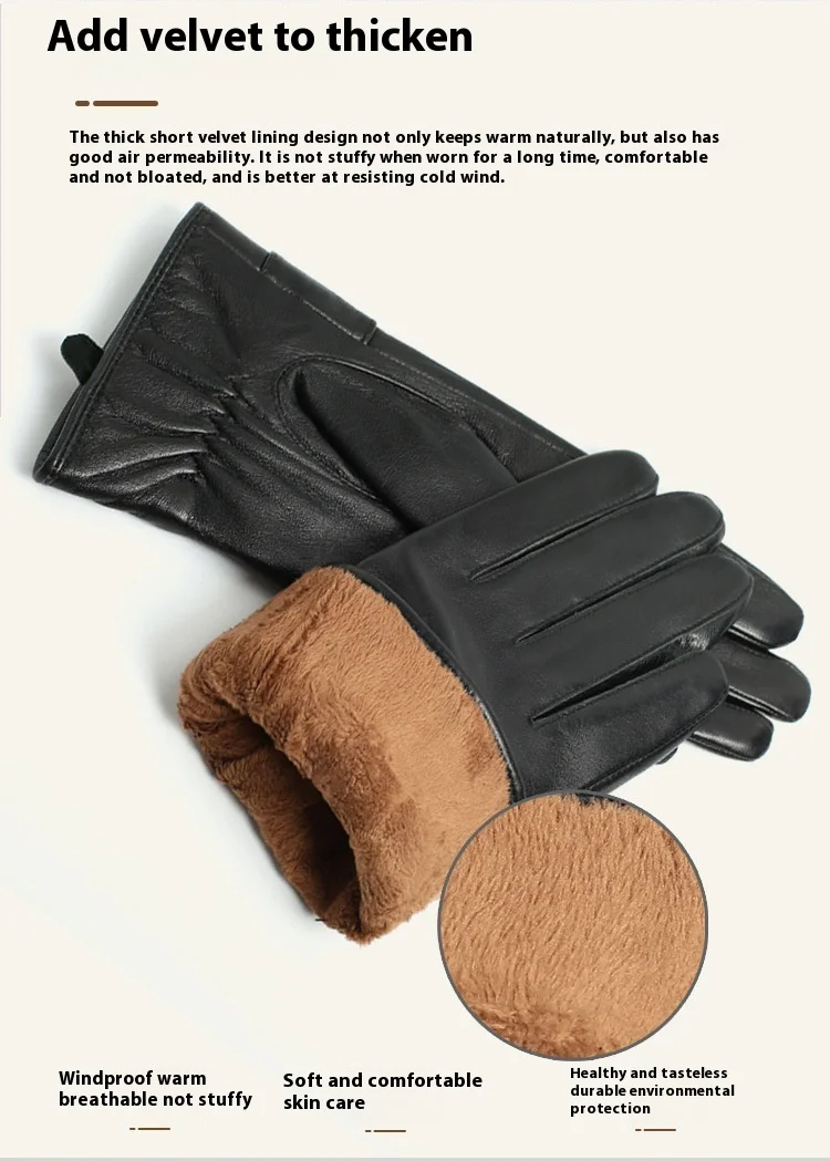 Women's Genuine Leather Gloves Sheepskin Gloves Fashion Autumn and Winter Thick Fleece Warm Touch Screen Motorcycle Biker Gloves