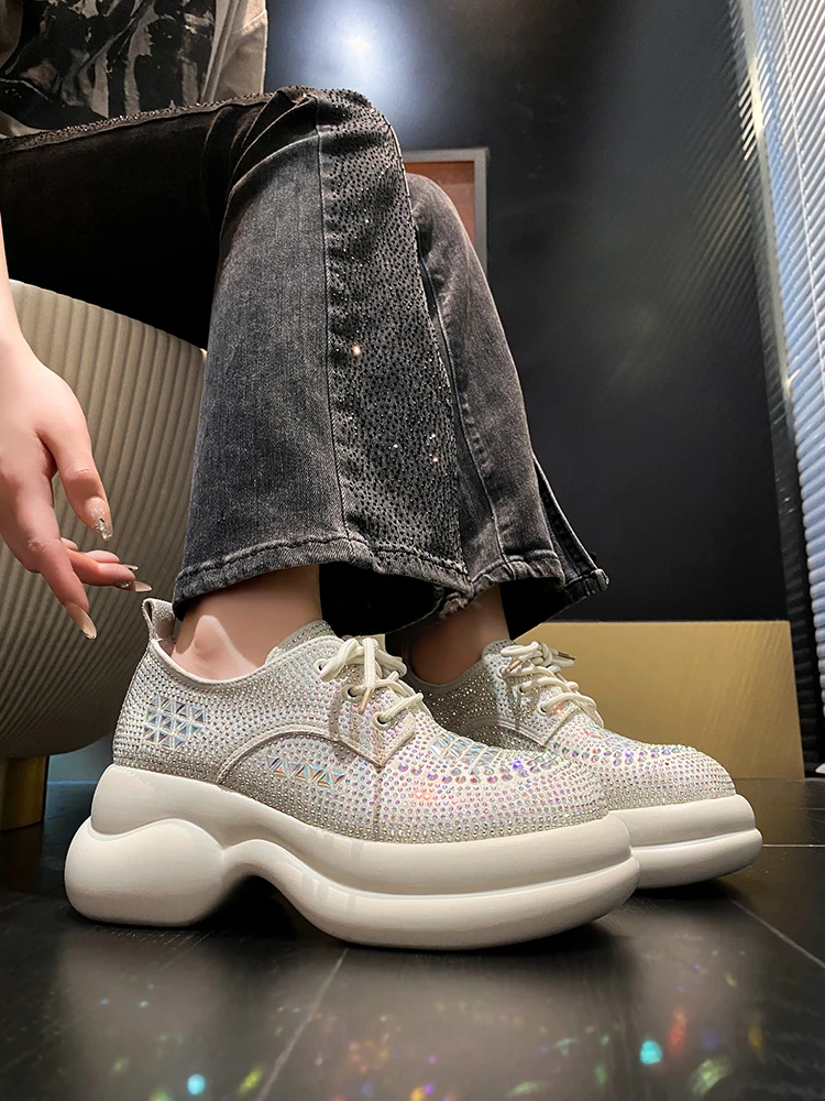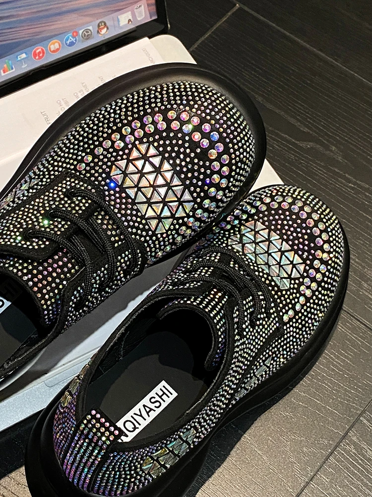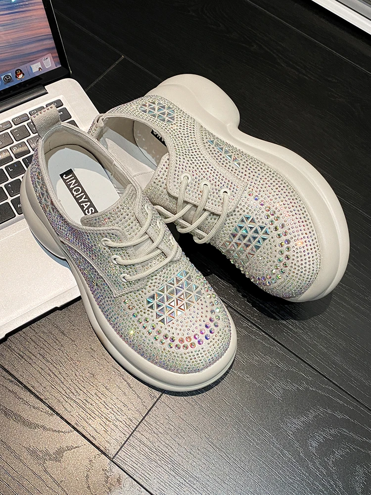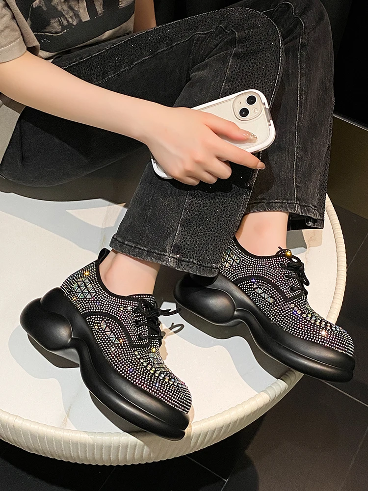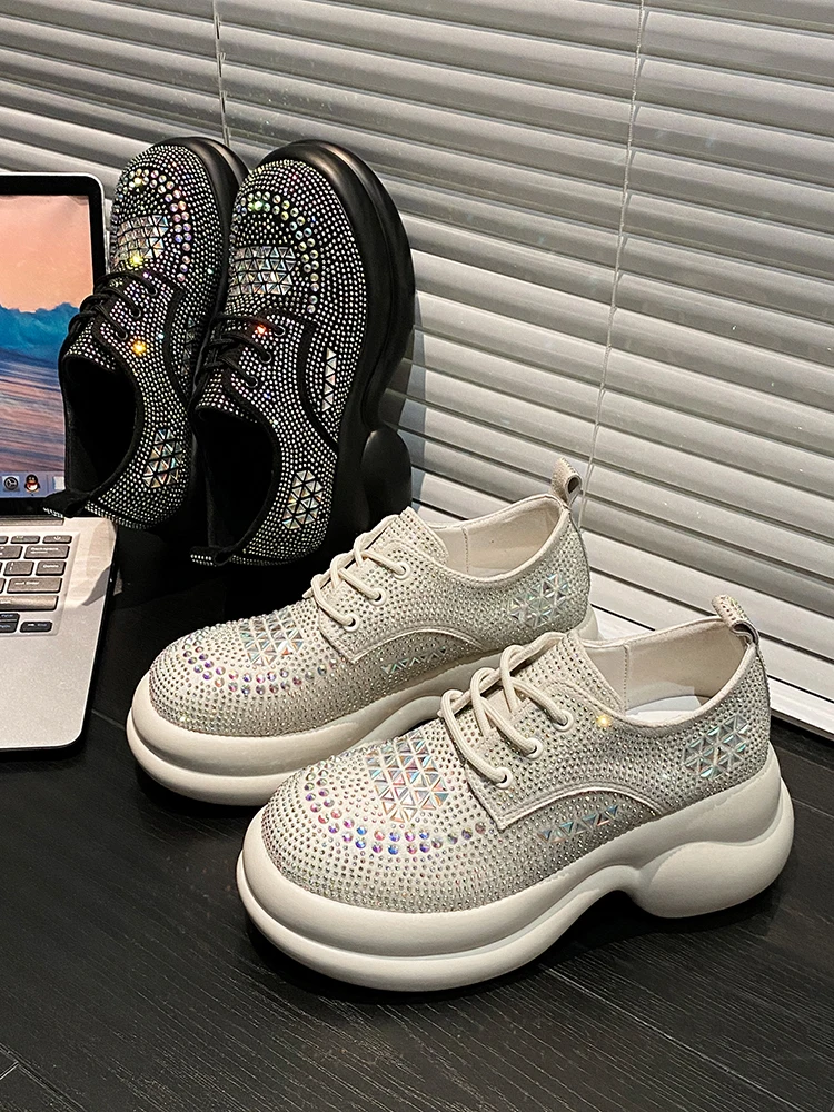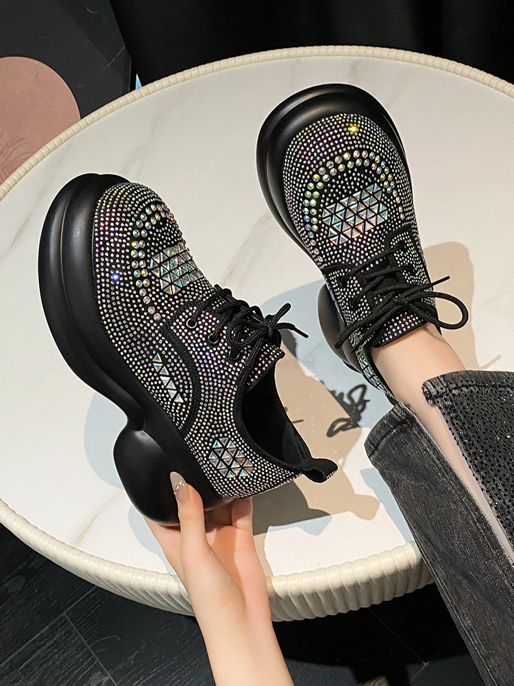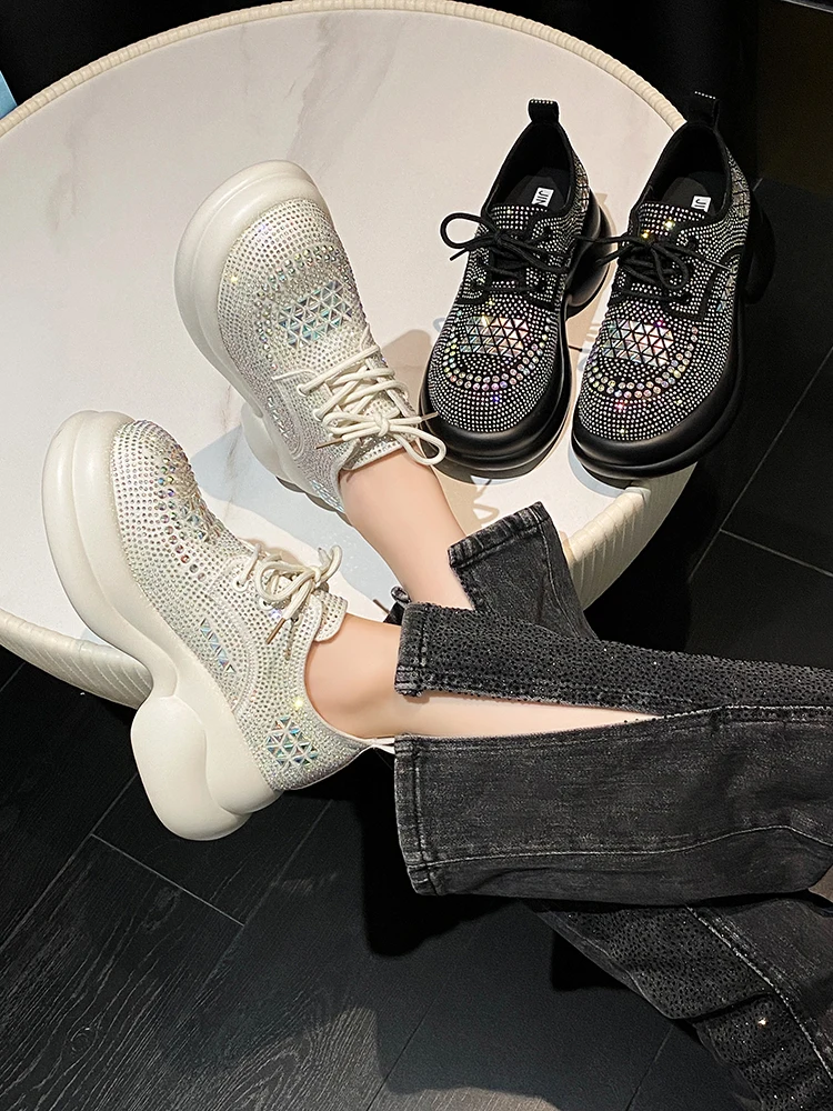Womens Sneakers Shoes Tennis Female Platform Rhinestone Roses 2023 Trainers Sparkles Casual Fashion Thick Sole PU Crystal Leisur