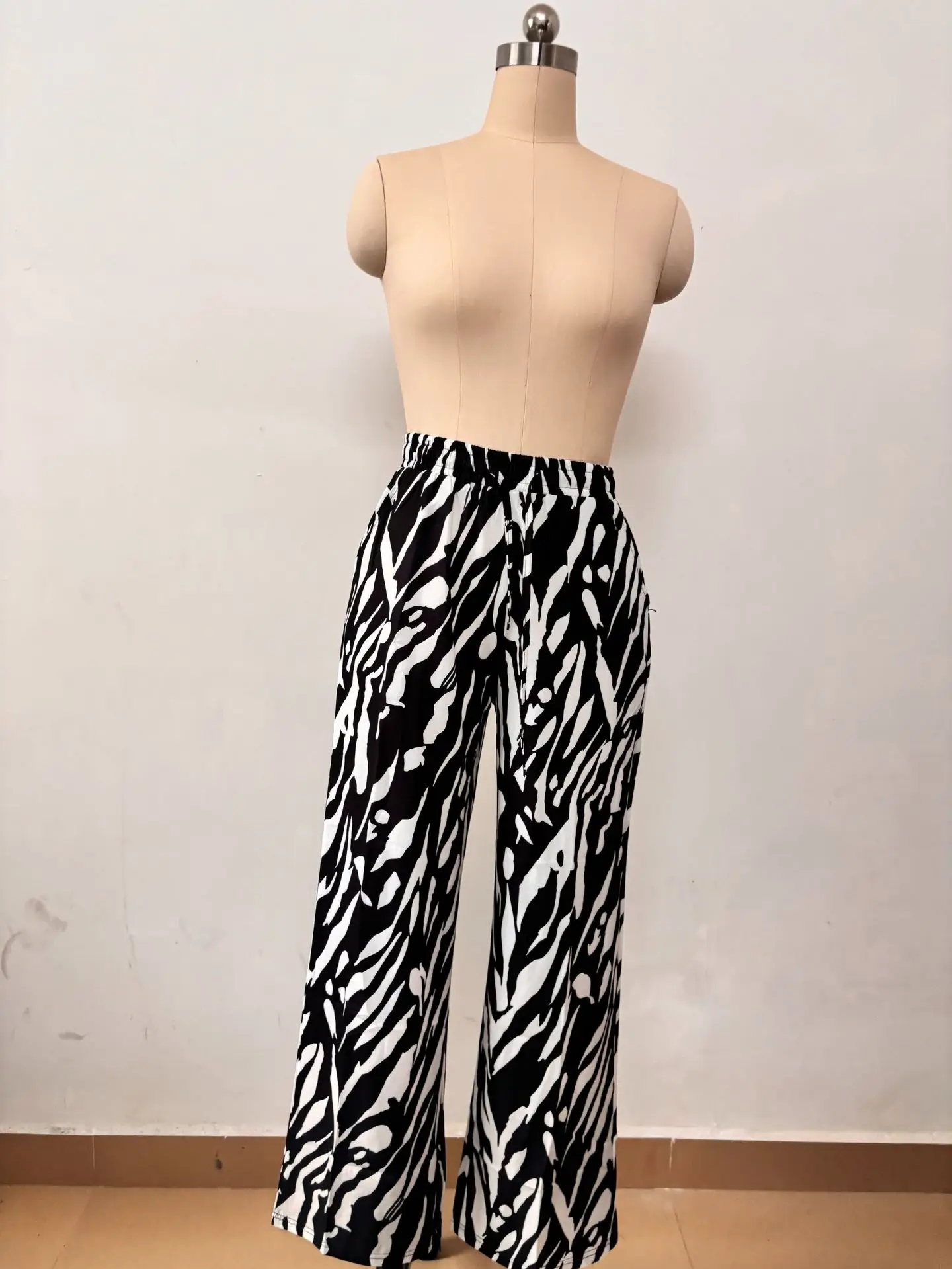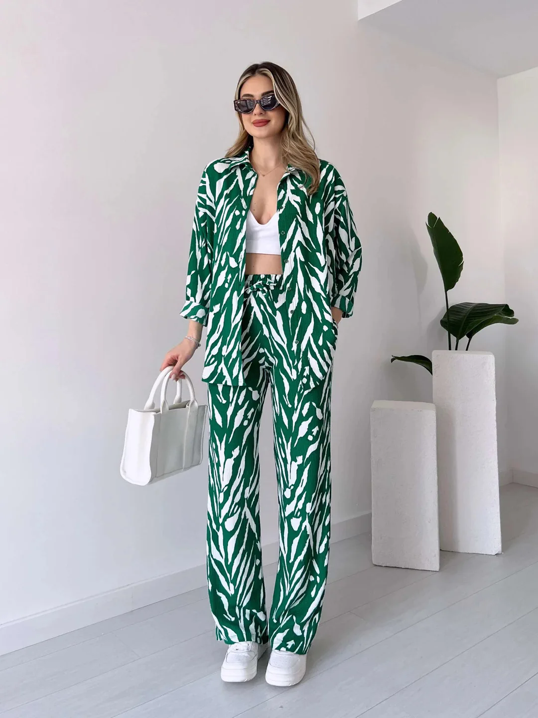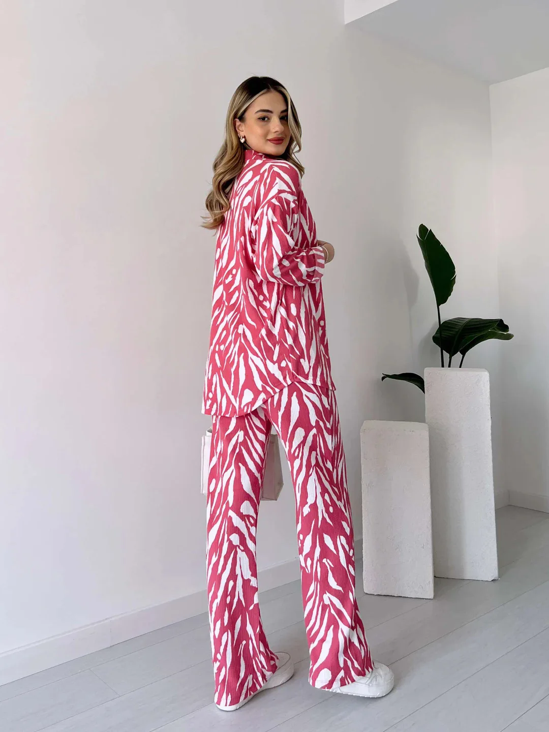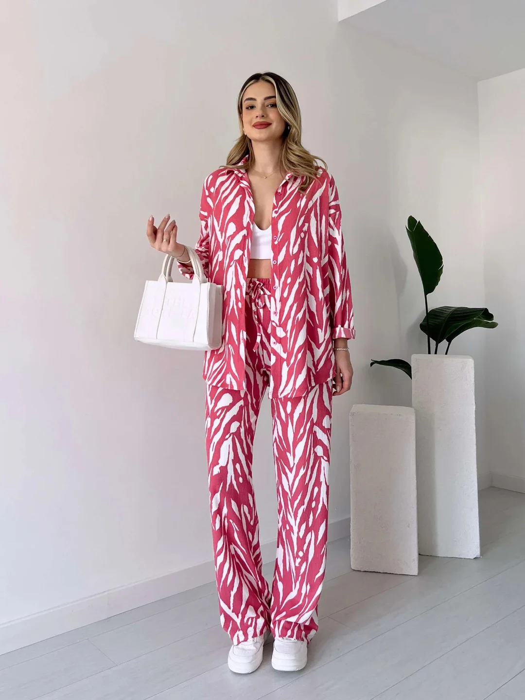 Women's Zebra Print 2-piece Set 2025 Spring Summer New Fashion Long Sleeve Shirt Top High Waist Wide Leg Pants Casual Outfits