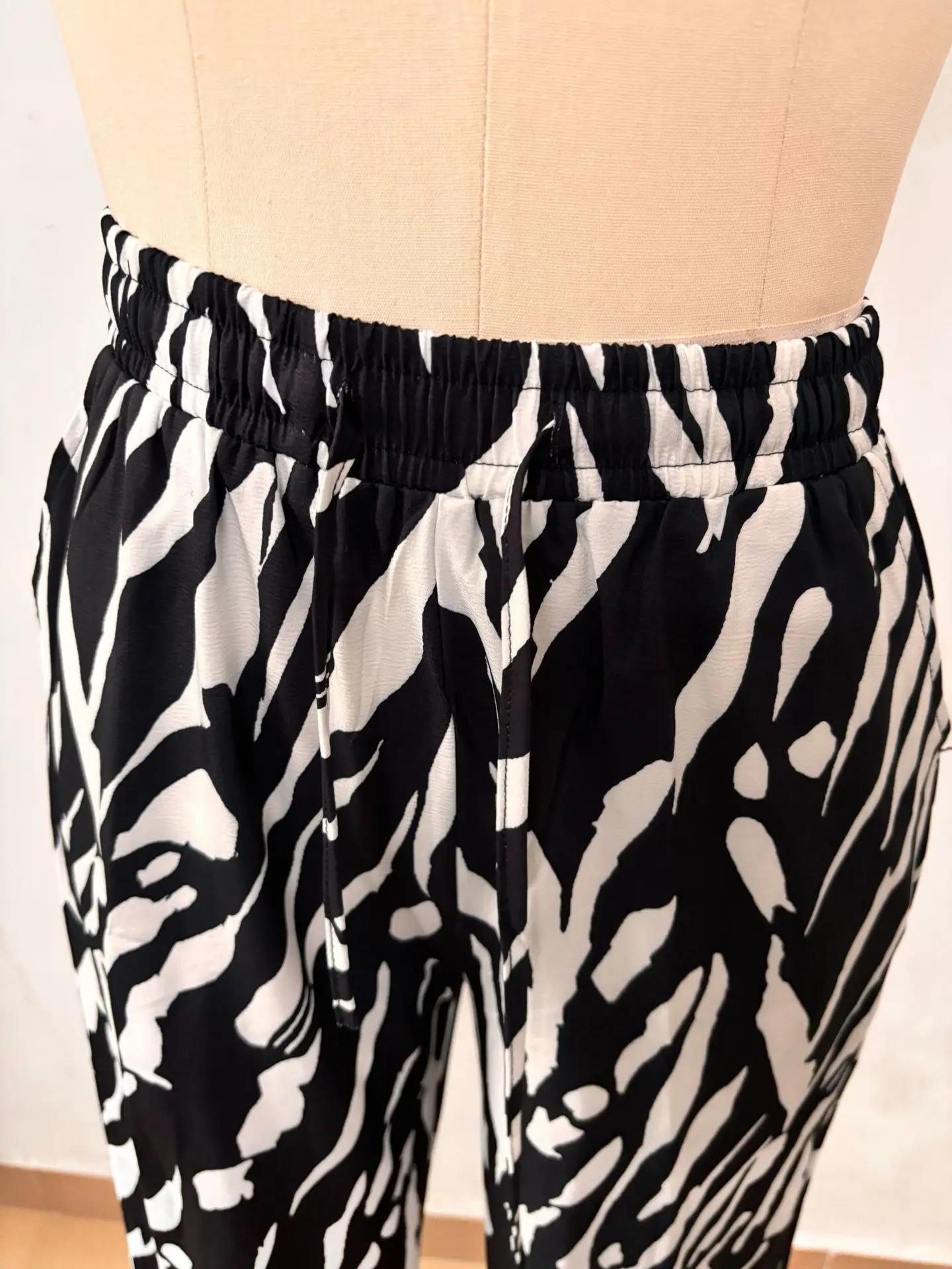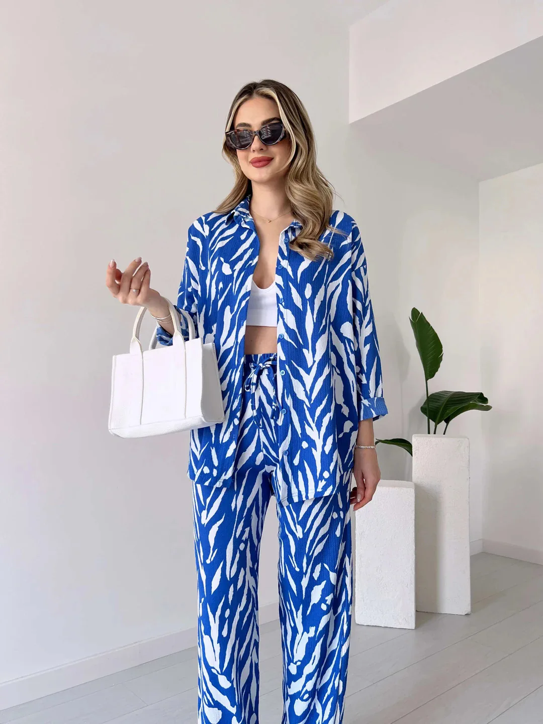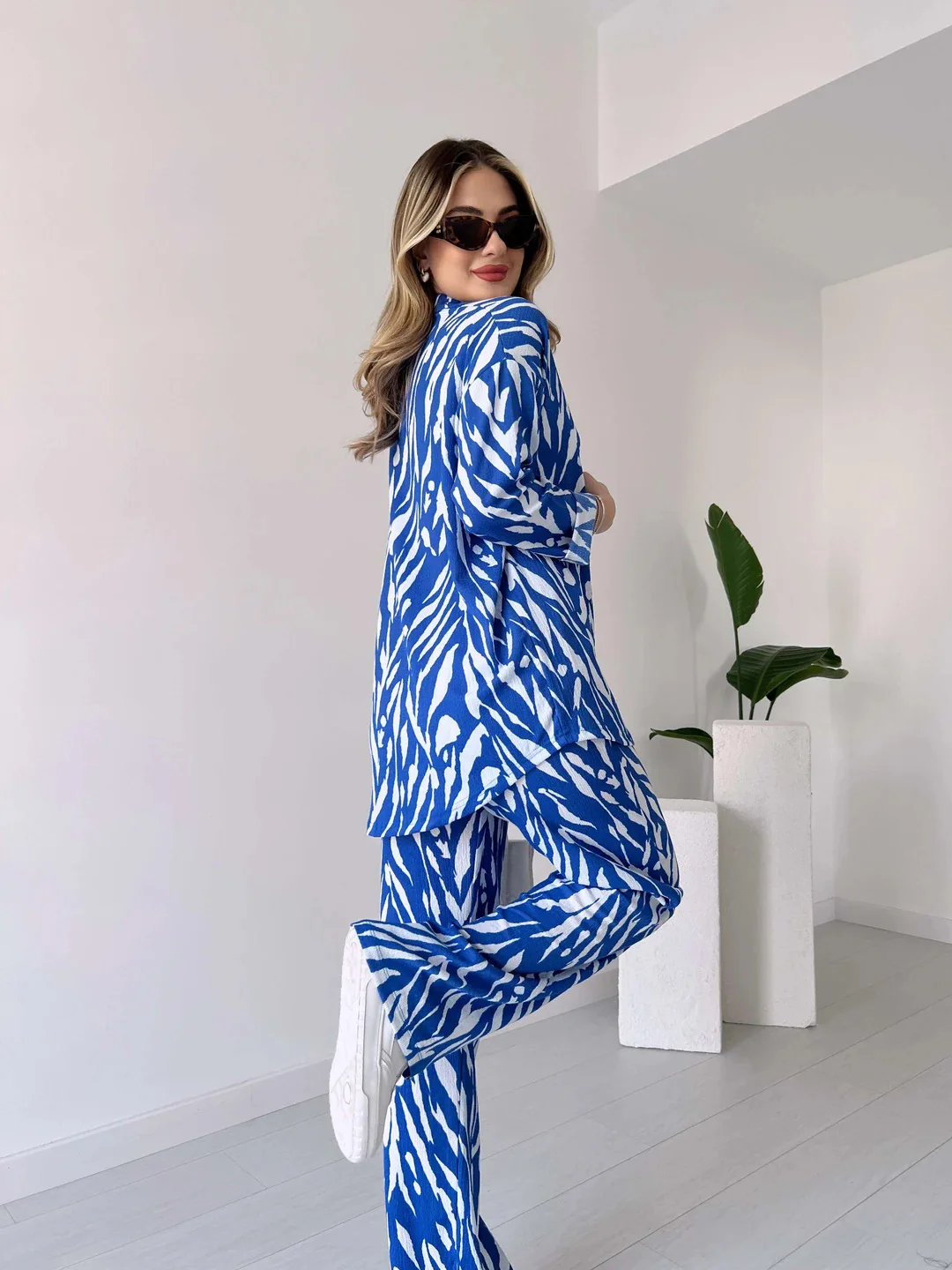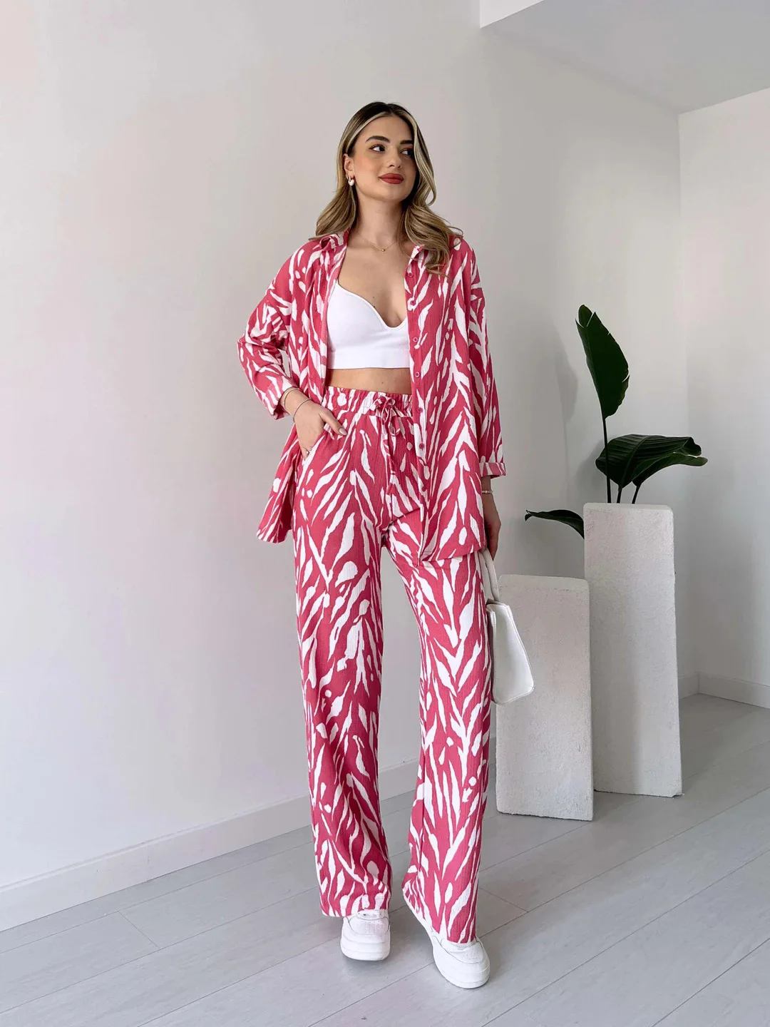 Women's Zebra Print 2-piece Set 2025 Spring Summer New Fashion Long Sleeve Shirt Top High Waist Wide Leg Pants Casual Outfits