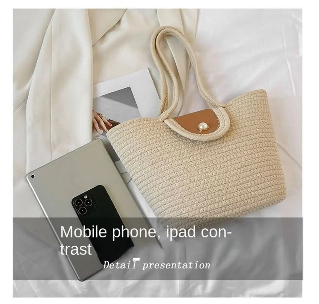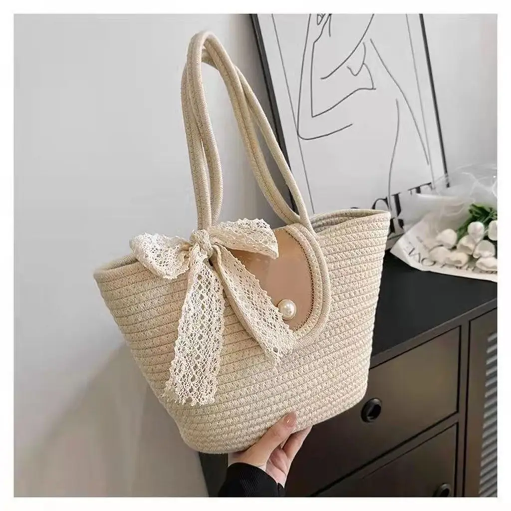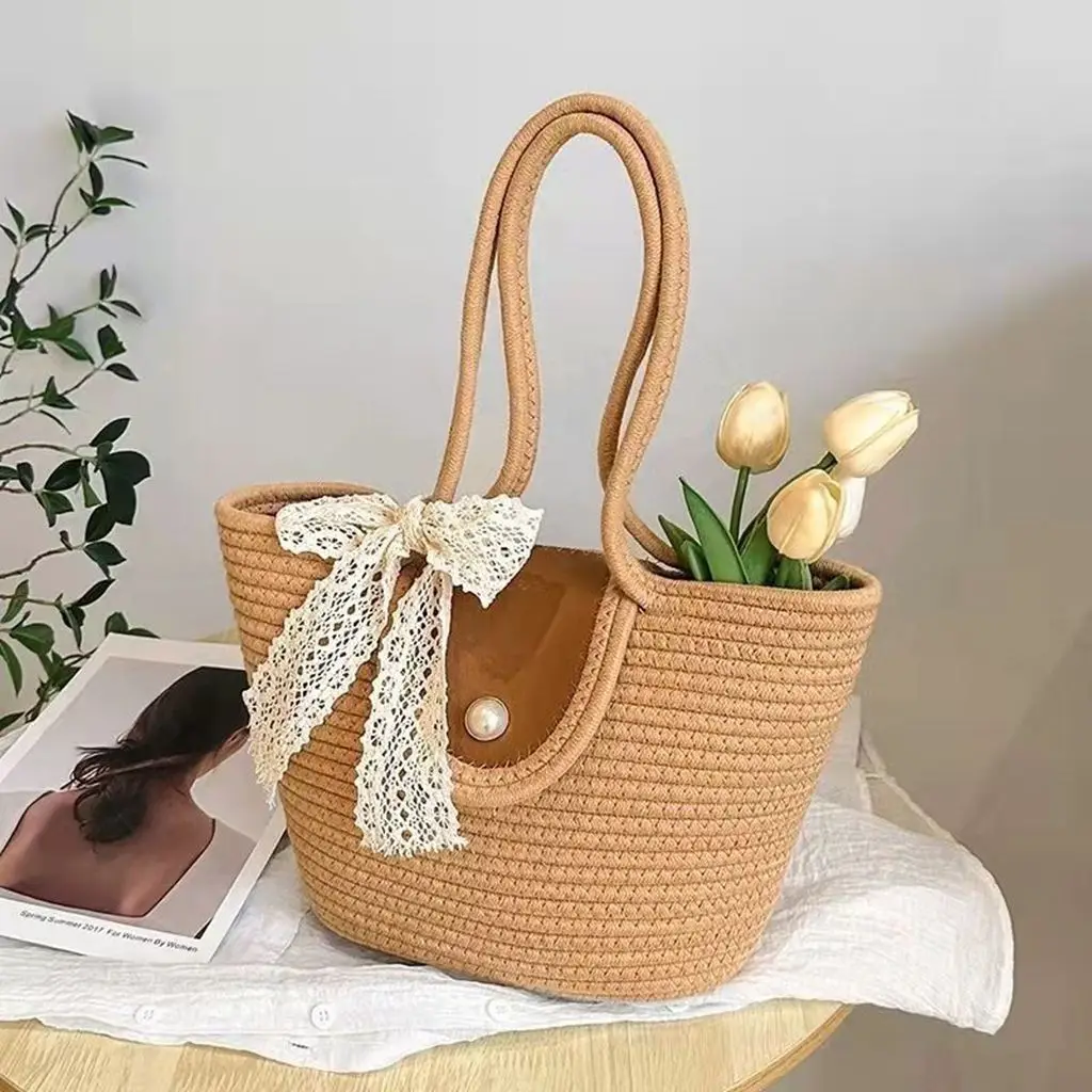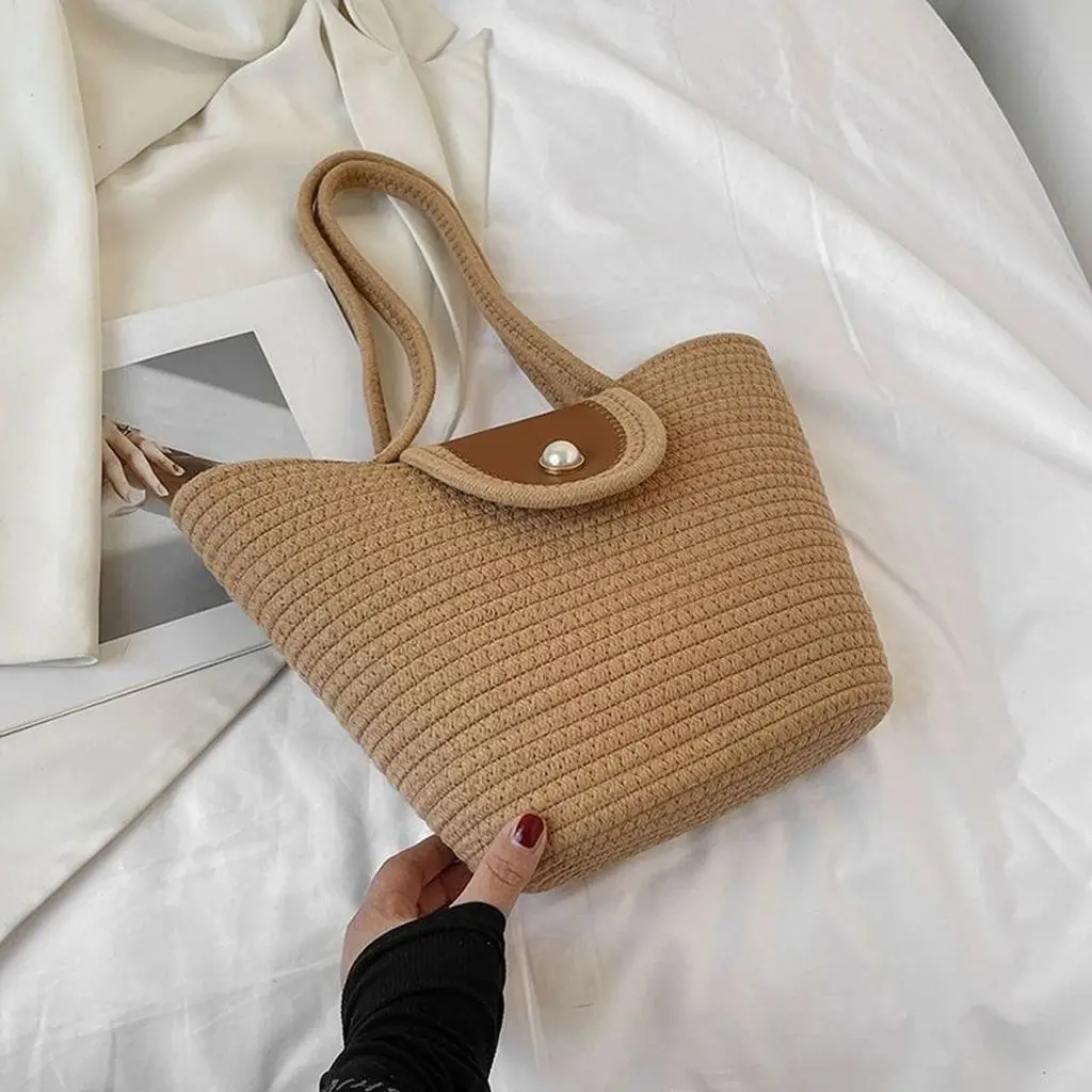 Woven Cotton Shoulder Bags for Women Summer Beach Bag Purse Female Handbag