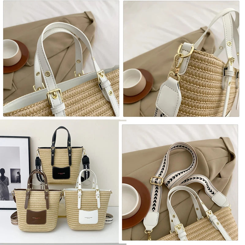 Luxury Straw Bucket Bags For Women Summer Crossbody Bags Lady Travel Purses And Handbags Female Shoulder Messenger Bag Bolsa