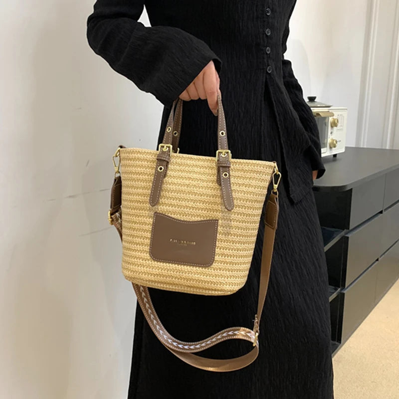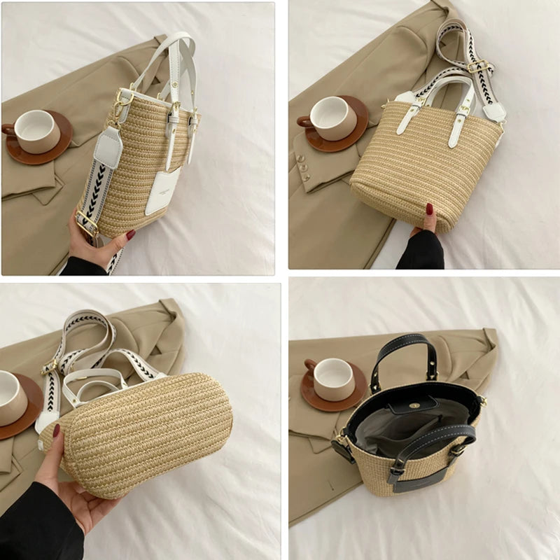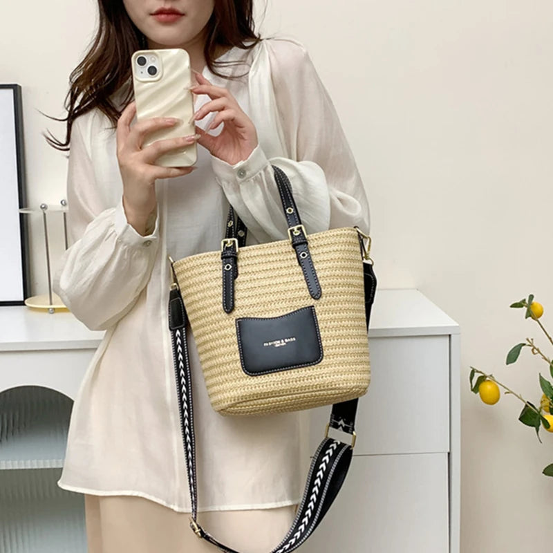 Woven Straw Shoulder Bag Female Crossbody Bags for Women 2023 Designer Bucket Bag Summer Beach Handbags Purse Travel Shopper Bag