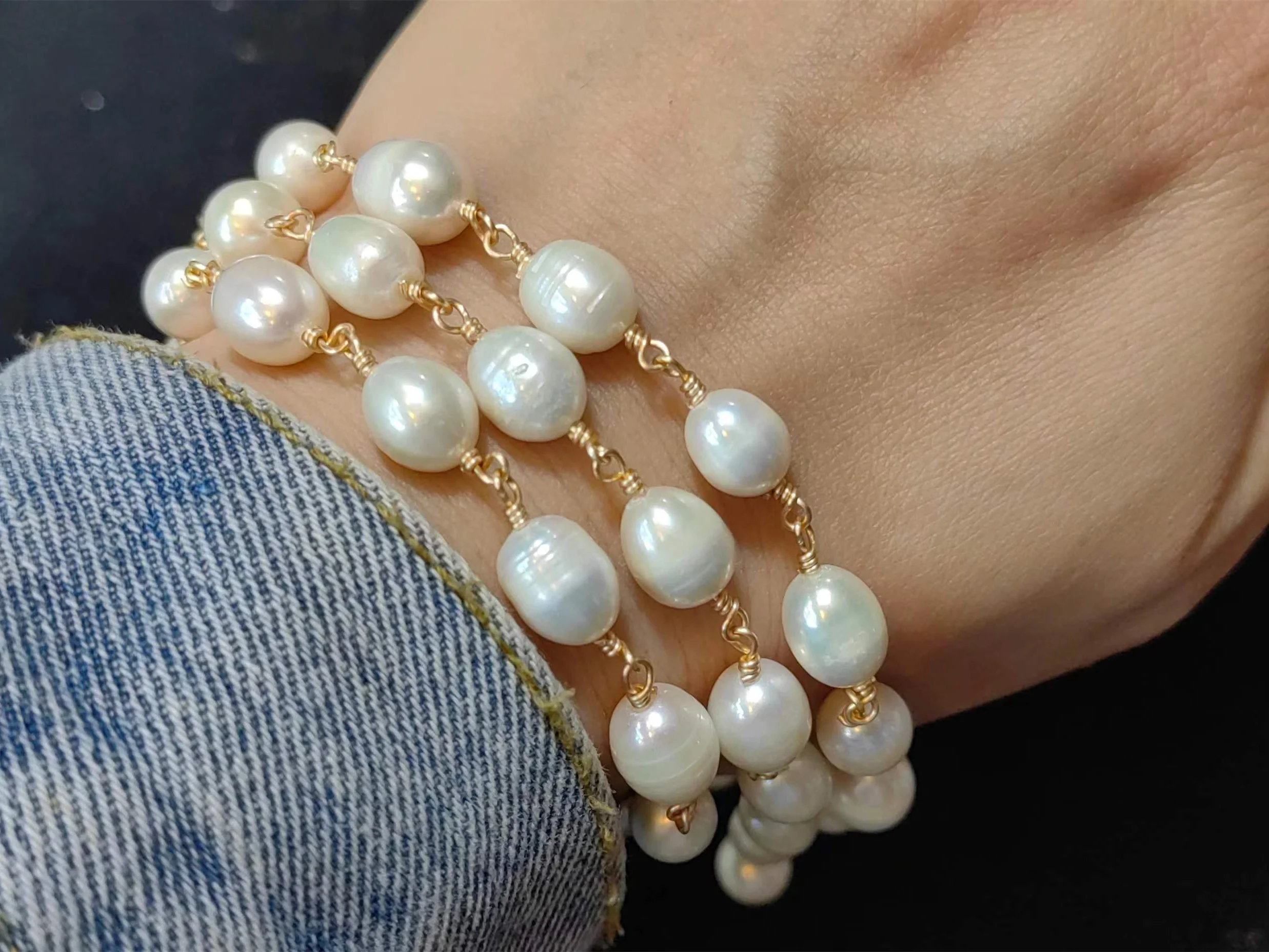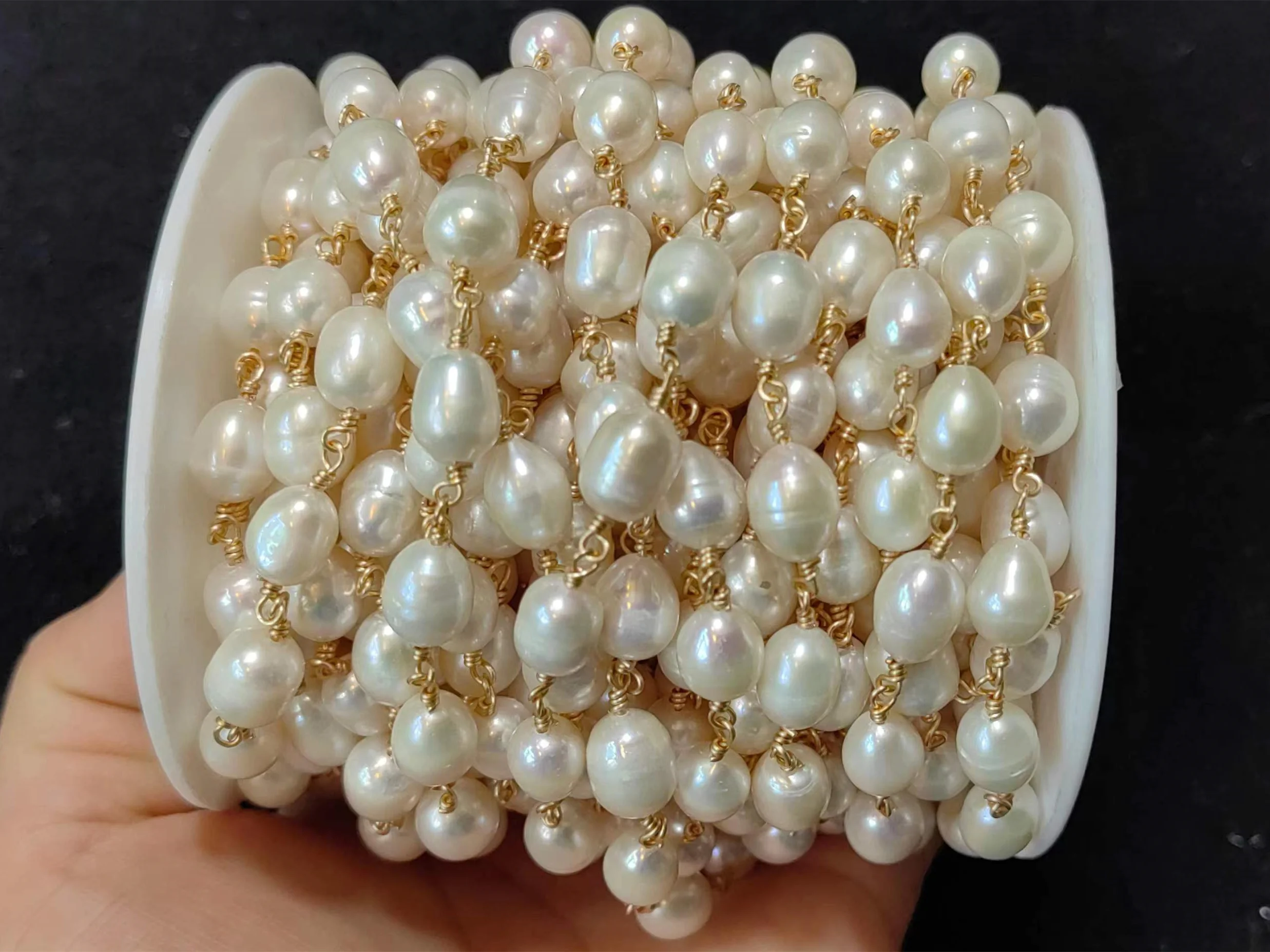 WT-RBC226 WKT 2023 Exquisite chain freshwater pearl 6-7mm 18k gold chain wedding design jewelry hot sale chains accessories