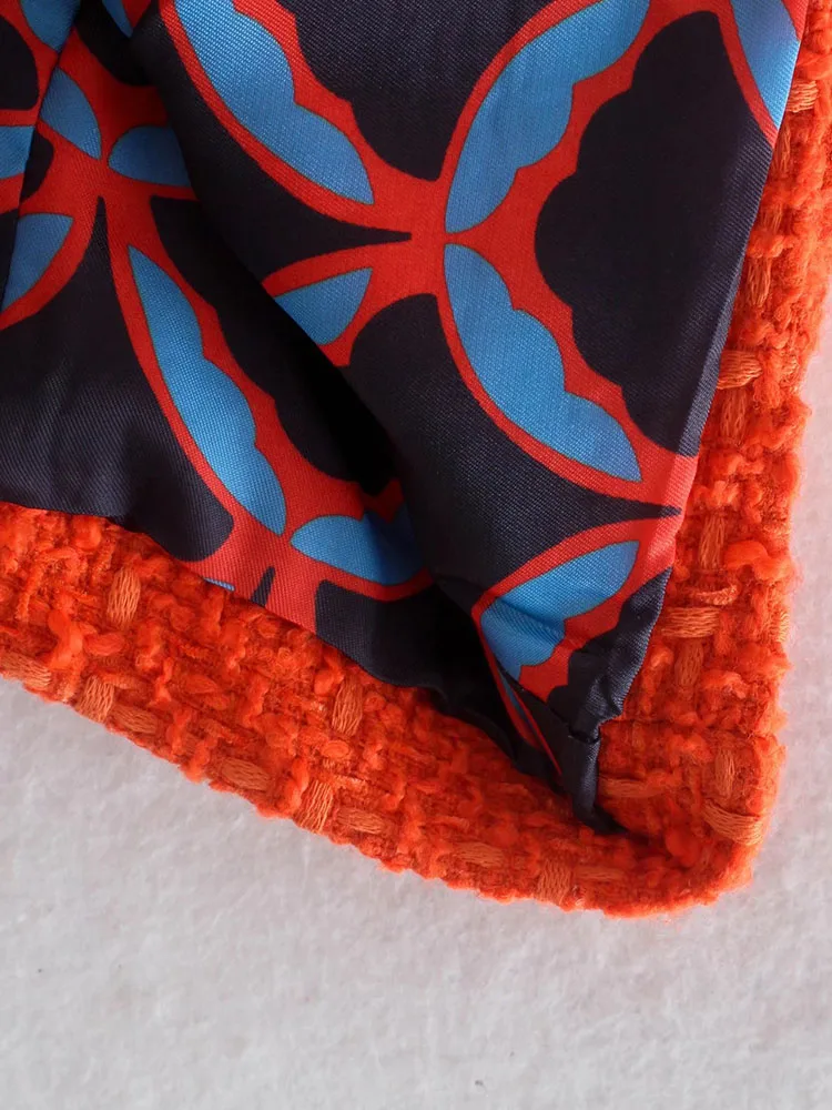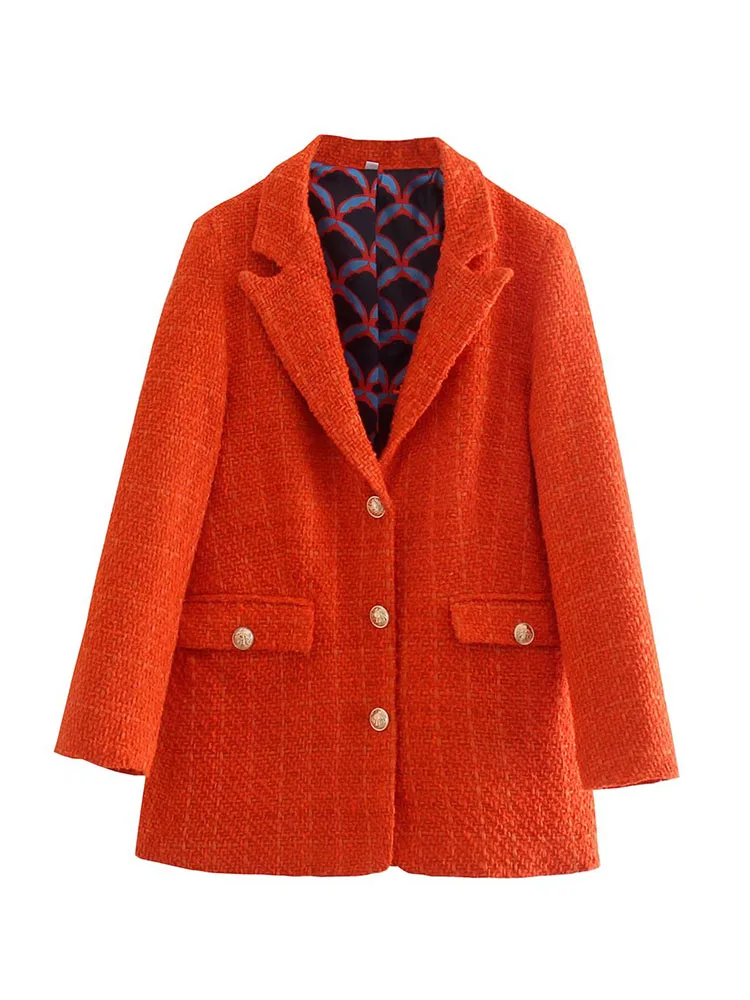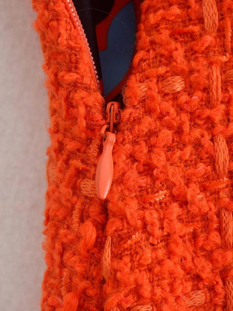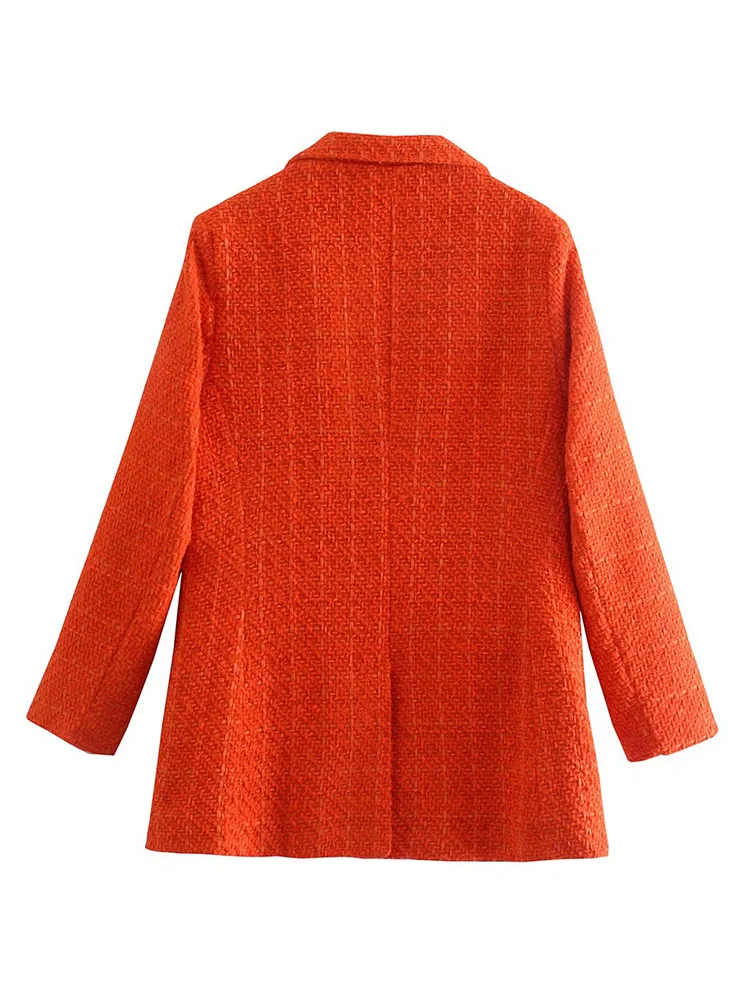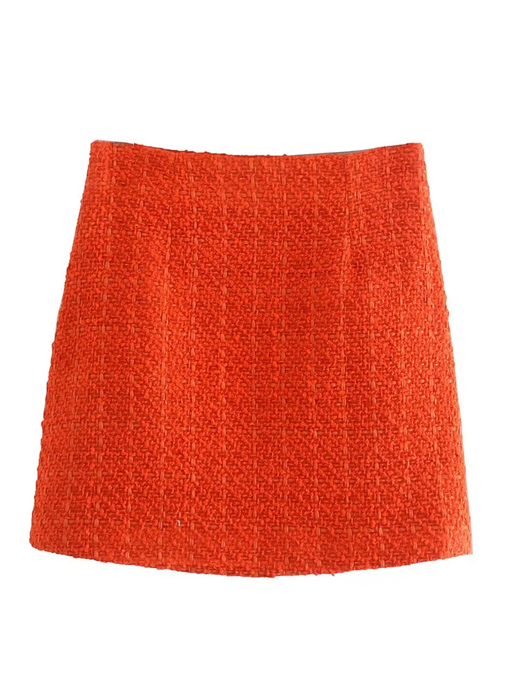 XEASY Women Tweed Red Retro Suit 2022 Spring Fashion Casual Office Slim Blazer Ladies High Waist Skirt Slit 2 Piece Set