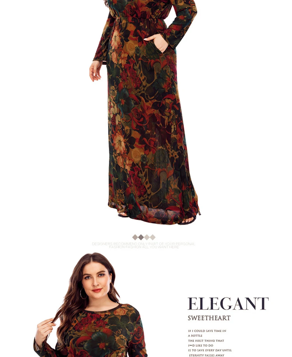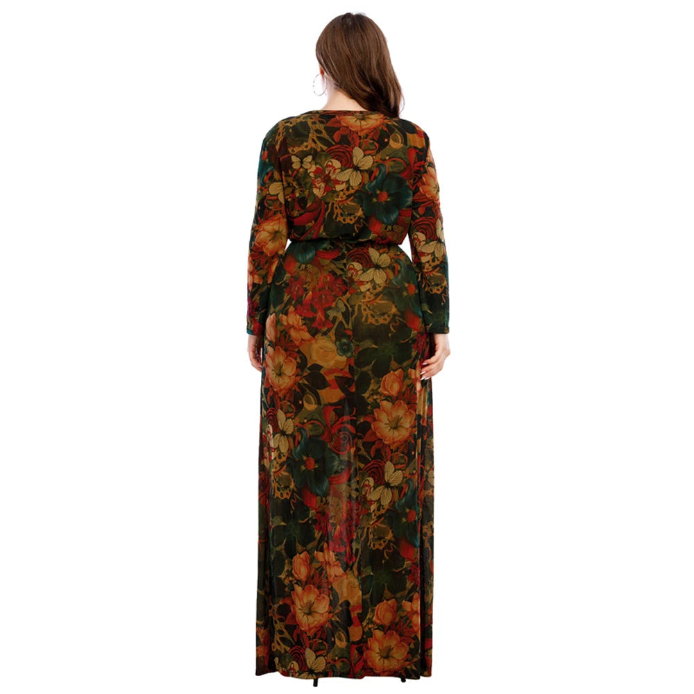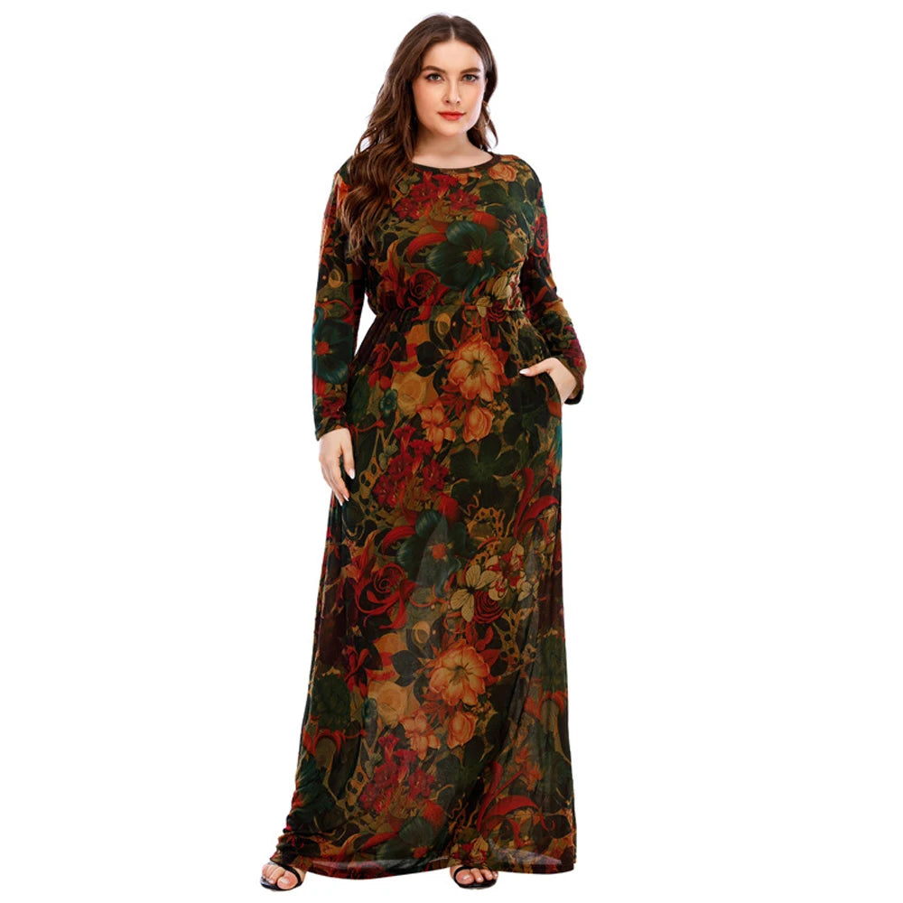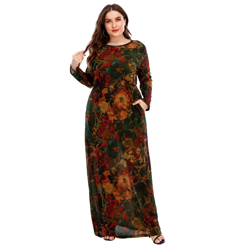 XL-6XL Curvy Ladies Dresses 2024 With Long Sleeve Elegant Dress For Chubby Plus Size Clothing Mother Gift 40 50 60 Years Old