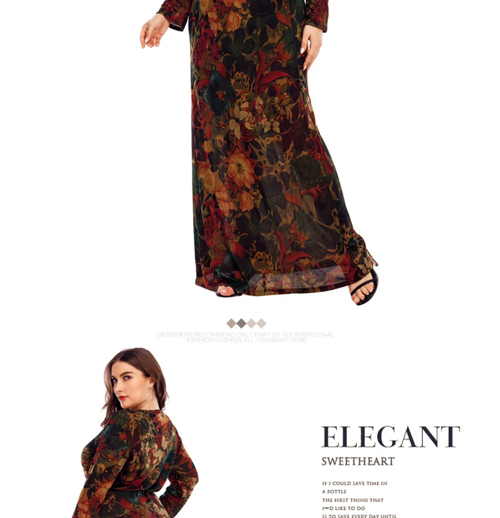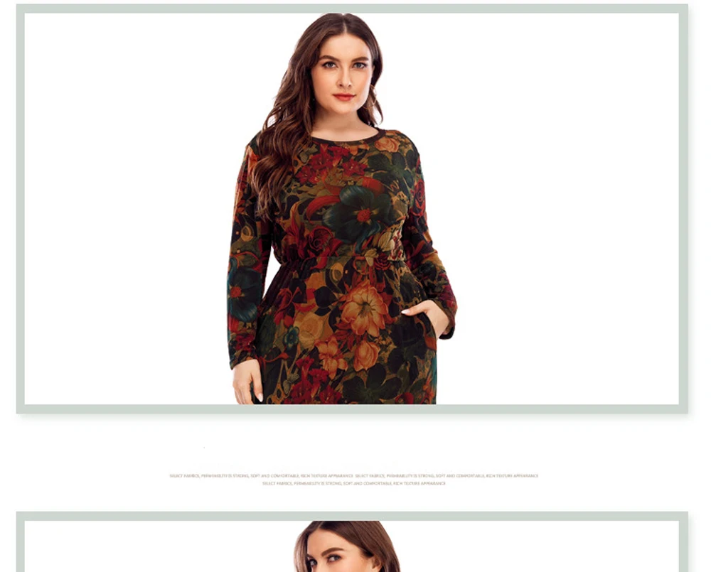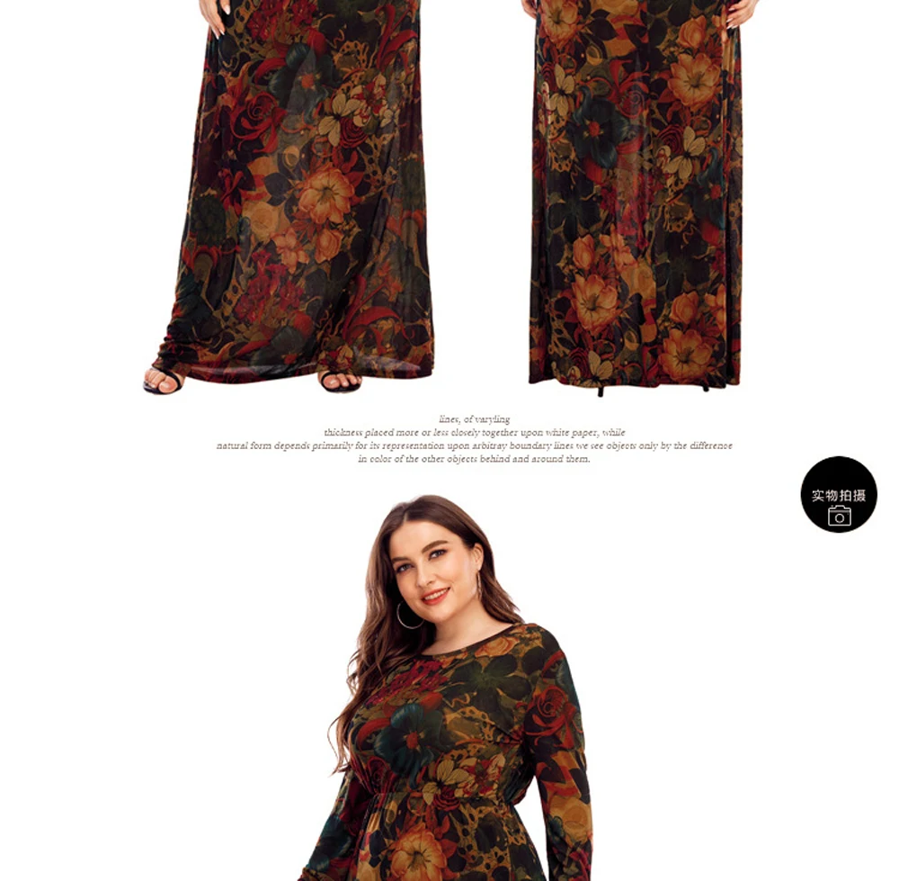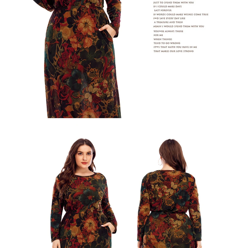 XL-6XL Curvy Ladies Dresses 2024 With Long Sleeve Elegant Dress For Chubby Plus Size Clothing Mother Gift 40 50 60 Years Old