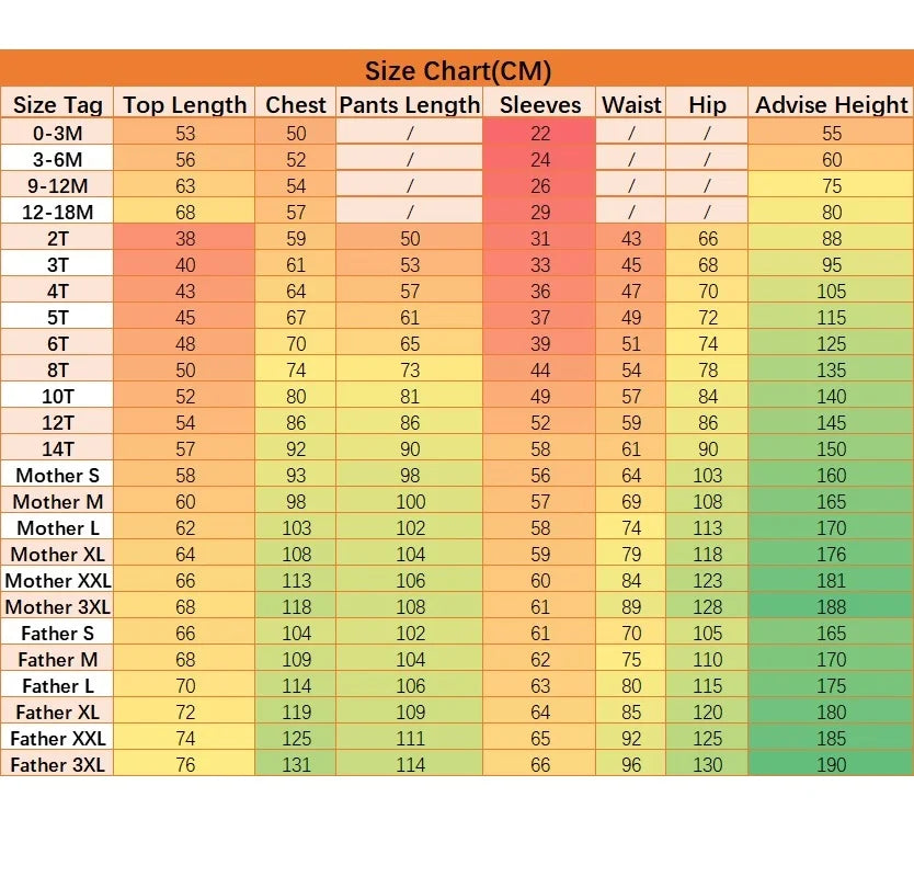 A: For example, size 6T for Kids, size M for Mother and XL For Father,
