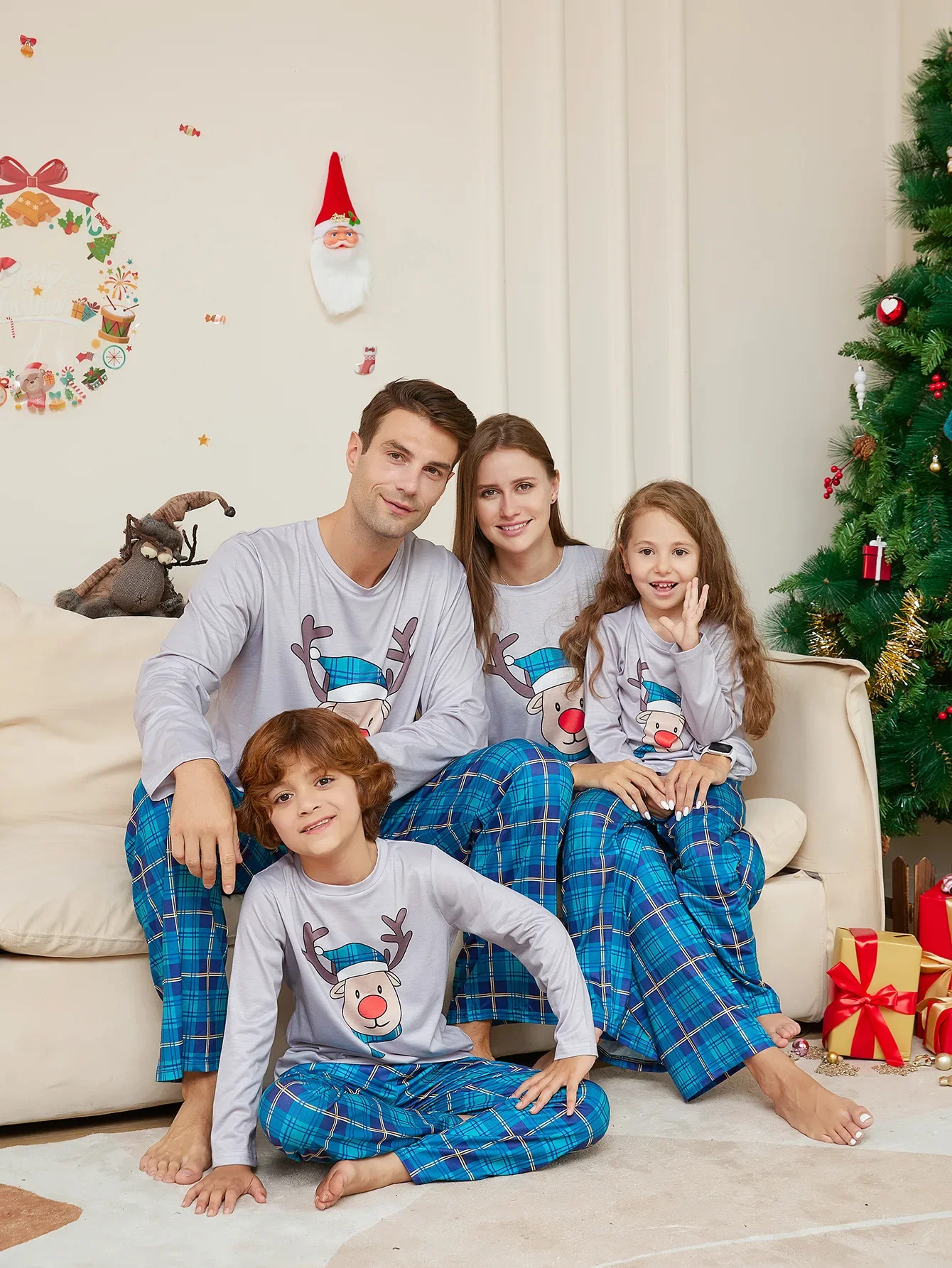 Xmas Gift for Family Cute Deer Plaid Pajamas Set Christmas Matching Outfits Women Men Boys Girls Clothing Sets Baby Dog Romper